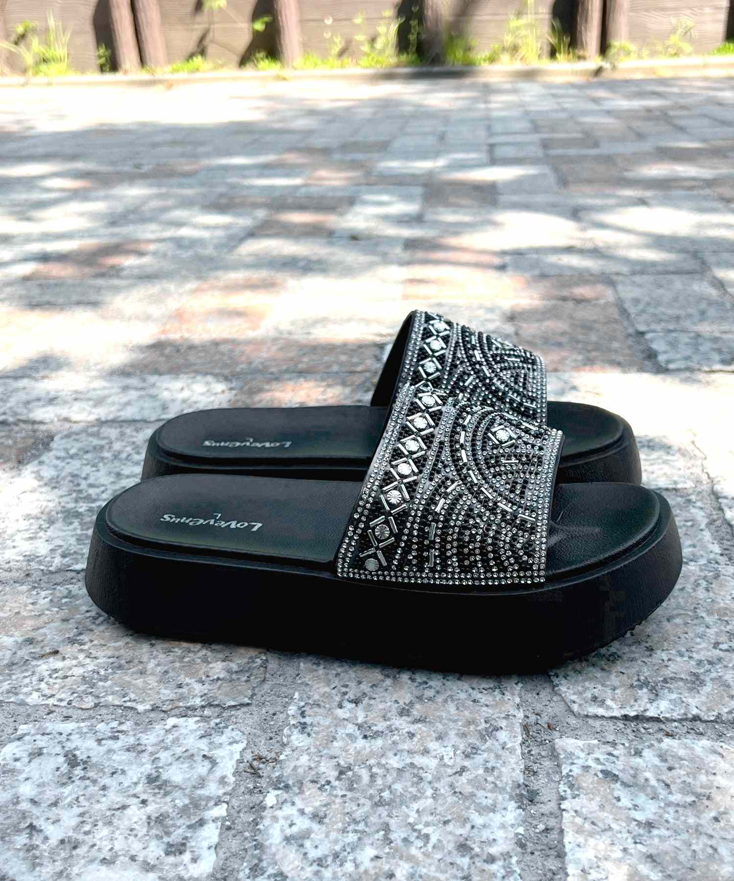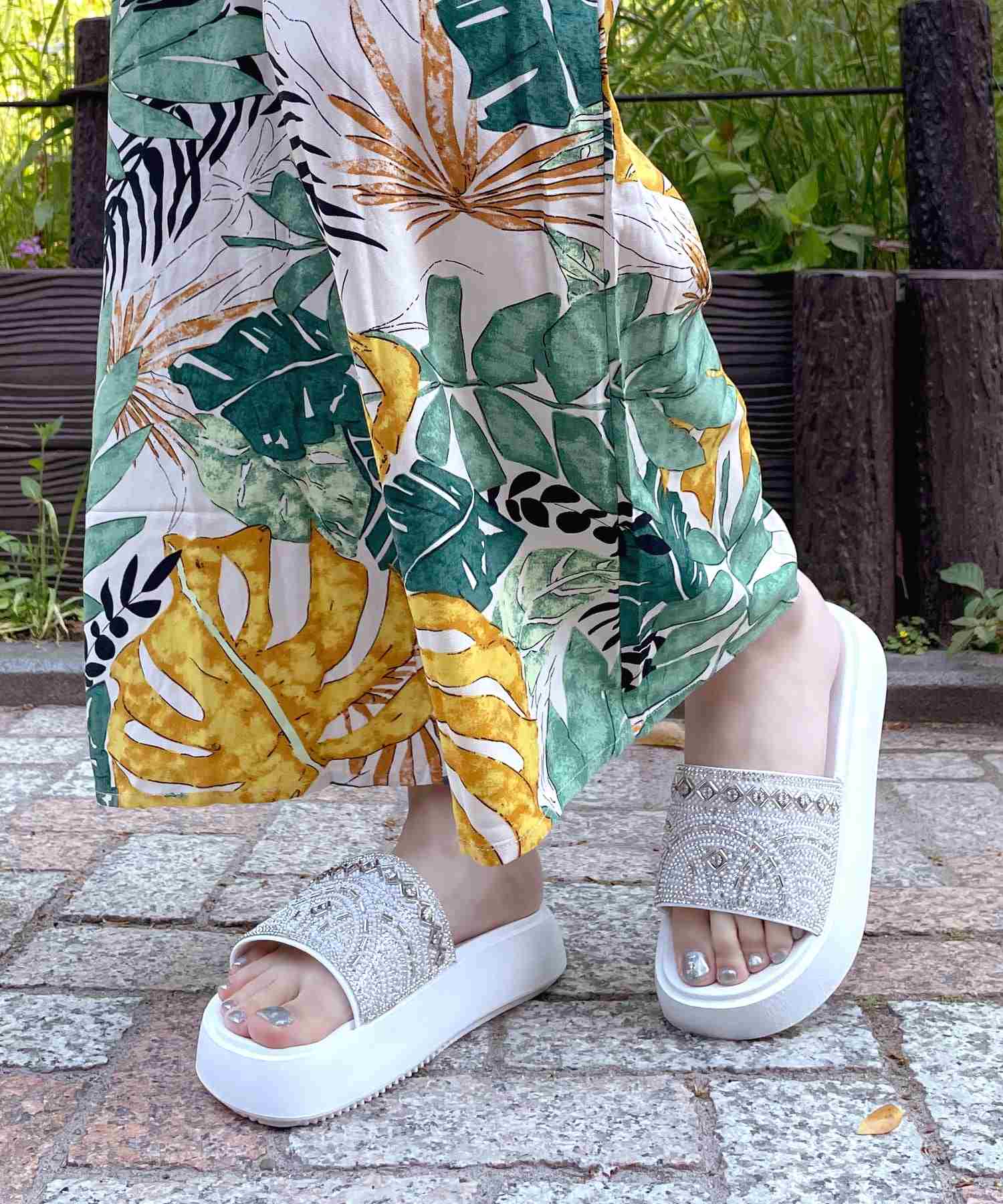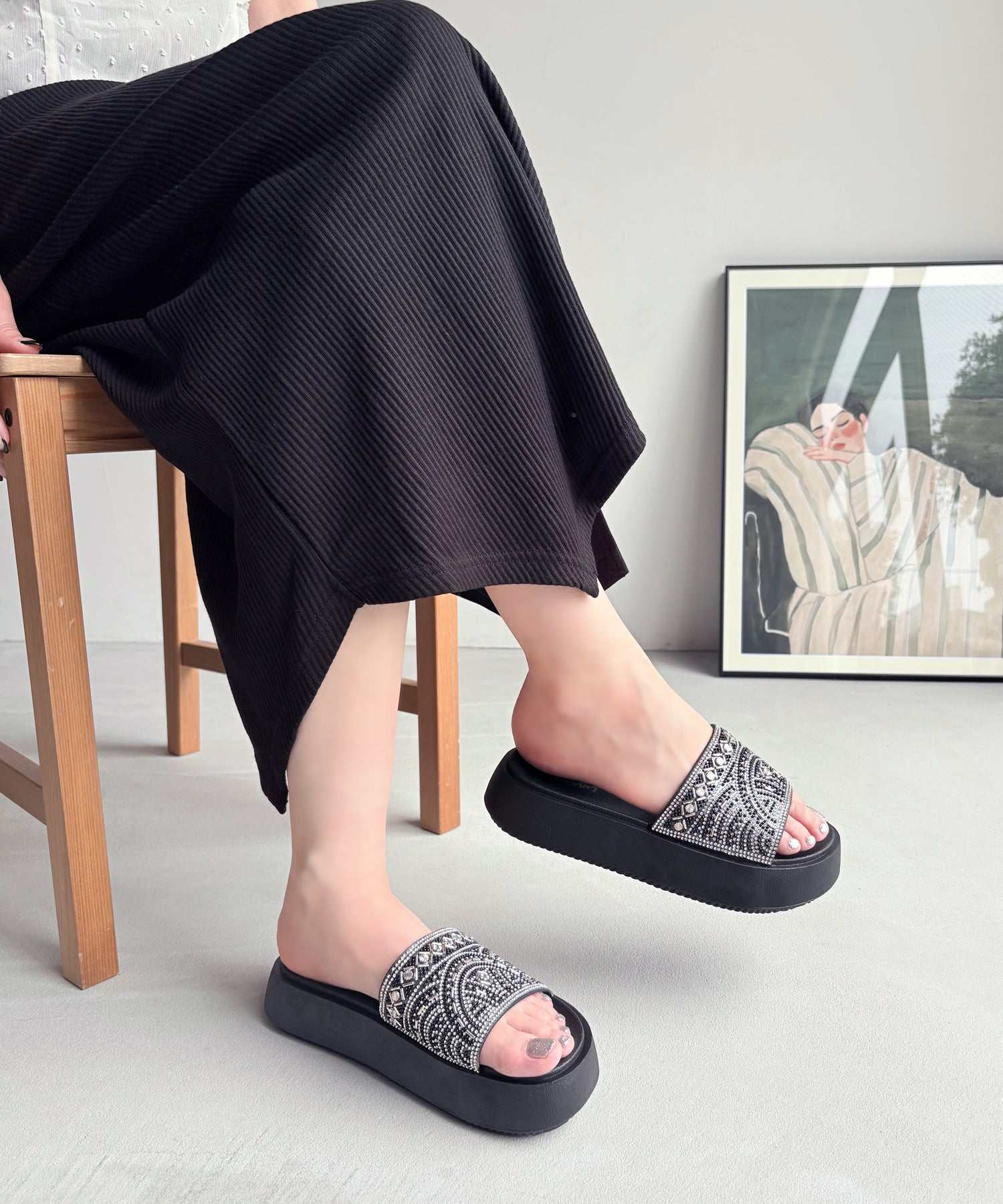 Adottona 【Lightweight】 Thick-soled Shower Sandals with Bijou 【Flexible】