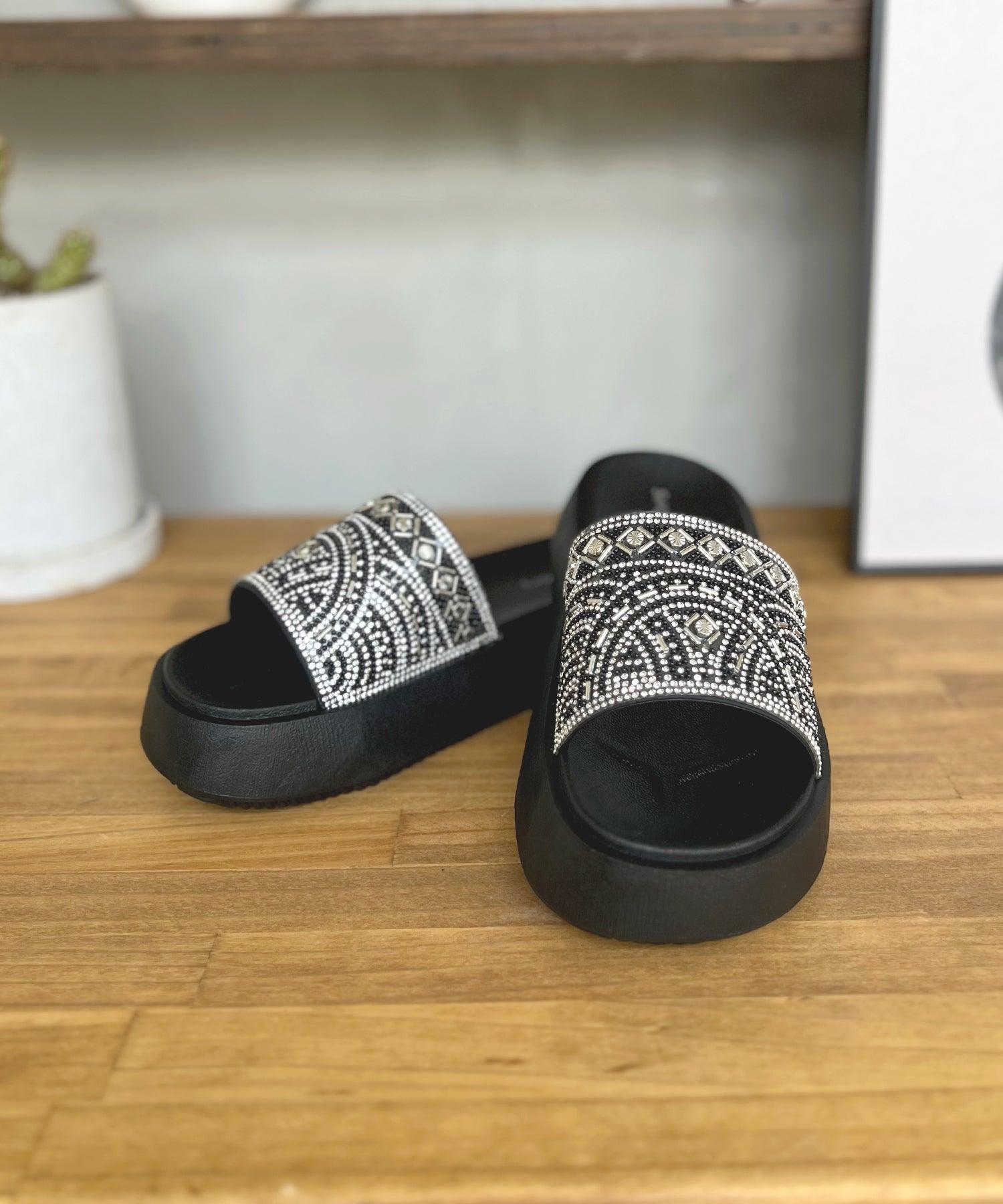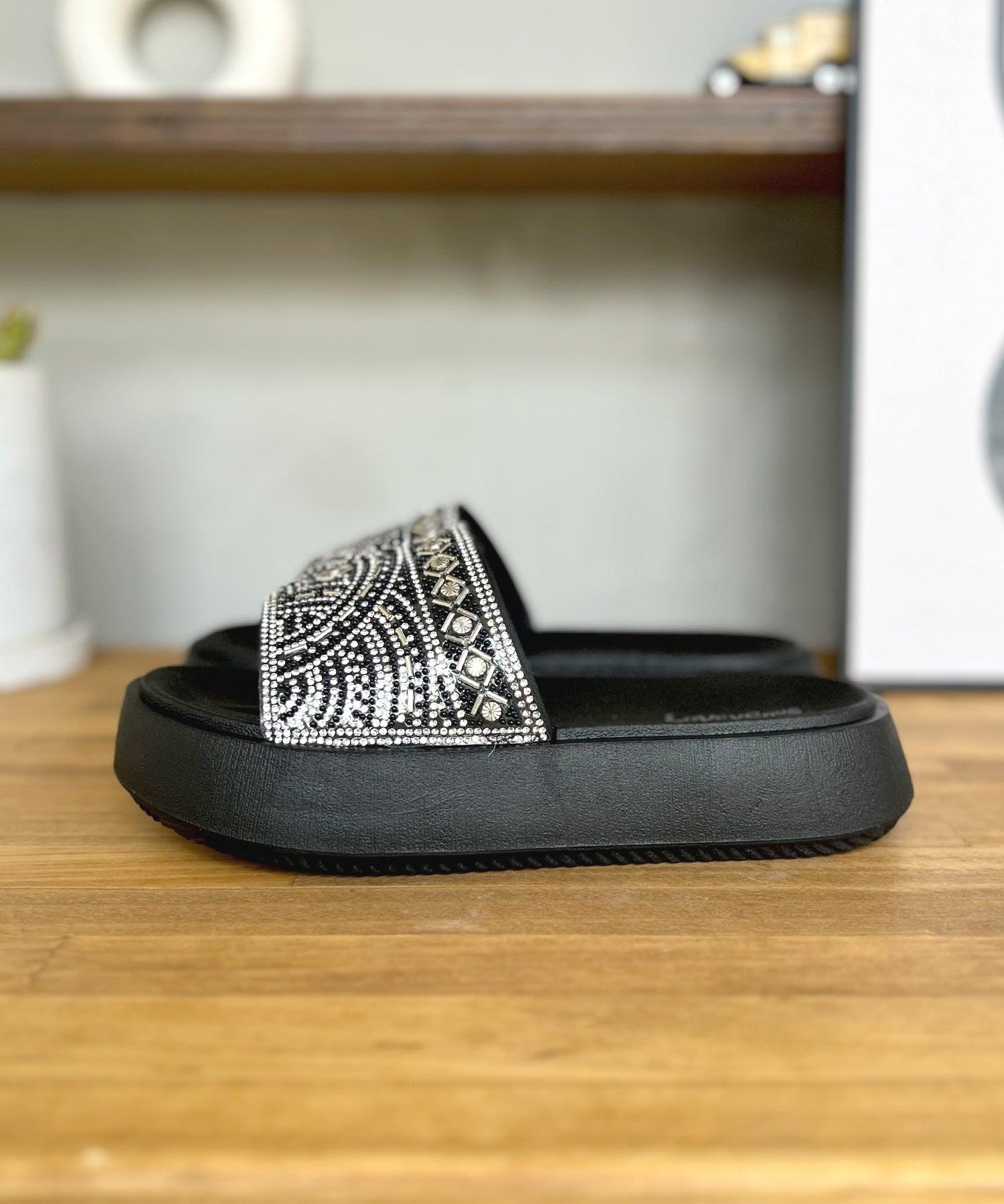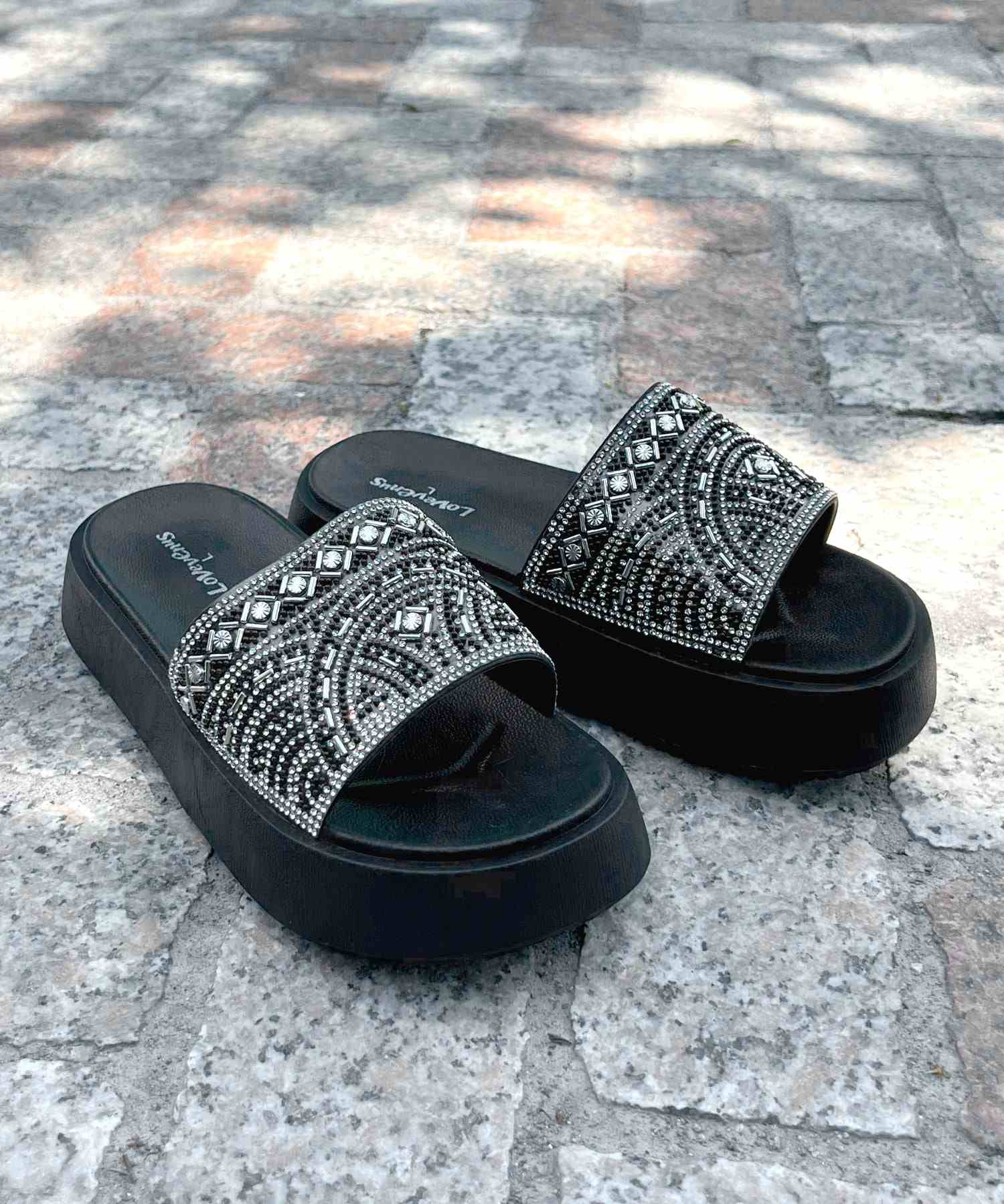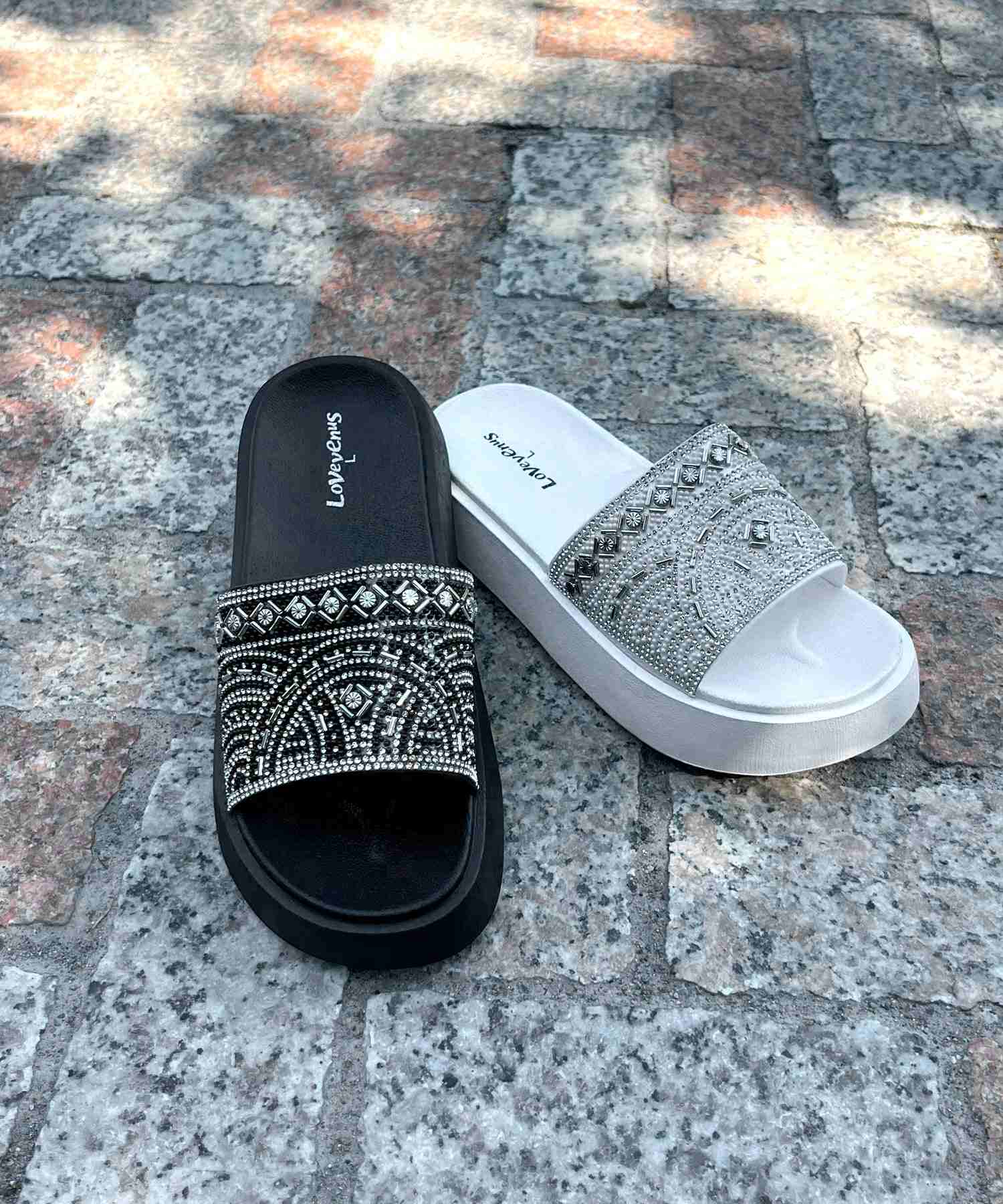 These are refreshing shower sandals with a sparkling jewel that catches the eye, made of elastic EVA material.