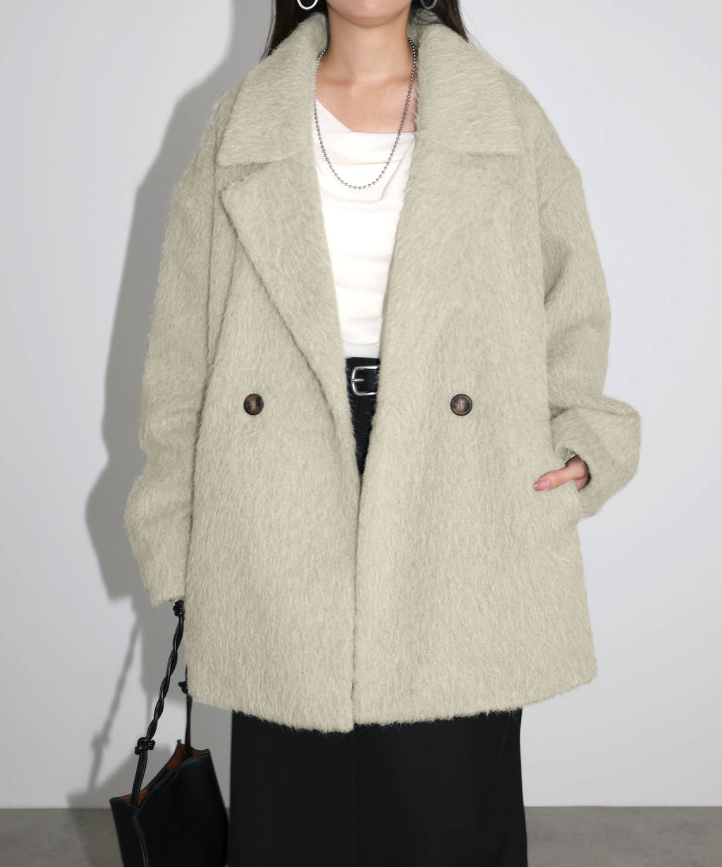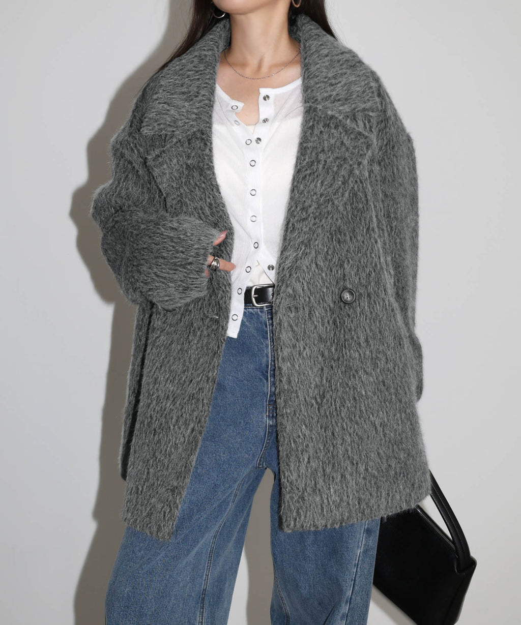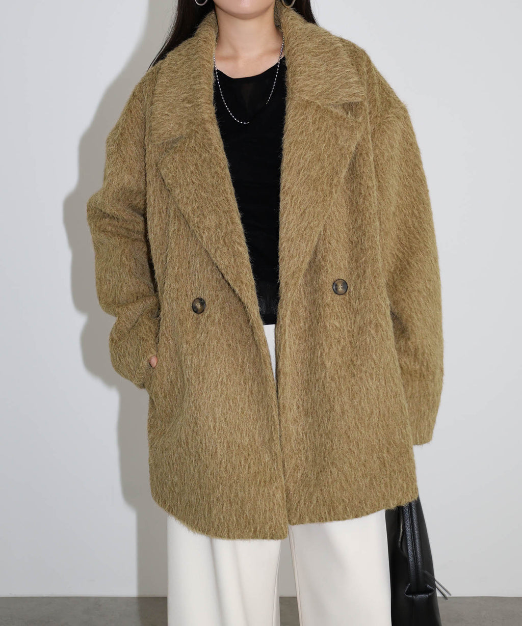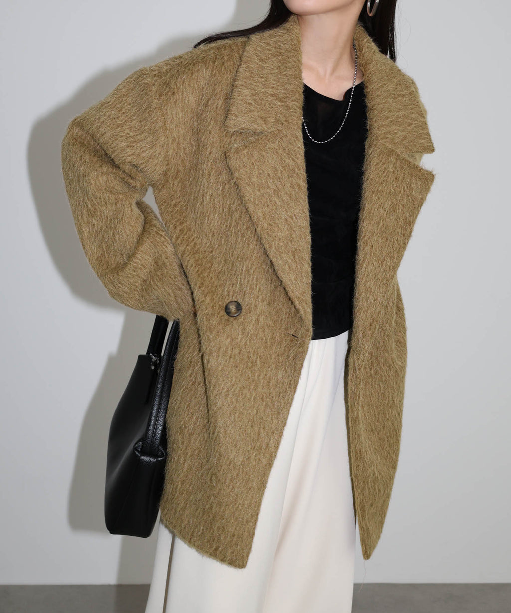 Feather shaggy that keeps you warm and stylish, a mid-length double jacket coat has arrived.