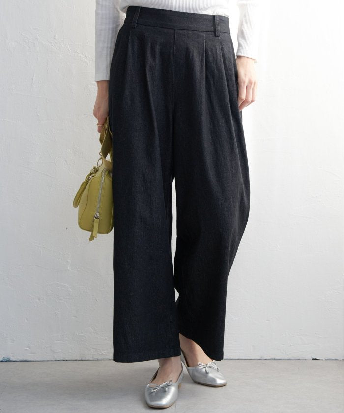 These wide pants feature a simple, classic silhouette with front tuck design.