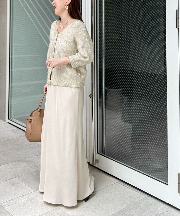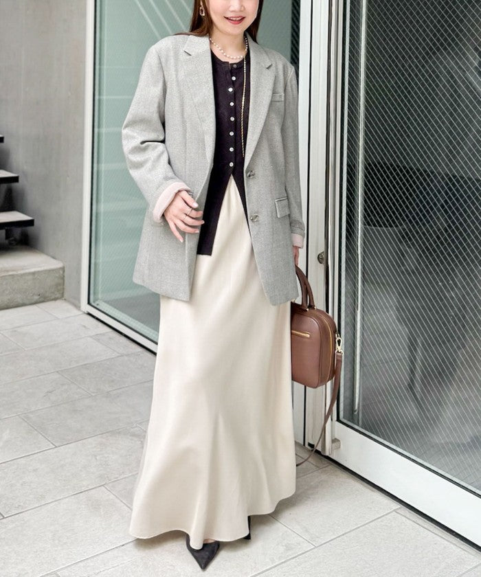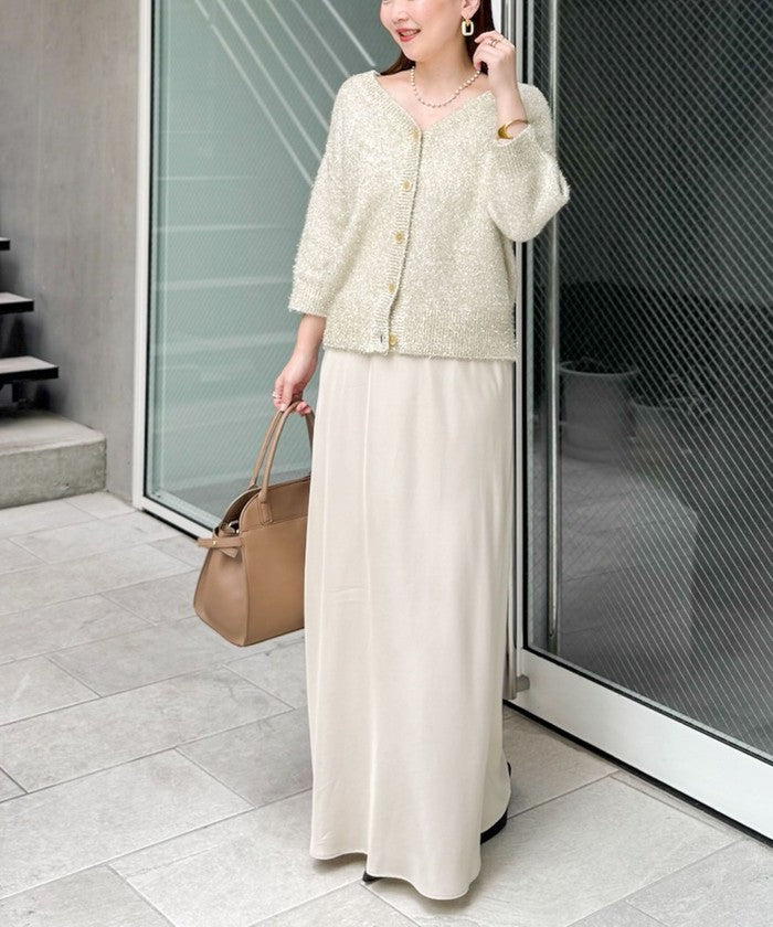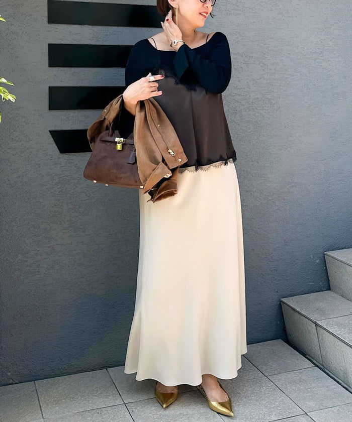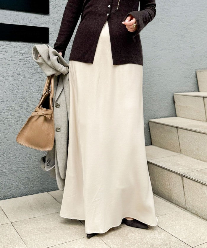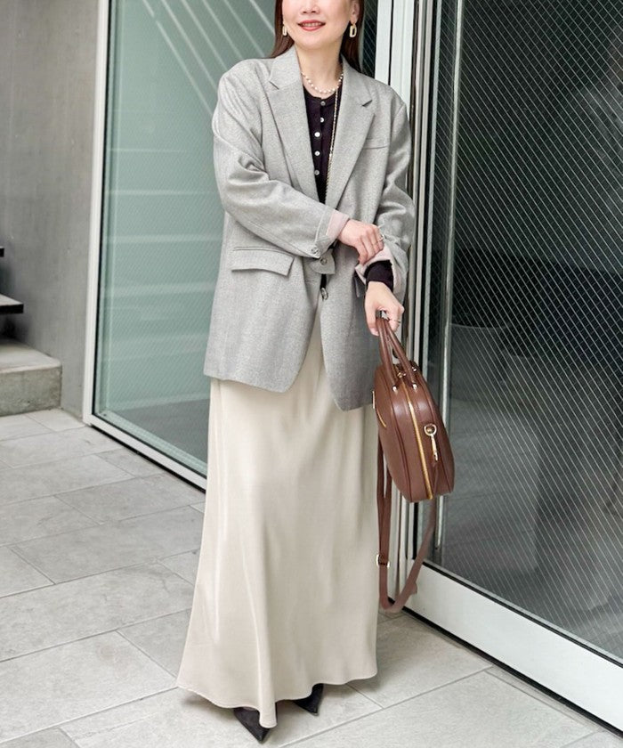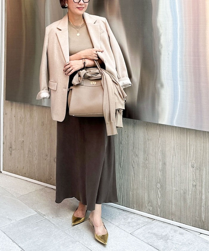 ・With a moderate fibrillation feel, it does not become too casual, has a silk-like luster, is supple and has a drape, creating an elegant narrow skirt with an adult mood.