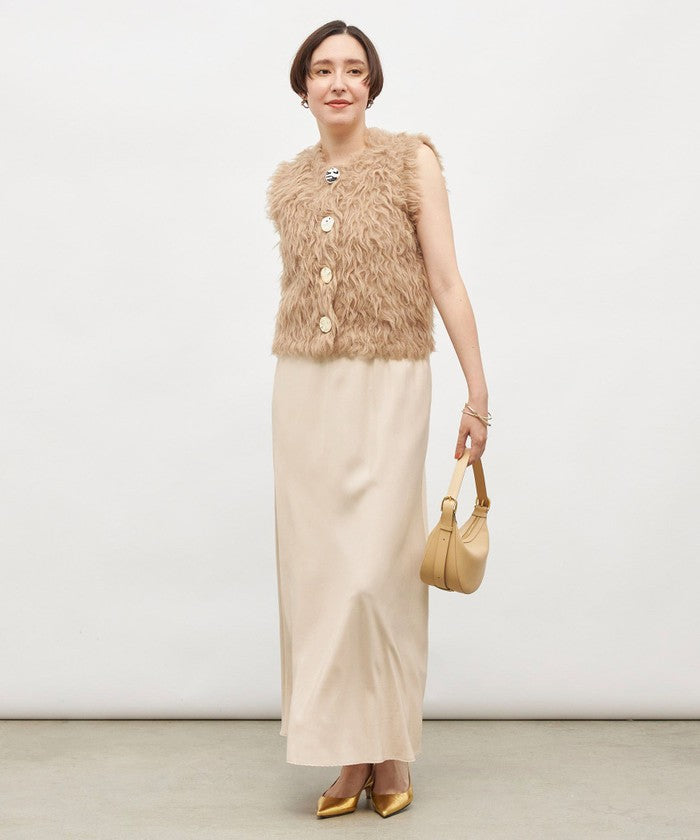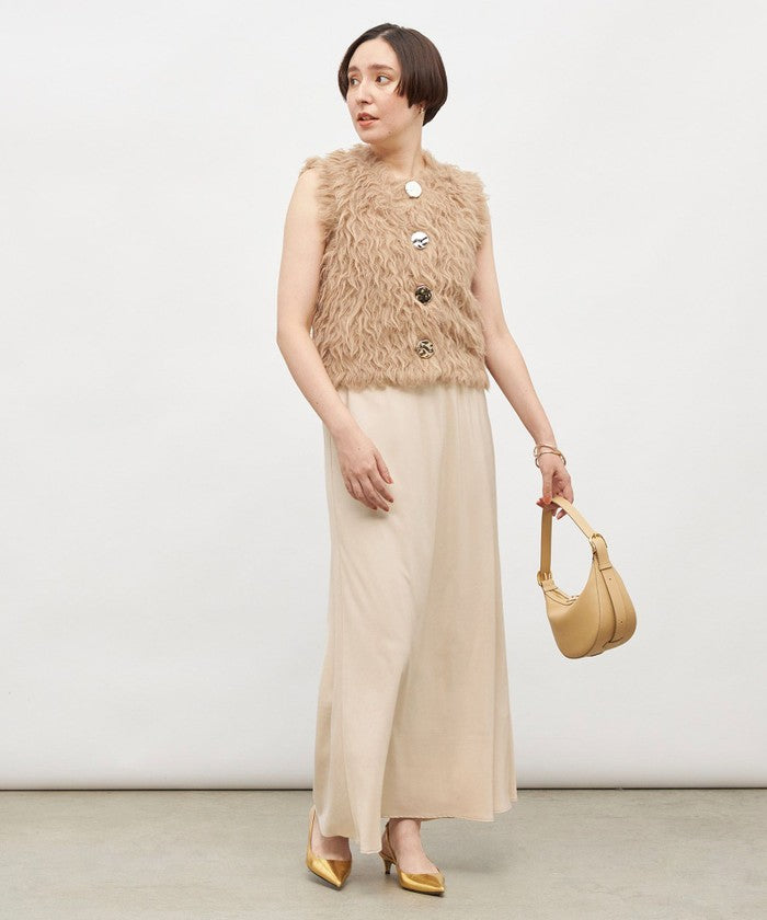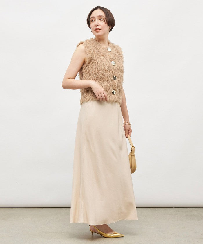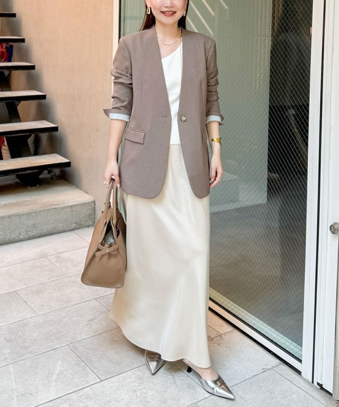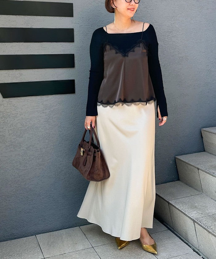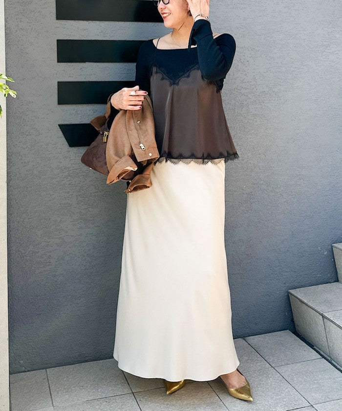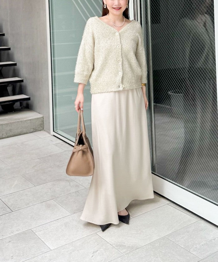 ・With a moderate fibrillation feel, it does not become too casual, has a silk-like luster, is supple and has a drape, creating an elegant narrow skirt with an adult mood.
