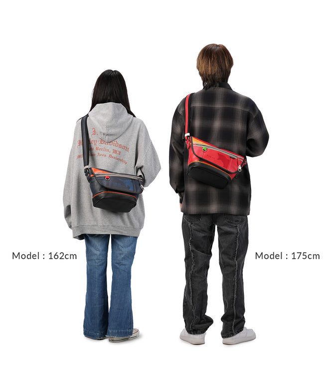 The bag is a practical Size that perfectly fits a smartphone, long wallet, and a 500ml plastic bottle, making it ideal for everyday use. The combination of synthetic leather and polyester provides a high-quality texture that enhances the casual charm unique to Mustache.