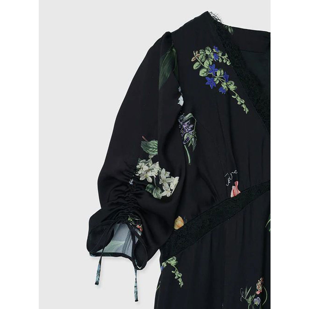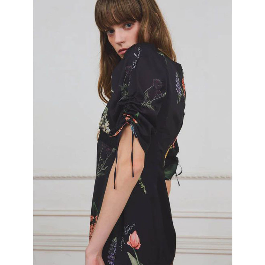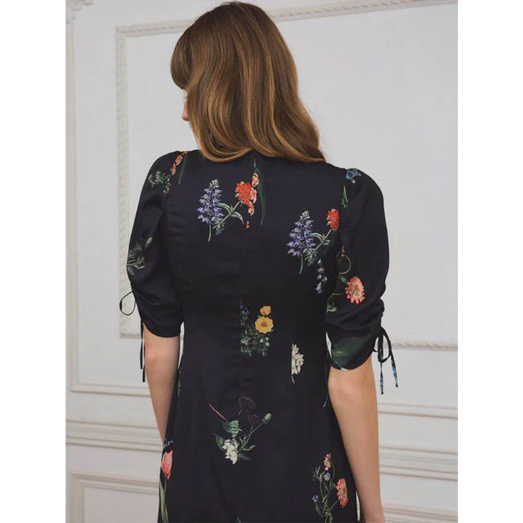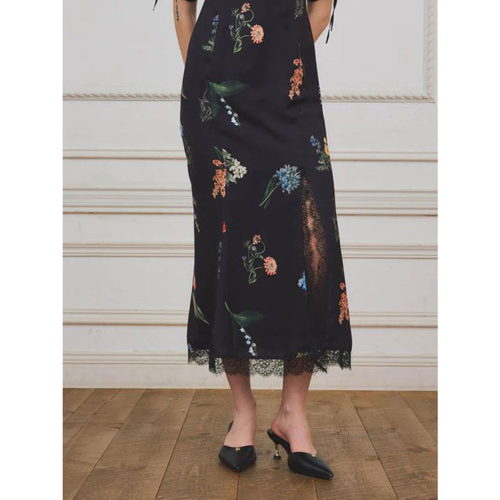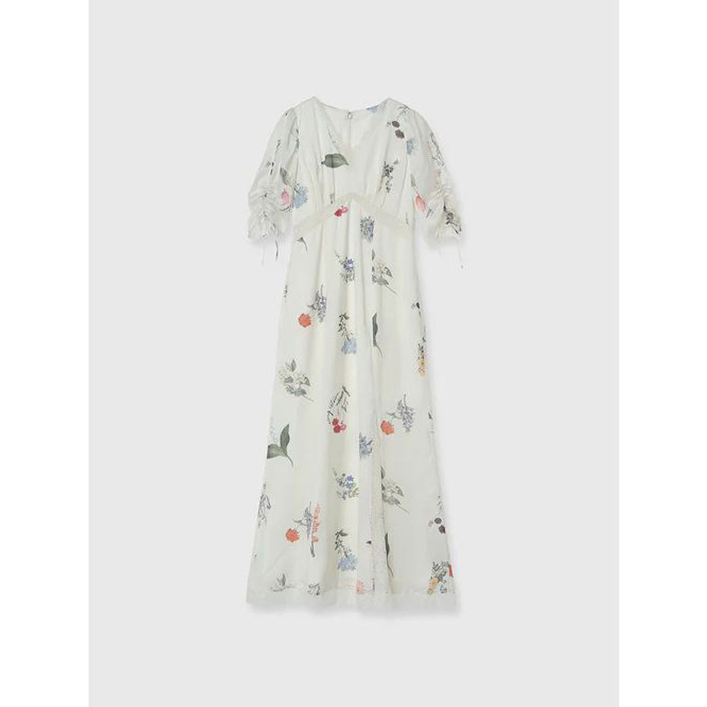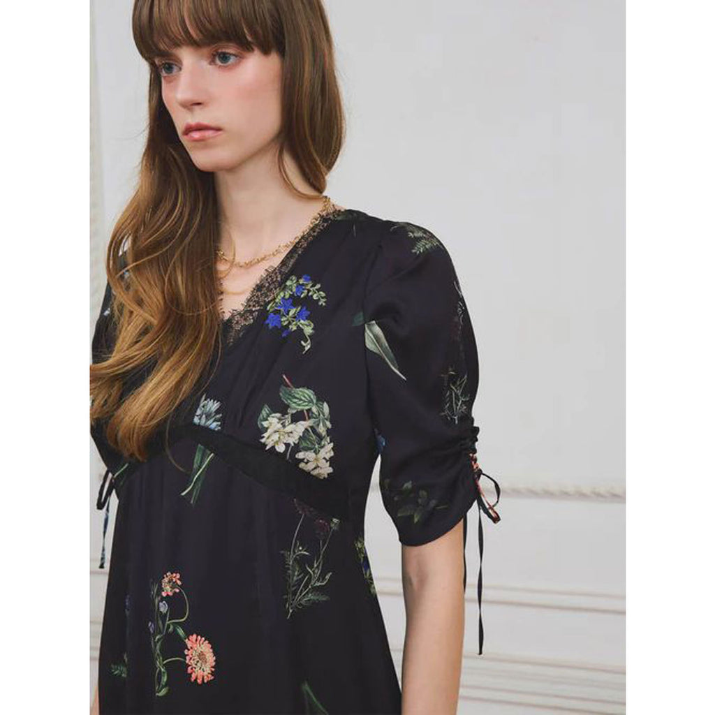 A flower print dress that embodies quiet elegance.