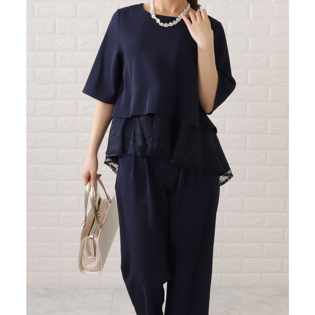 Lace Ladies Peplum Lace Ceremony Setup Pants Dress 2-Piece Set
