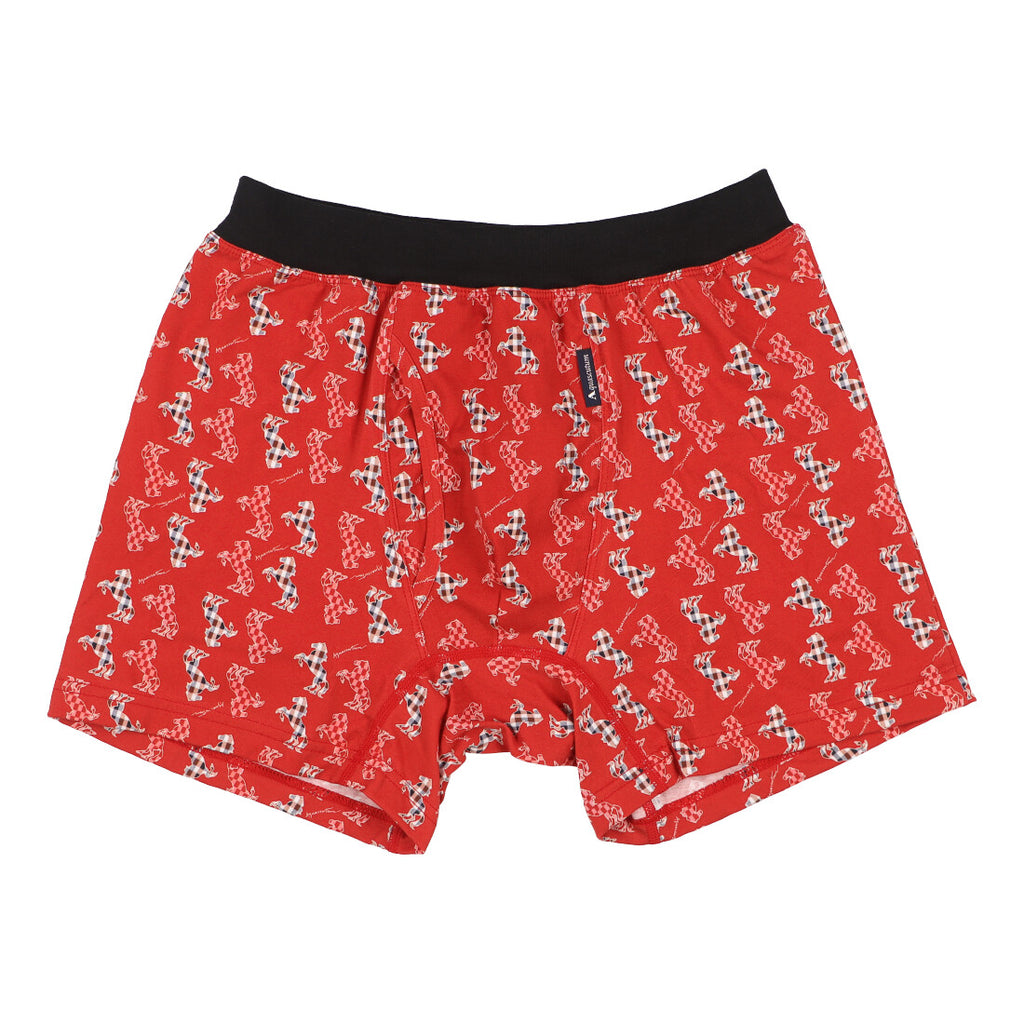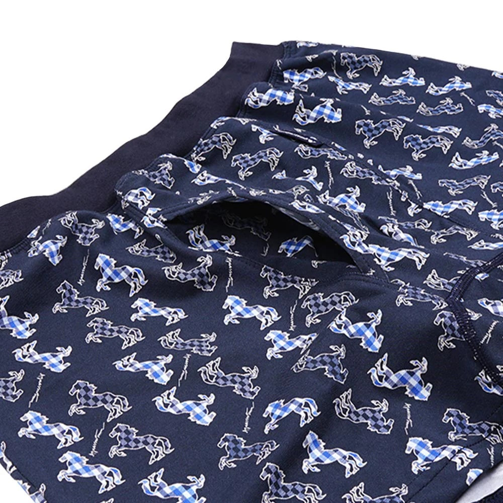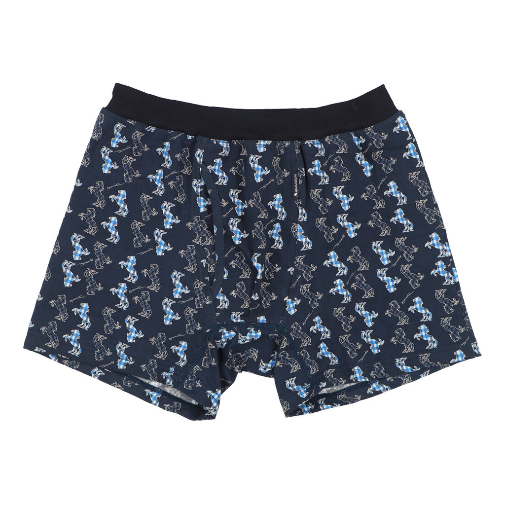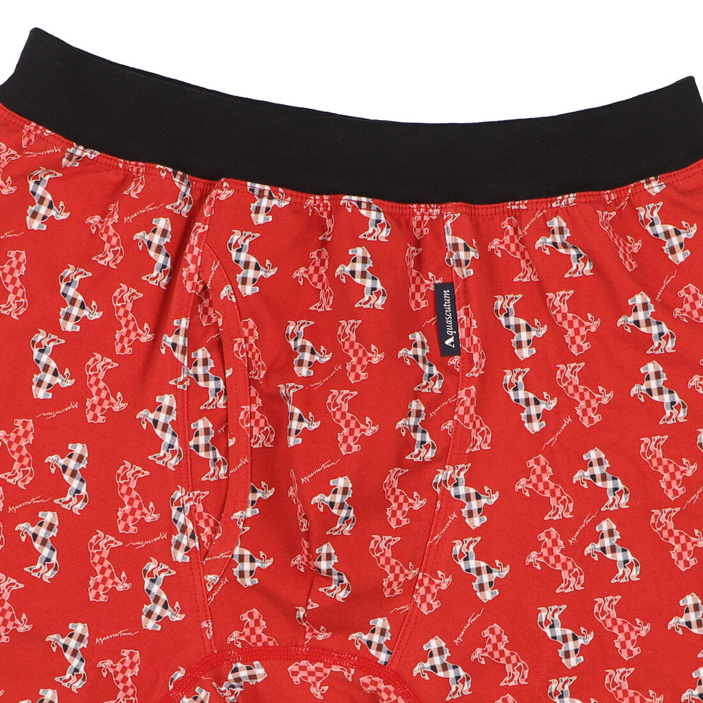 Boxer shorts featuring a check pattern horse as a point of interest.