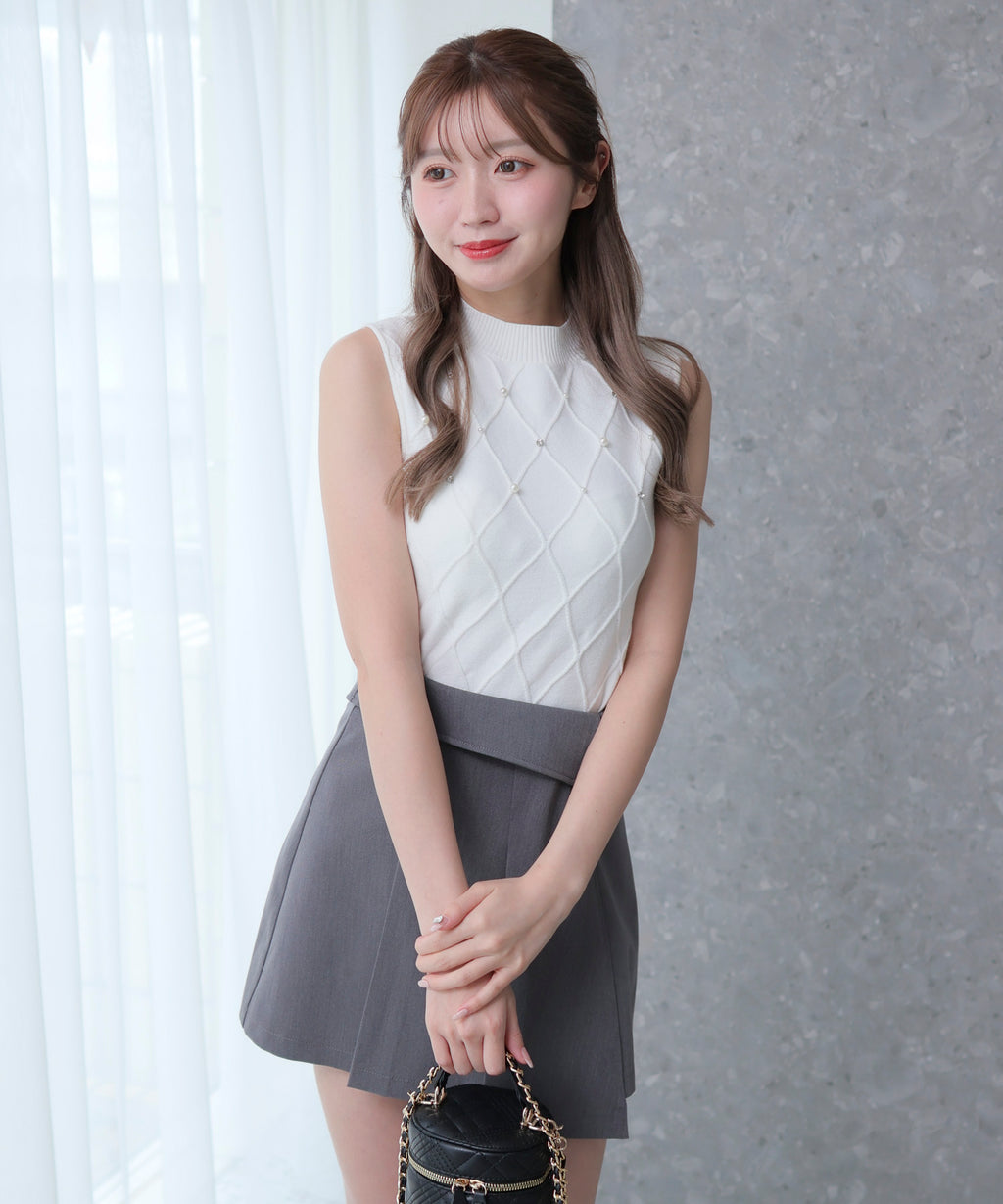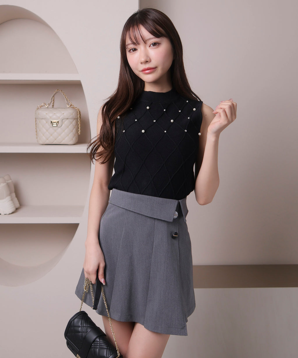 ・Since there is a design at the waist, coordinating with tops tucked in is recommended.