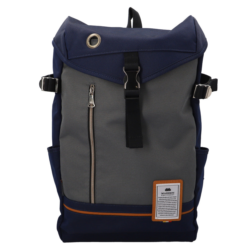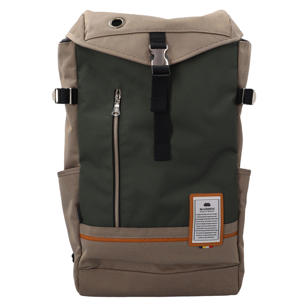 The "MADDEN EQUIPMENT" flap backpack (NMTC-04) is newly released, suitable for both town and outdoor scenes♪【Carefully Designed】Stylish design with polyester fabric and leather-like piping lines◎ Attention to detail in the brand's original name and button placement, etc.【A3 Size Compatible】Main room compatible with A3 size, perfect for various scenes! Ideal for carrying everyday essentials, as well as changes of clothes and luggage for sports clubs, school clubs, and business trips♪【Emerald Color Inner Fabric】Not only stylish but also enhances visibility with the emerald color used for the inner fabric. Easy to spot small items you are looking for.【Multiple Pockets】Equipped with numerous storage pockets! It's a nice point that you can organize and store even if you have many small items. A cushioned PC pocket is placed inside the main room. You can safely carry electronic devices like tablets and laptops.【Back Zipper】Equipped with a direct access zipper on the back that allows you to take things out directly from the main room. It's a nice point that you can take things out while wearing it.【Drawstring Style】The opening has a drawstring, making it easy to open and close♪ The inside is not easily visible, preventing small items from falling out!【Size Adjustment OK】With a flap style and side belt, the size of the bag can be finely adjusted according to the amount of luggage.【Water-Resistant】With light water-repellent function, you can feel secure even in sudden light rain or dirt♪ (※ Not completely waterproof.)【Unisex】With a simple design and basic color variations, it's recommended for both men and women♪【Pocket Specifications】Main room... PC pocket x1 Front... Zipper pocket x1 Side... Open pocket x1 each.