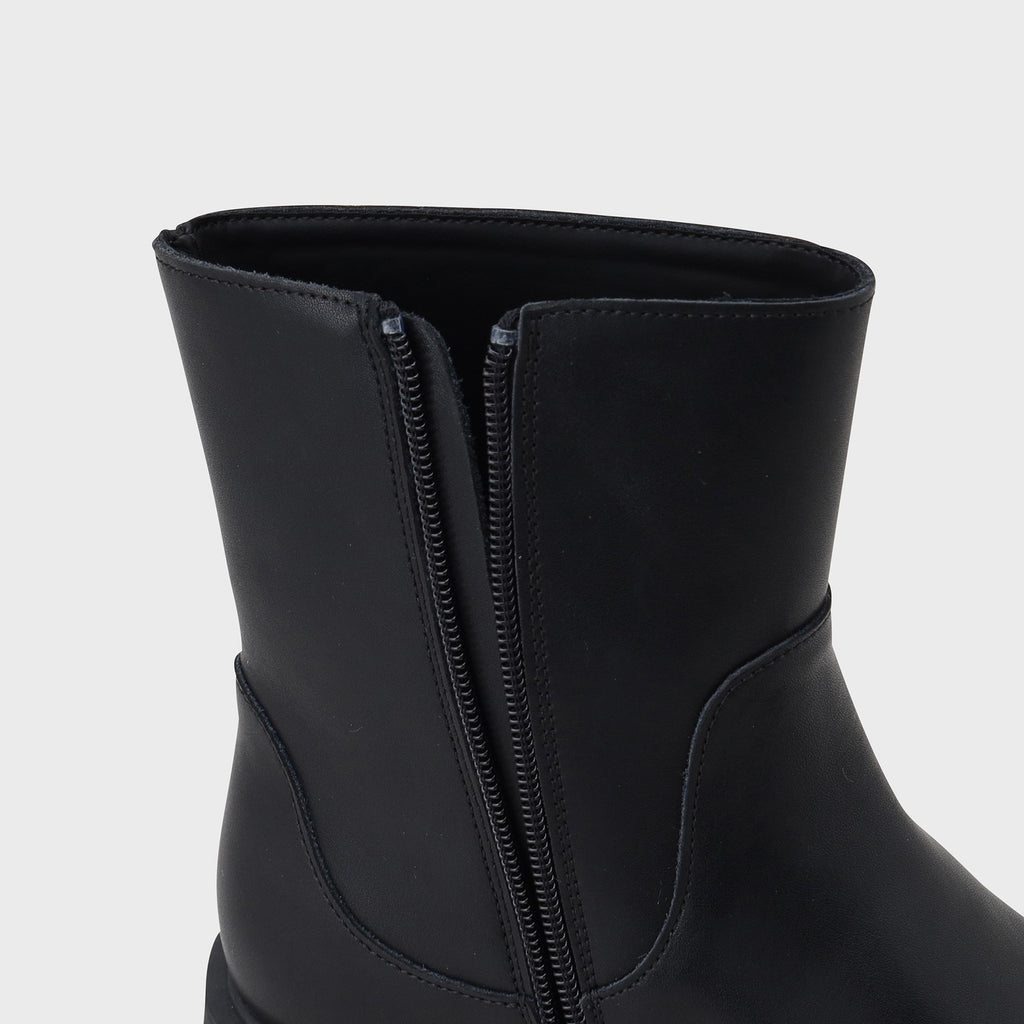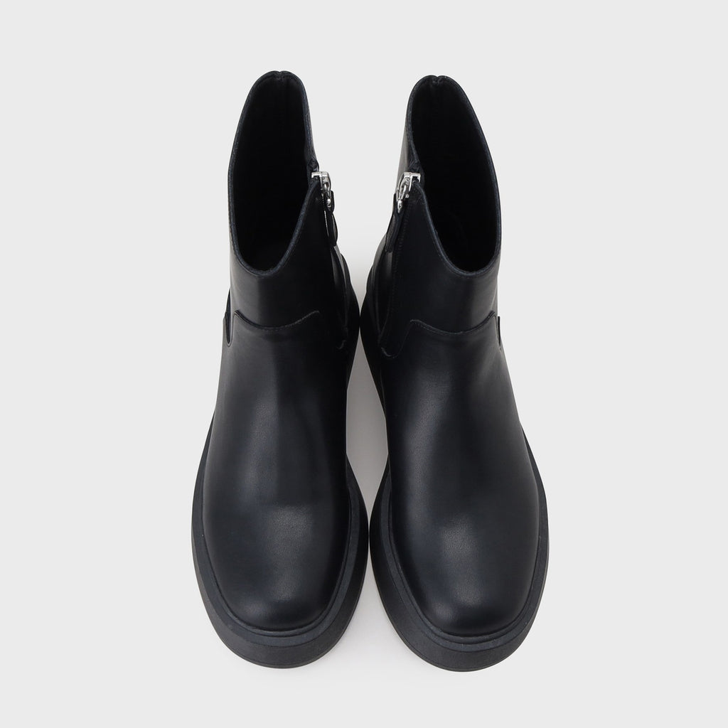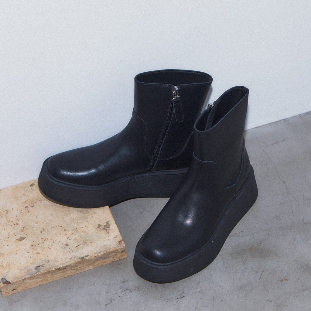 In contrast to the volume of the sole, the sleek cylindrical shape pairs well with all types of bottoms, and it's a point of enjoyment to wear it with socks or tucked into pants.