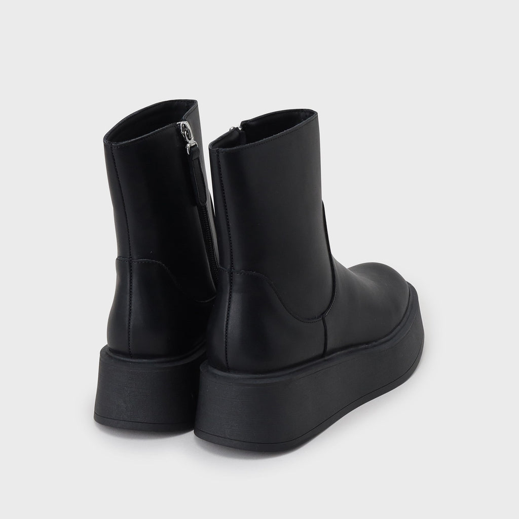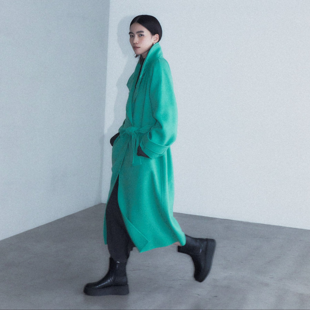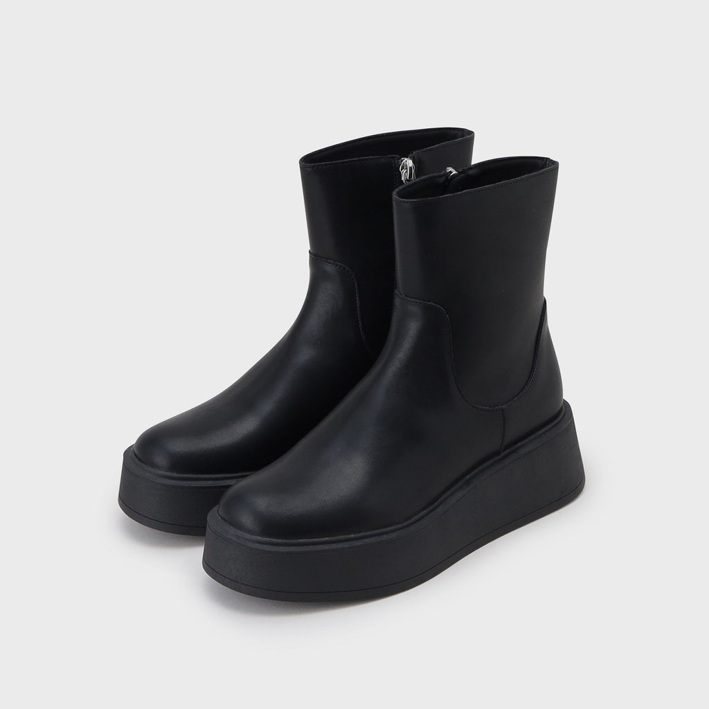 In contrast to the volume of the sole, the sleek cylindrical shape pairs well with all types of bottoms, and it's a point of enjoyment to wear it with socks or tucked into pants.