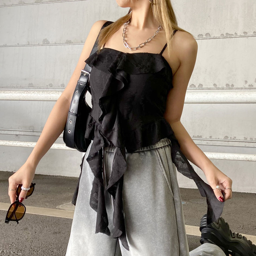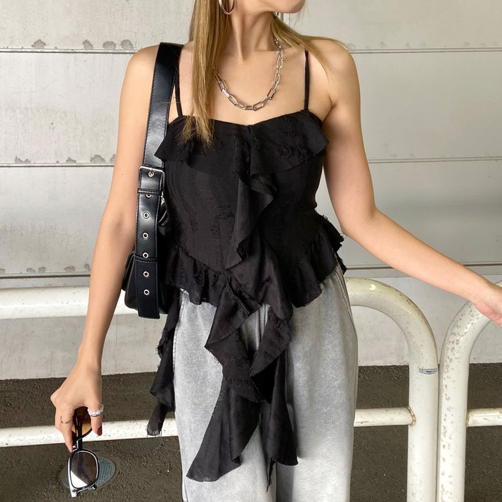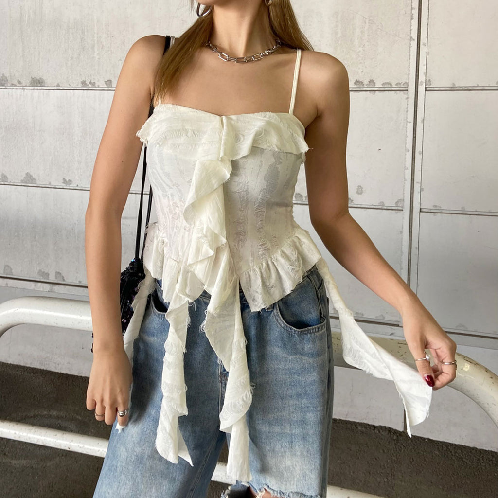 Non-hedge damage frill asymmetric camisole
