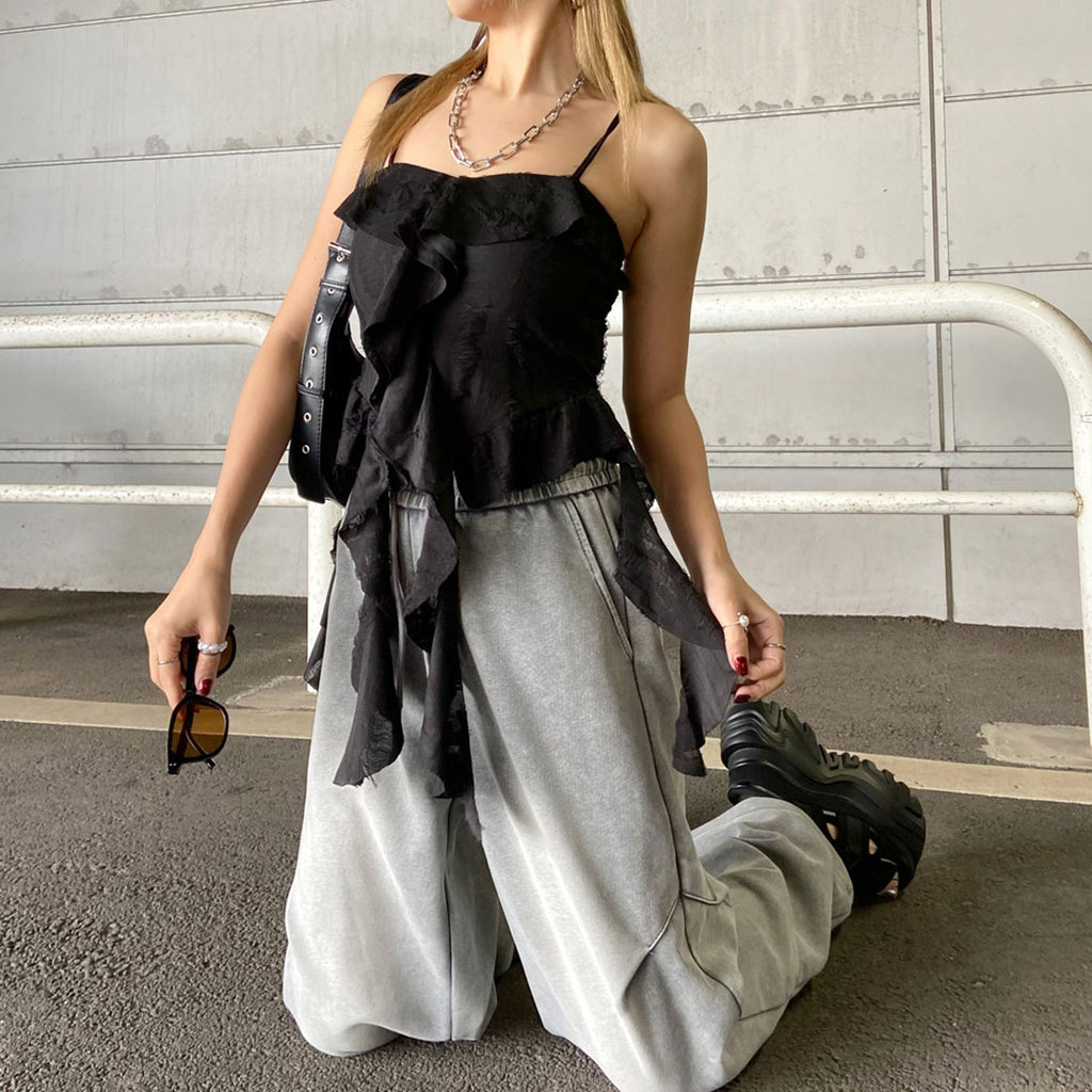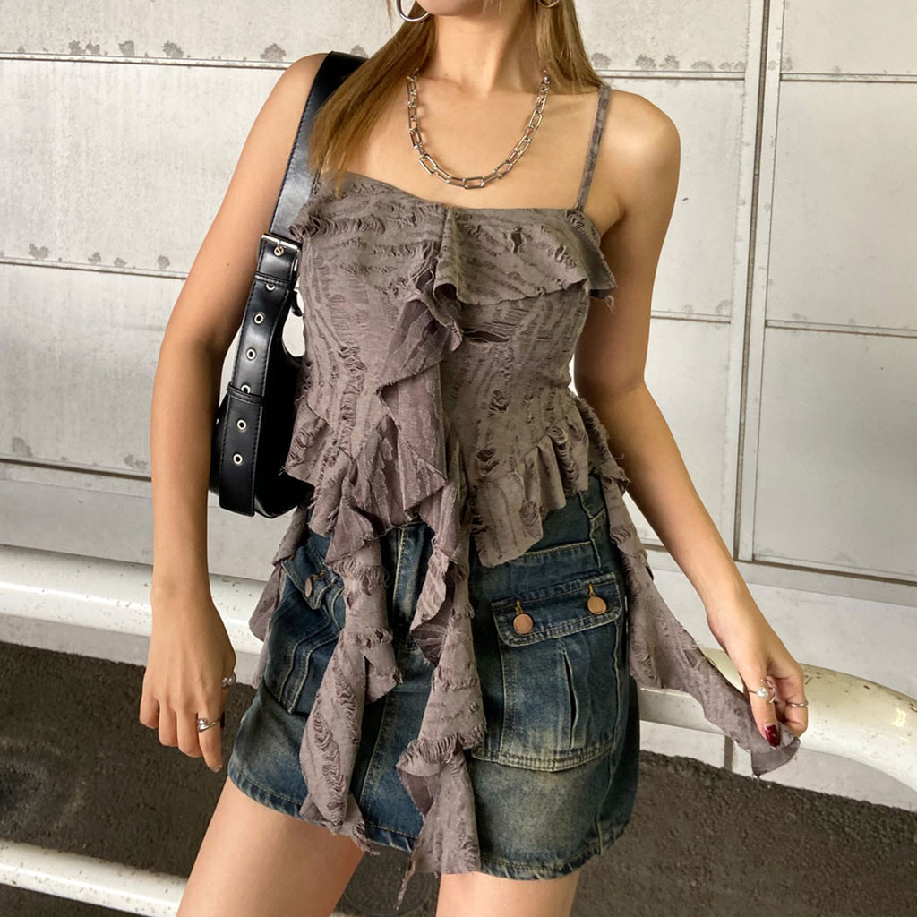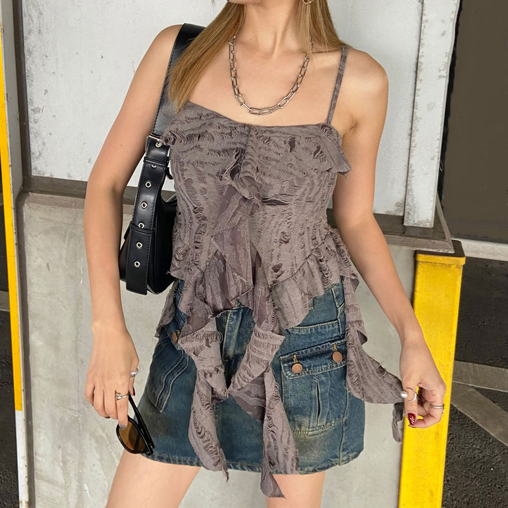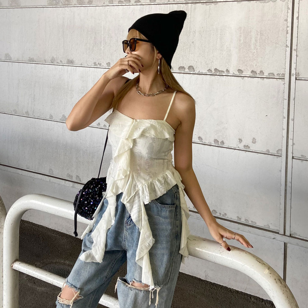 Non-hedge damage frill asymmetric camisole
