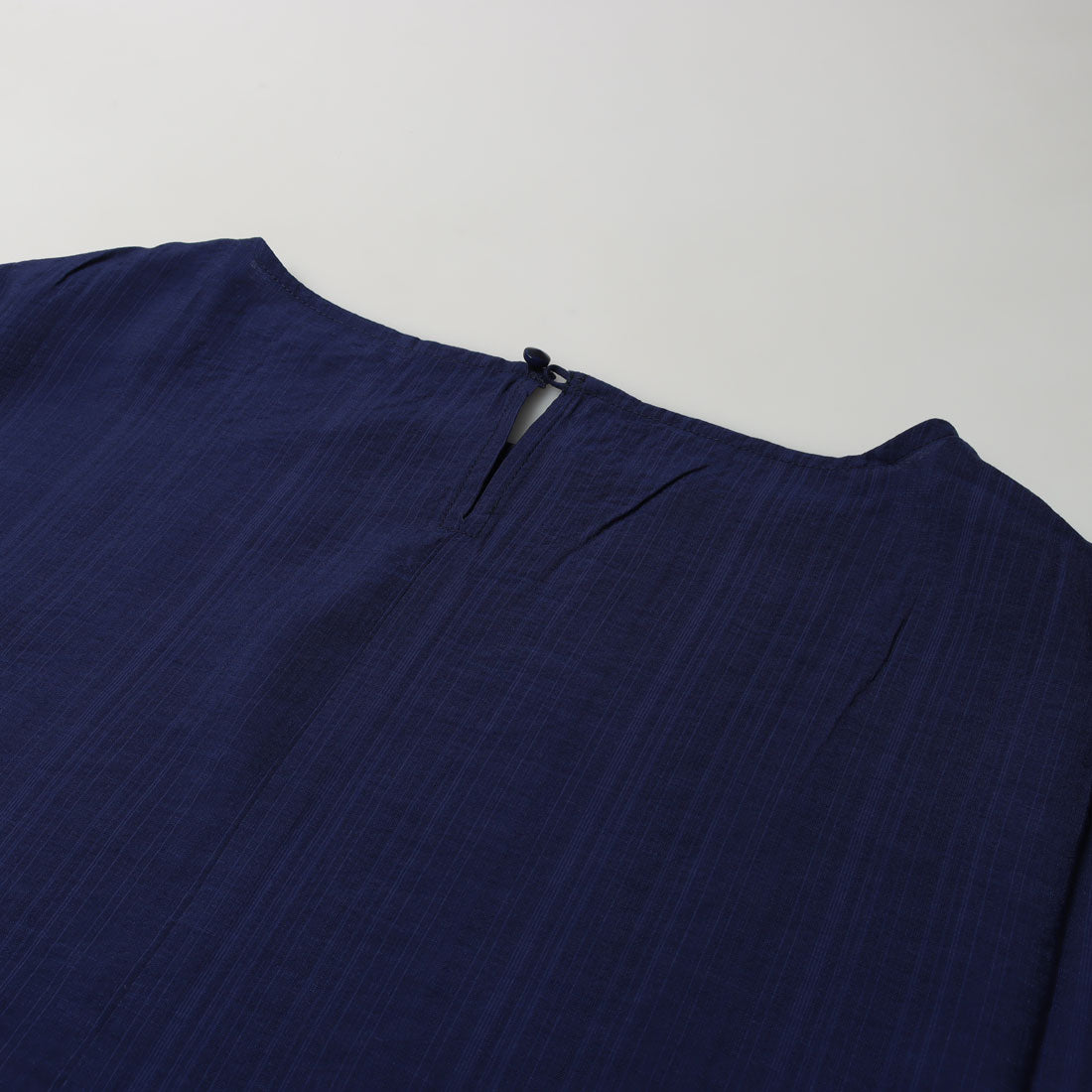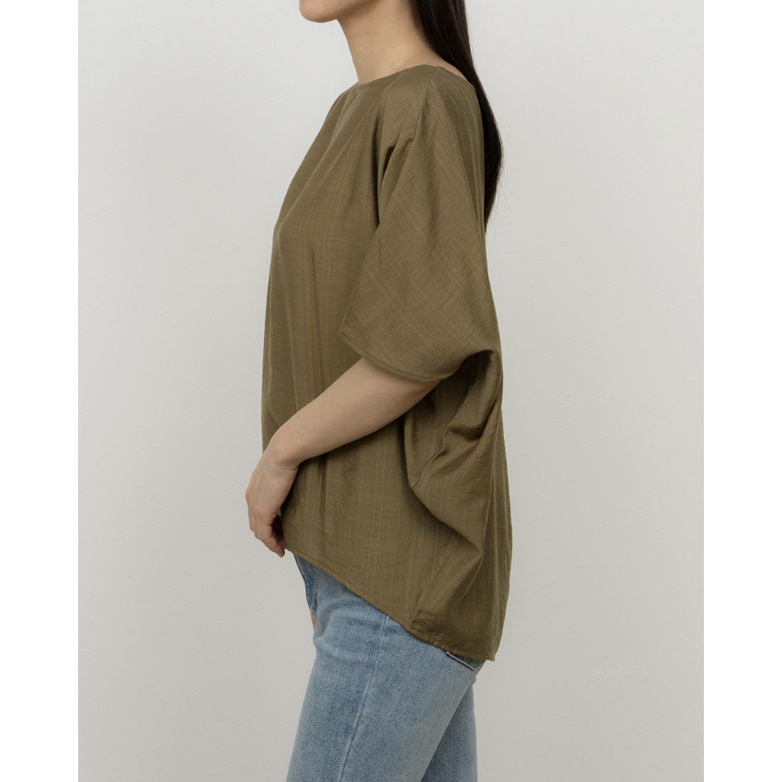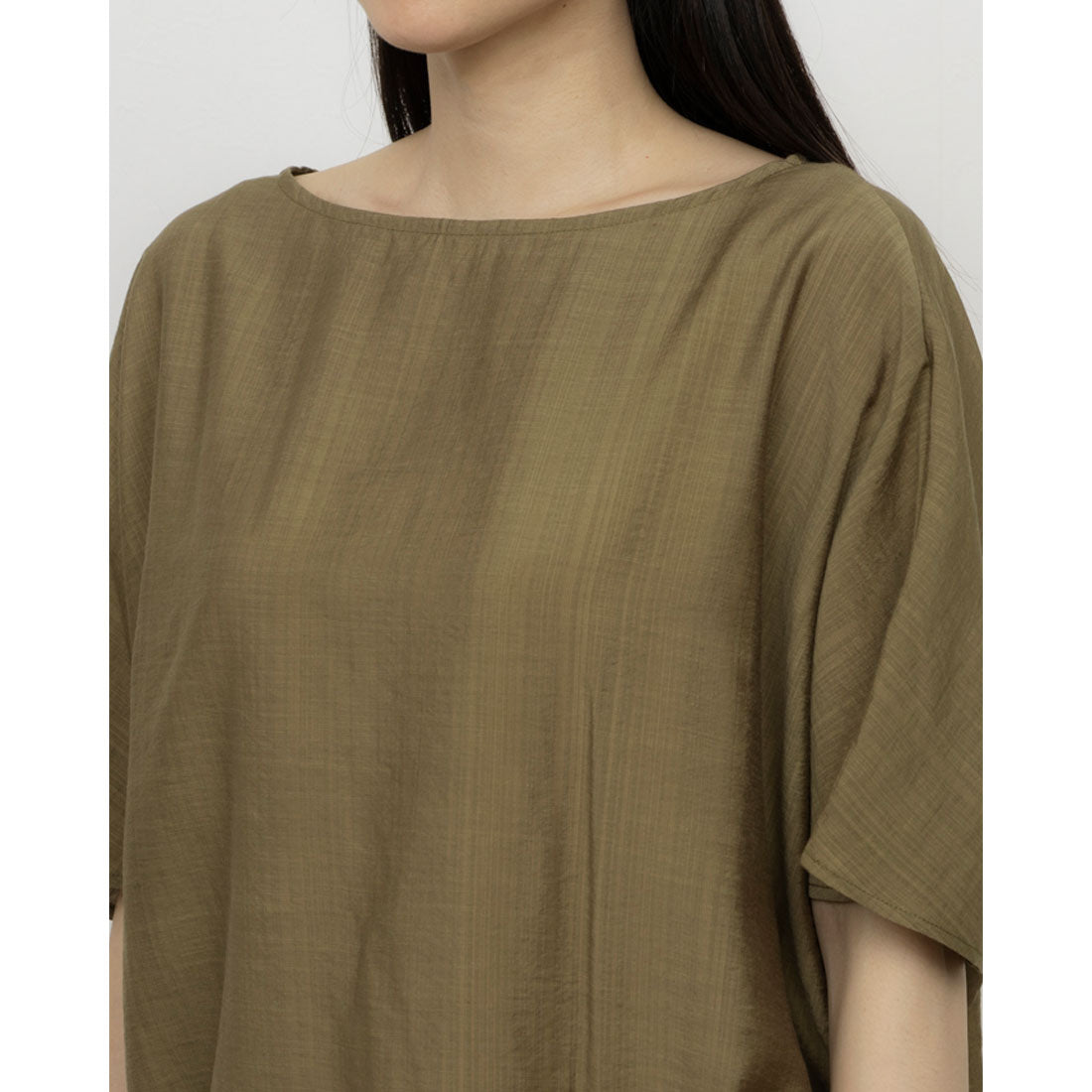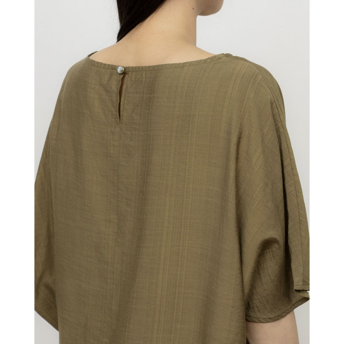 The loose silhouette with sleeves that continue from the body provides a comfortable wearing experience even in the hot summer.