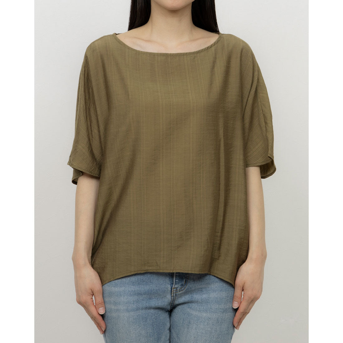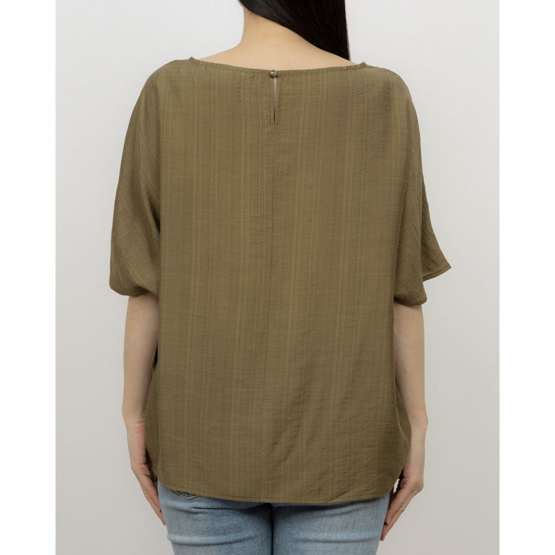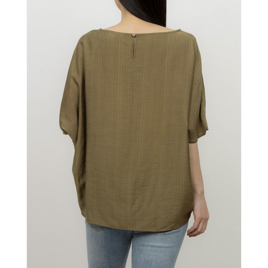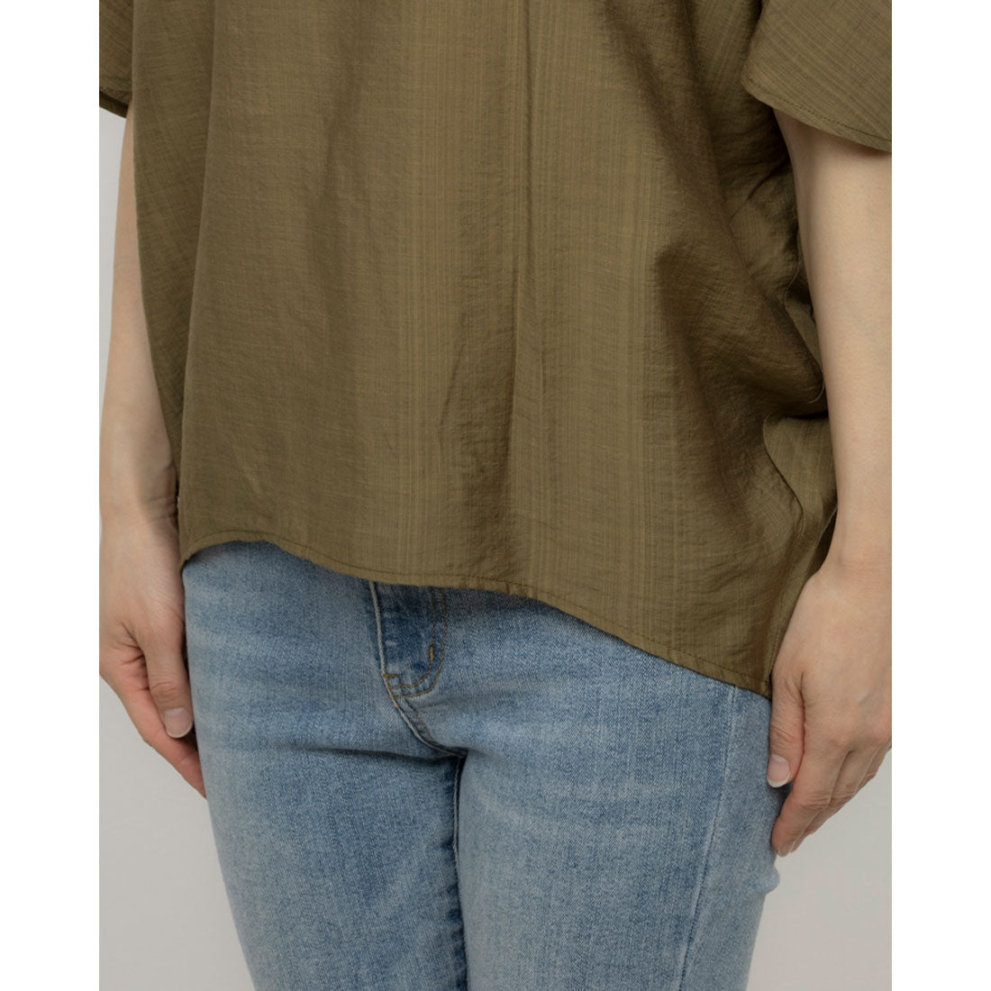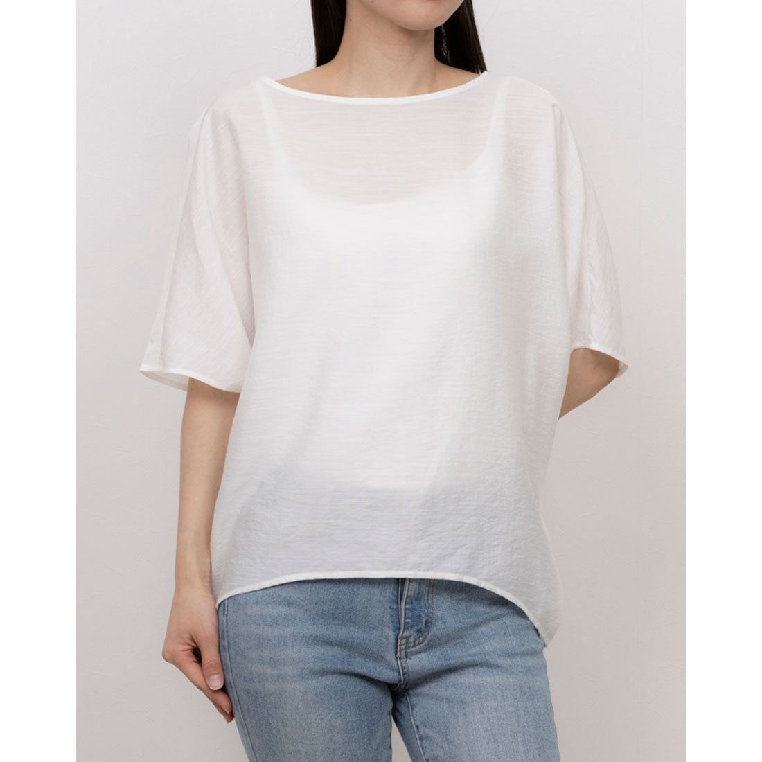 The loose silhouette with sleeves that continue from the body provides a comfortable wearing experience even in the hot summer.