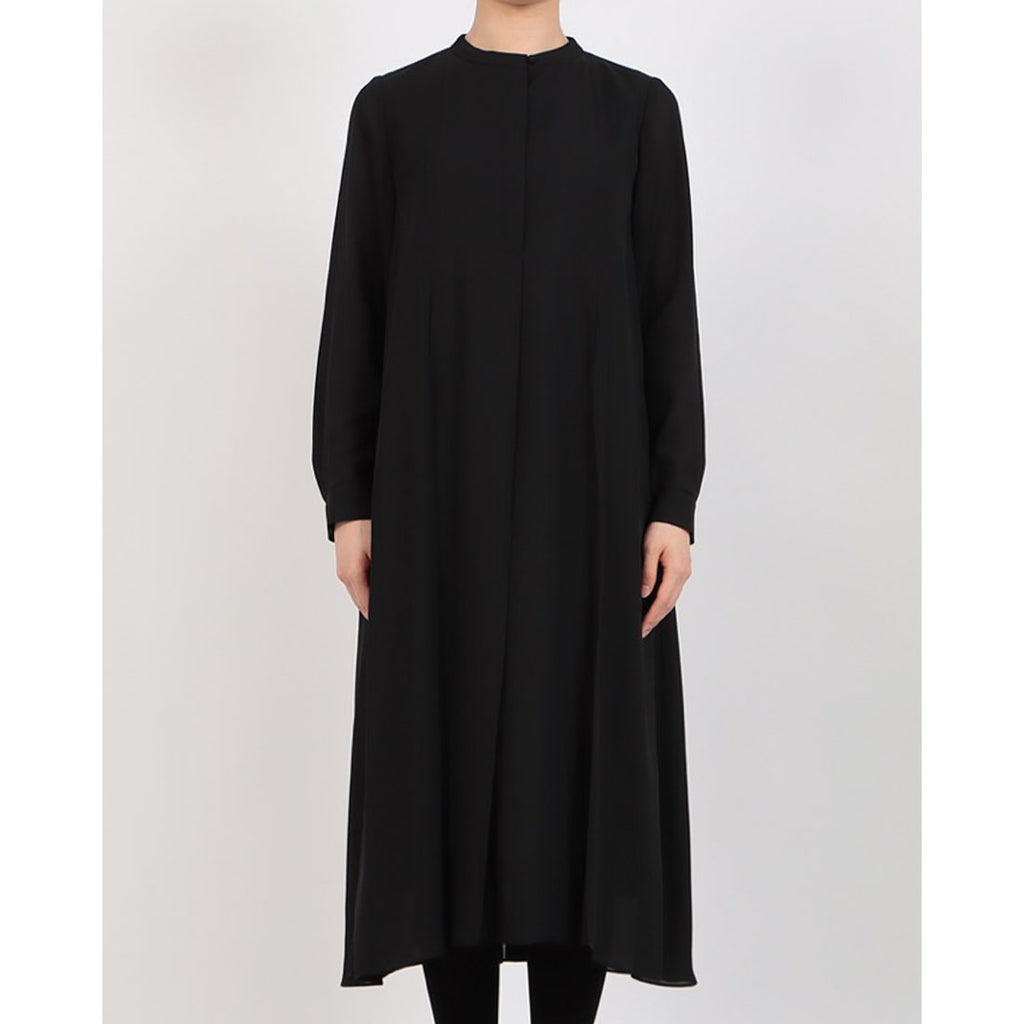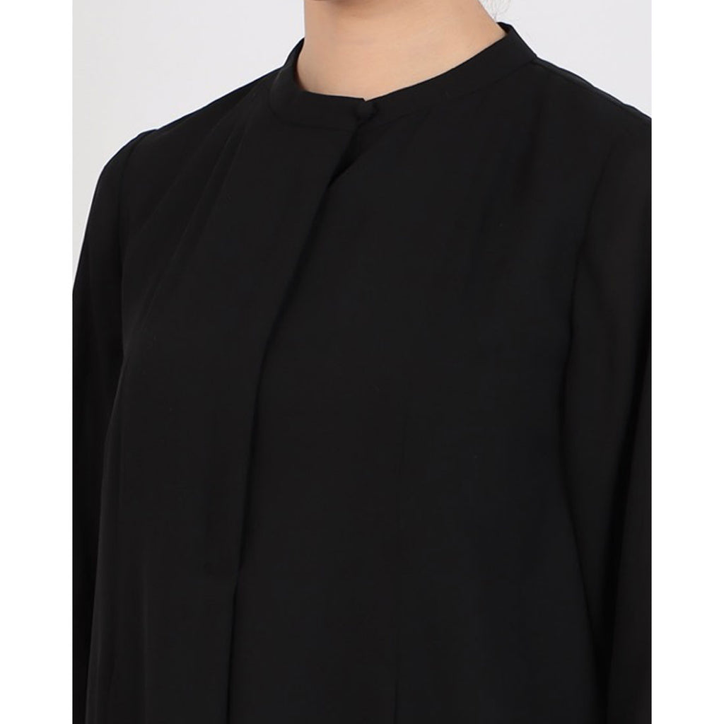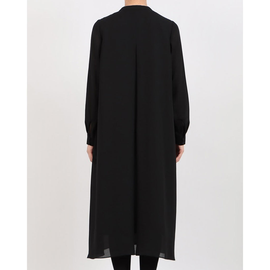 - Small band collar and concealed buttons with a placket create a sleek, stitchless detail.