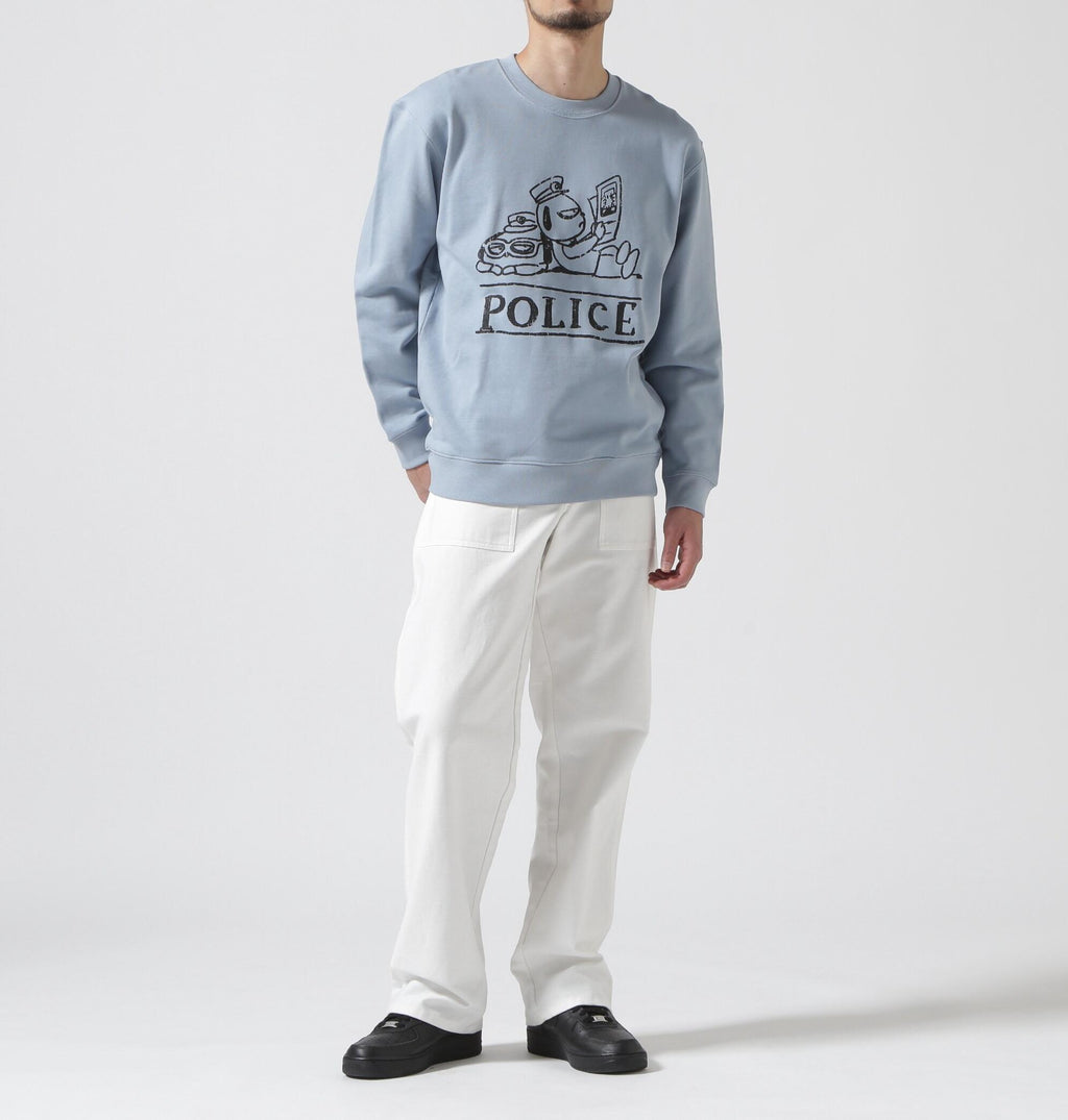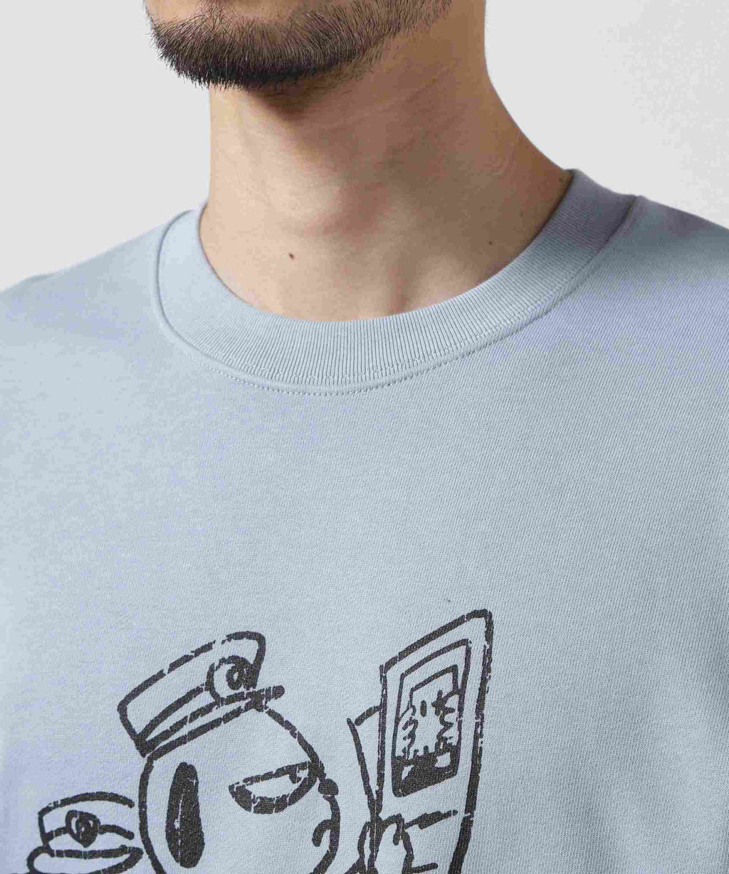 A sweatshirt printed with the characters from Odd Taxi in a vintage style, drawn with a touch that has a sense of looseness.