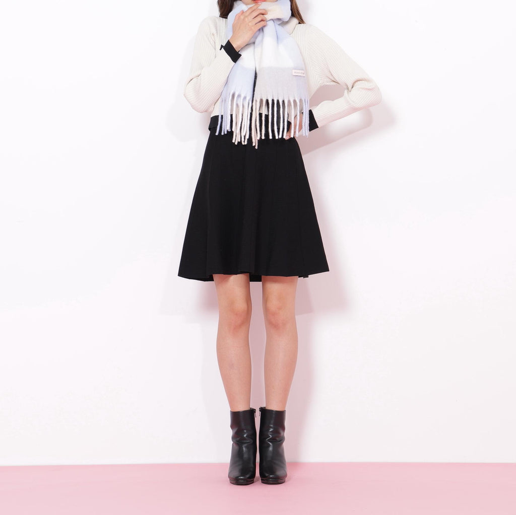 "Brand debut block check stole" uses fine shaggy yarn. It has a lightweight brushed finish, giving it a good texture and an airy finish. Each color of the block check is dyed in an original color, and the coloring unique to JILL by JILL STUART is a key point. The beautiful coloration makes it a standout piece for coordination. The 30 cm slightly narrow width makes it easy to style and perfect for daily use. *Please note that the color may appear different due to lighting conditions during photography.*