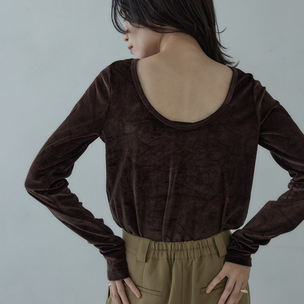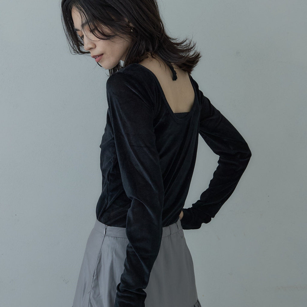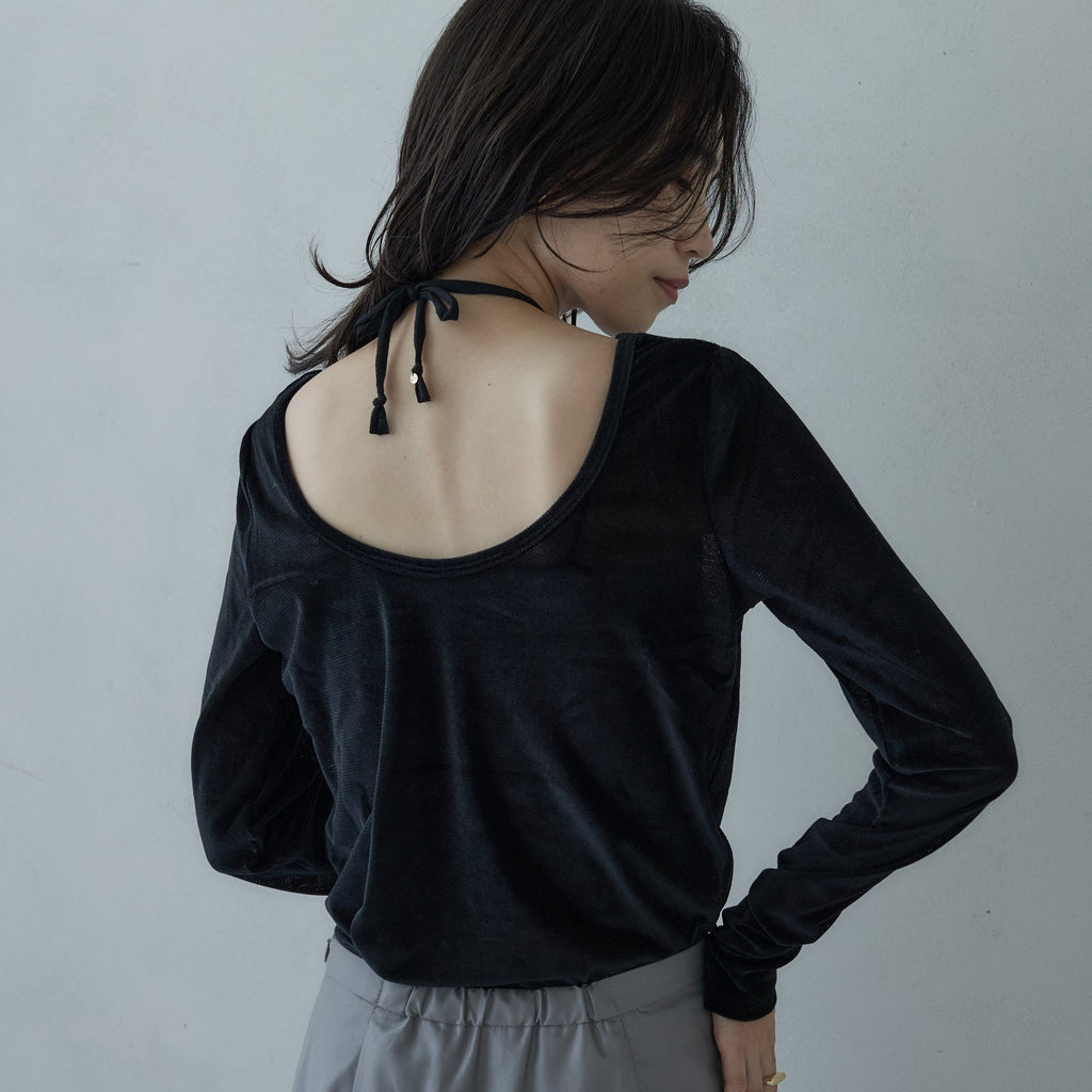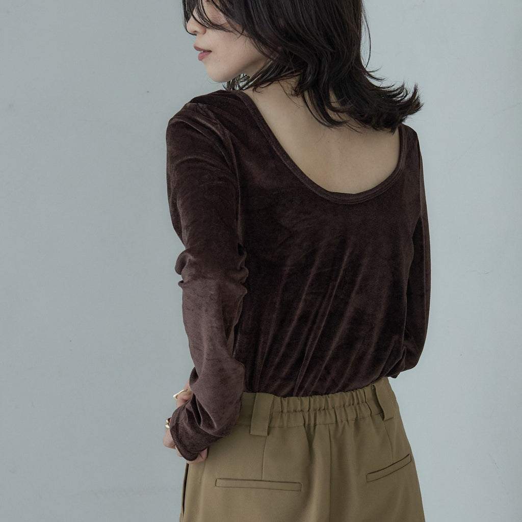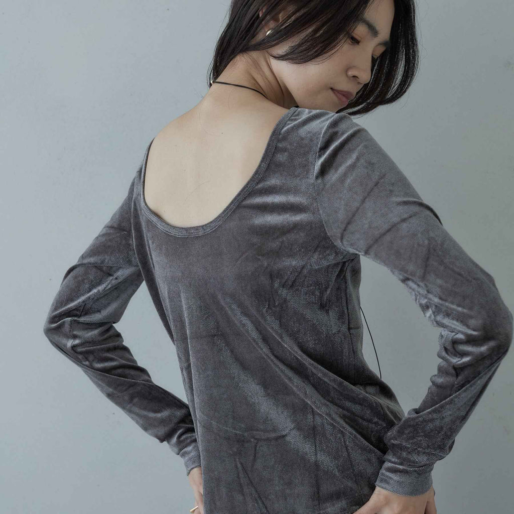 Galleast GALLEST Back Cut Out Velour Cut and Sewn Top