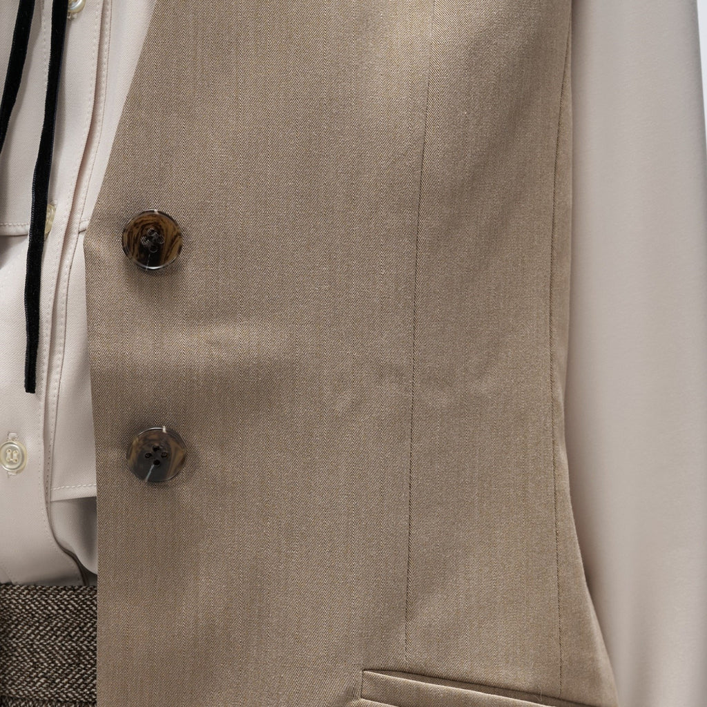 ・A fabric with a moderate thickness, with lining, suitable for long seasons.