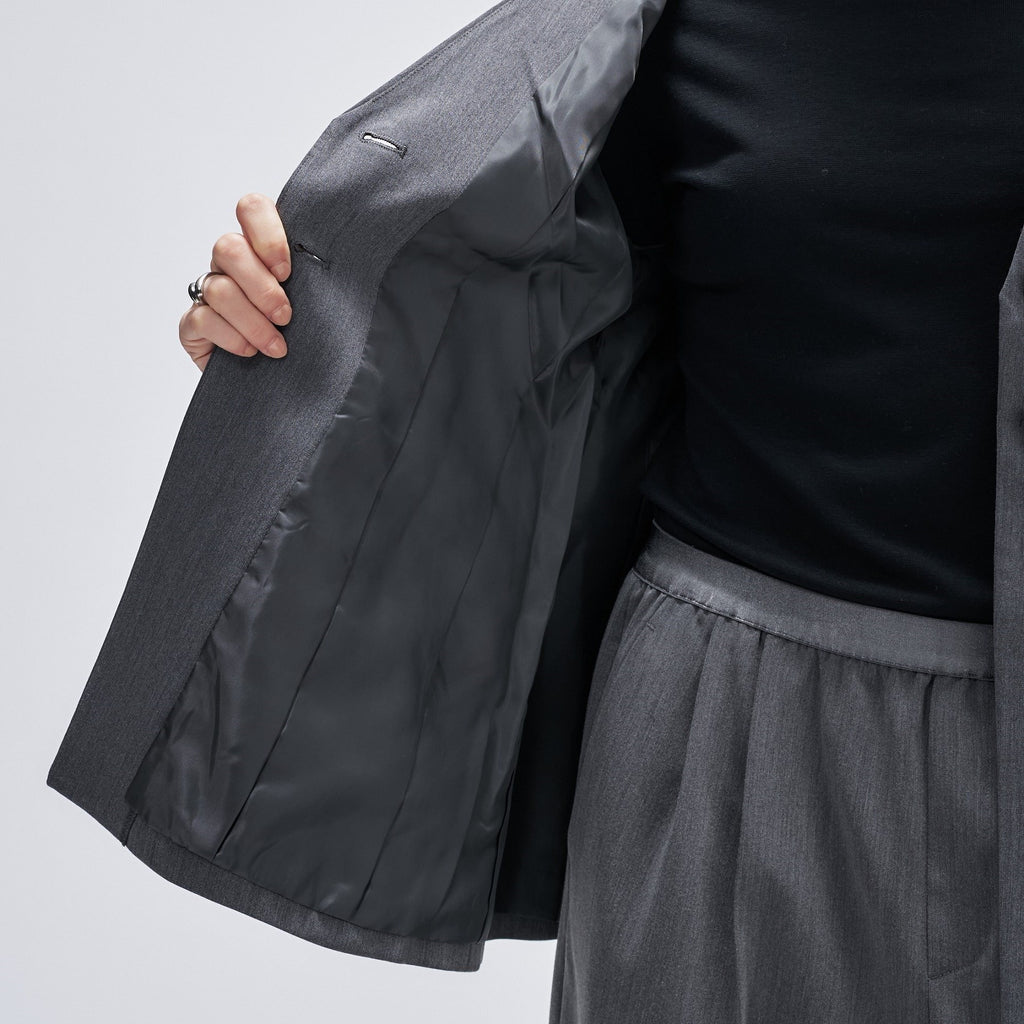 Material 素材:表地:ポリエステル76% レーヨン19% ポリウレタン5% 裏地:ポリエステル100%