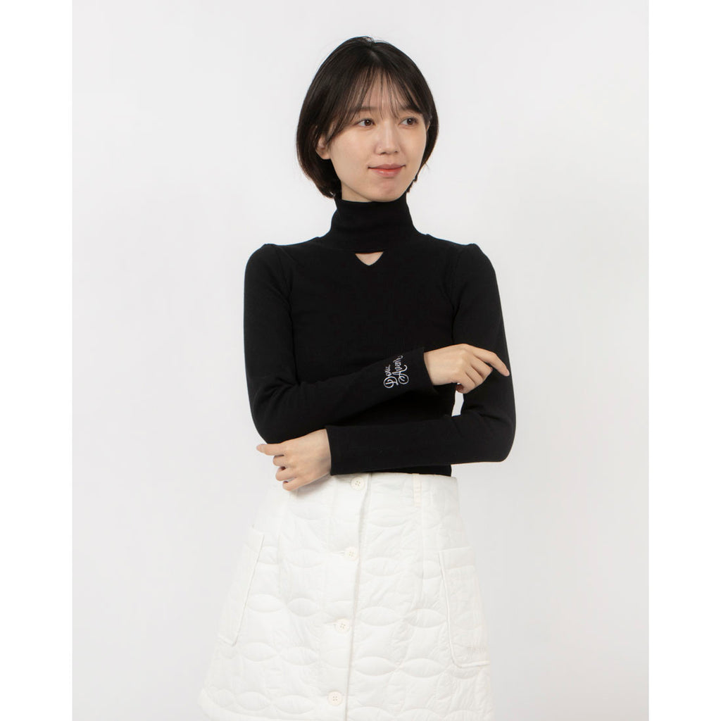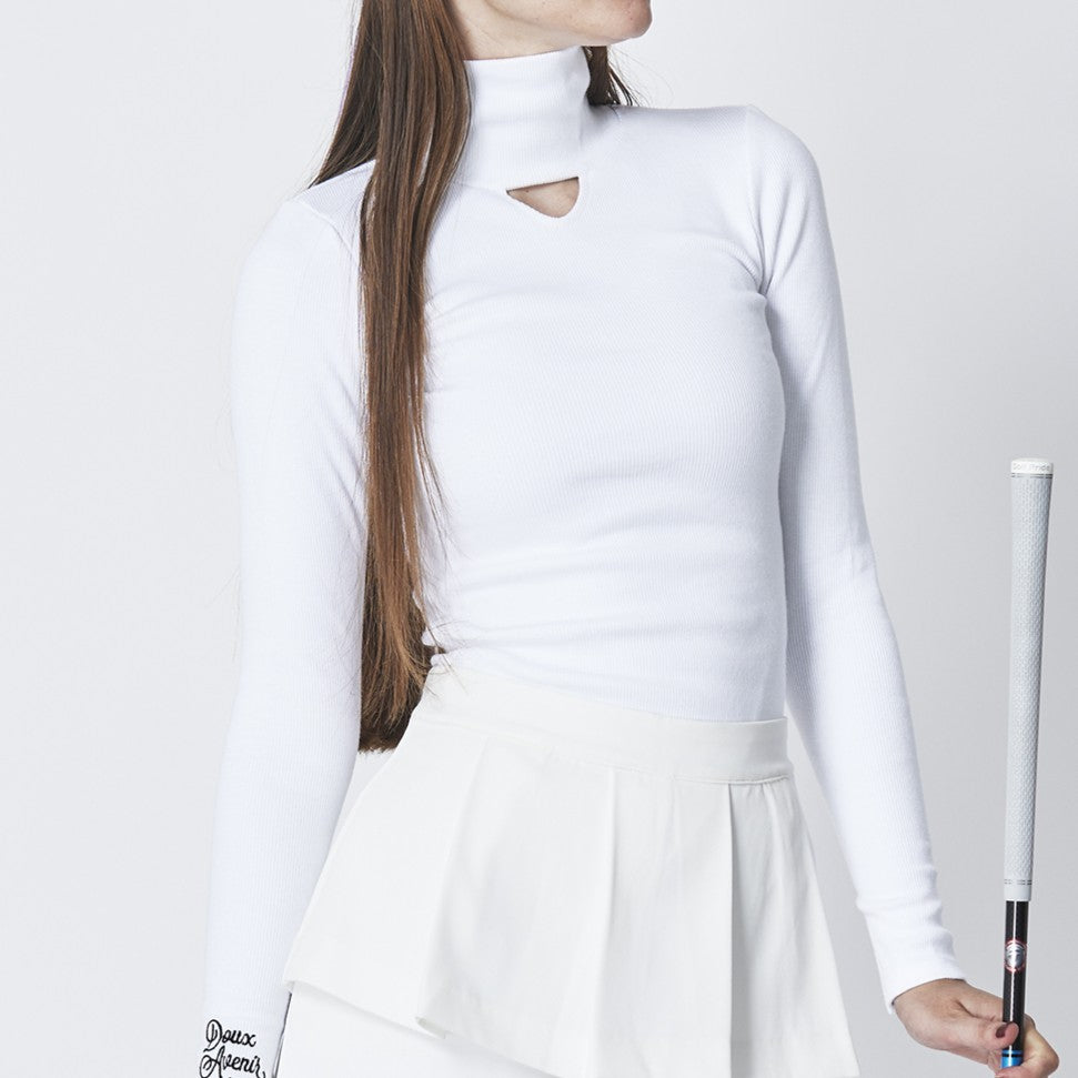 This is a knit cut-and-sew with an eye-catching front cutout.