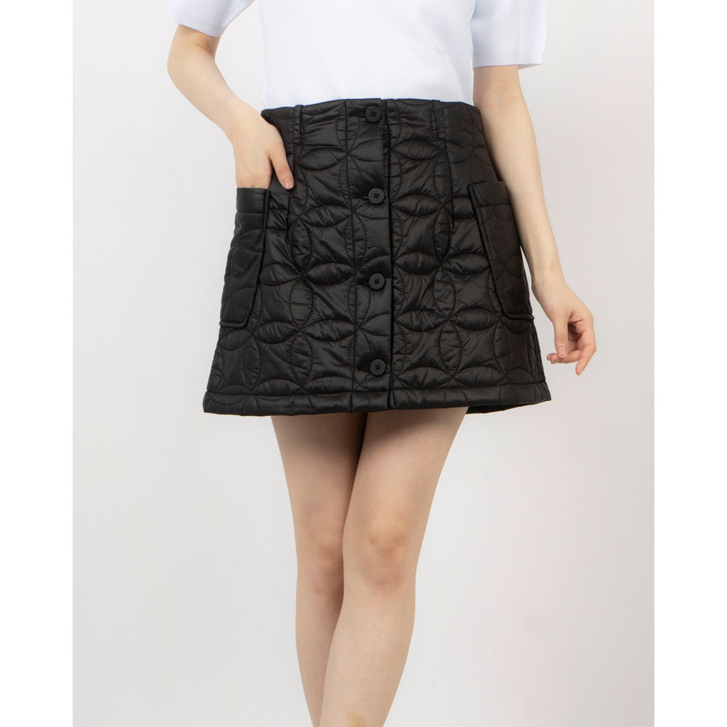 A simple trapezoidal shape with buttons as a point of interest, a padded quilted skirt.