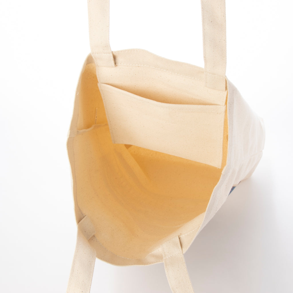 The tote bag made of durable canvas is a convenient size that can fit A4 files.