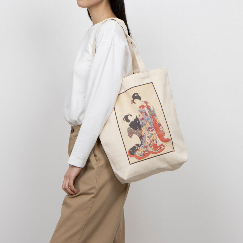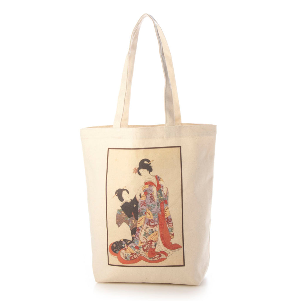 A striking tote bag printed with a design typical of Japan, centered around ukiyo-e patterns.
