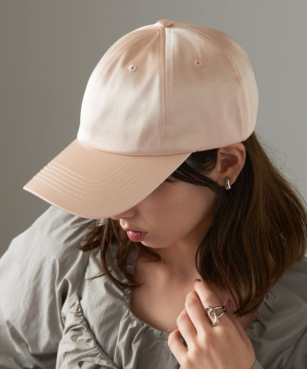 Utilize the luster of the satin cap for a casual style with a T-shirt and denim.