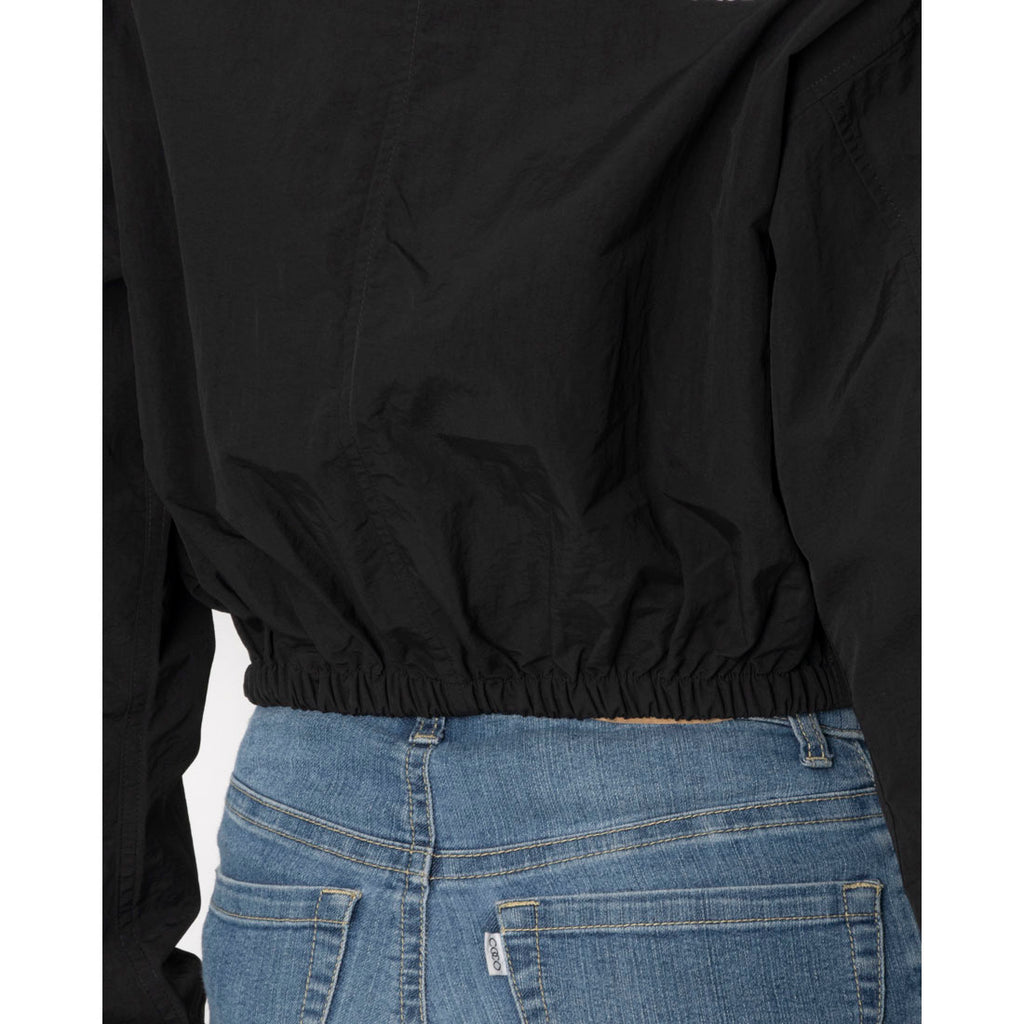 With elastic at the waist and cuffs, it creates a compact silhouette that enhances femininity.