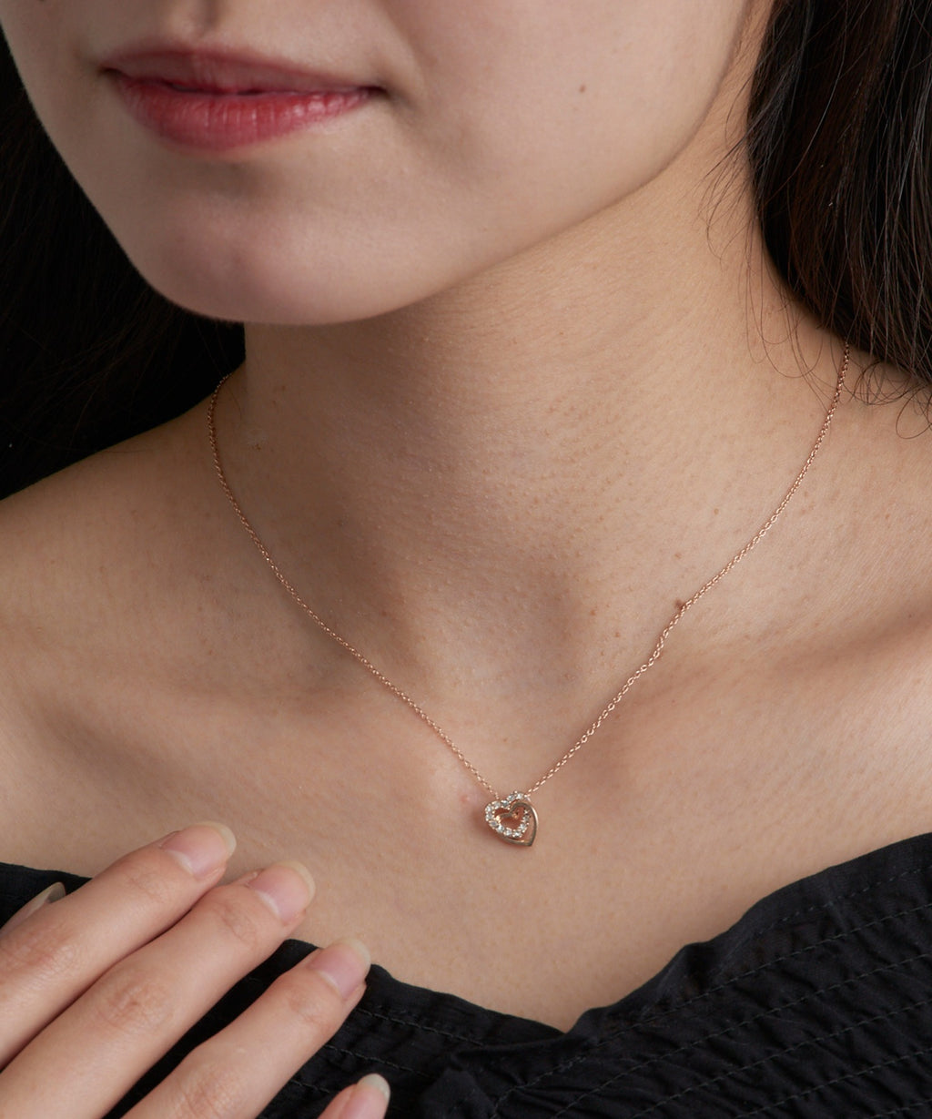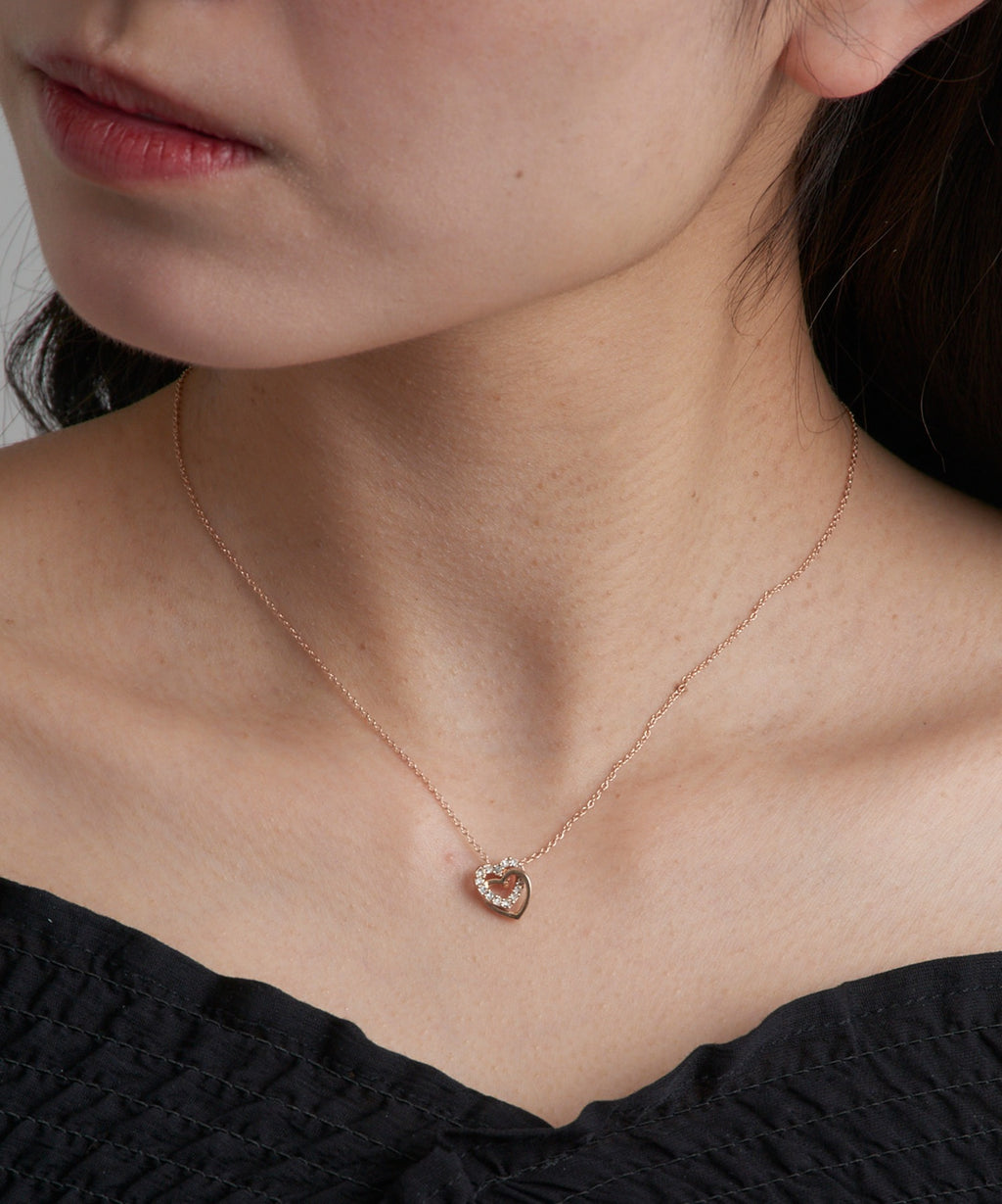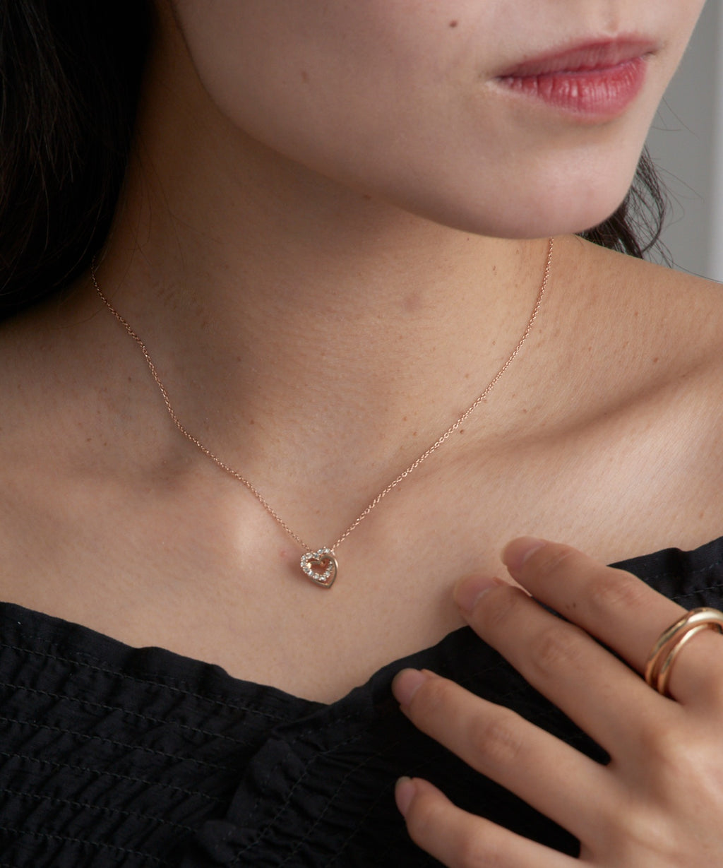 MAGASIN DE MODE Chou Chou Necklace Nickel-Free Double Heart metal Stone Petit Necklace OSWY