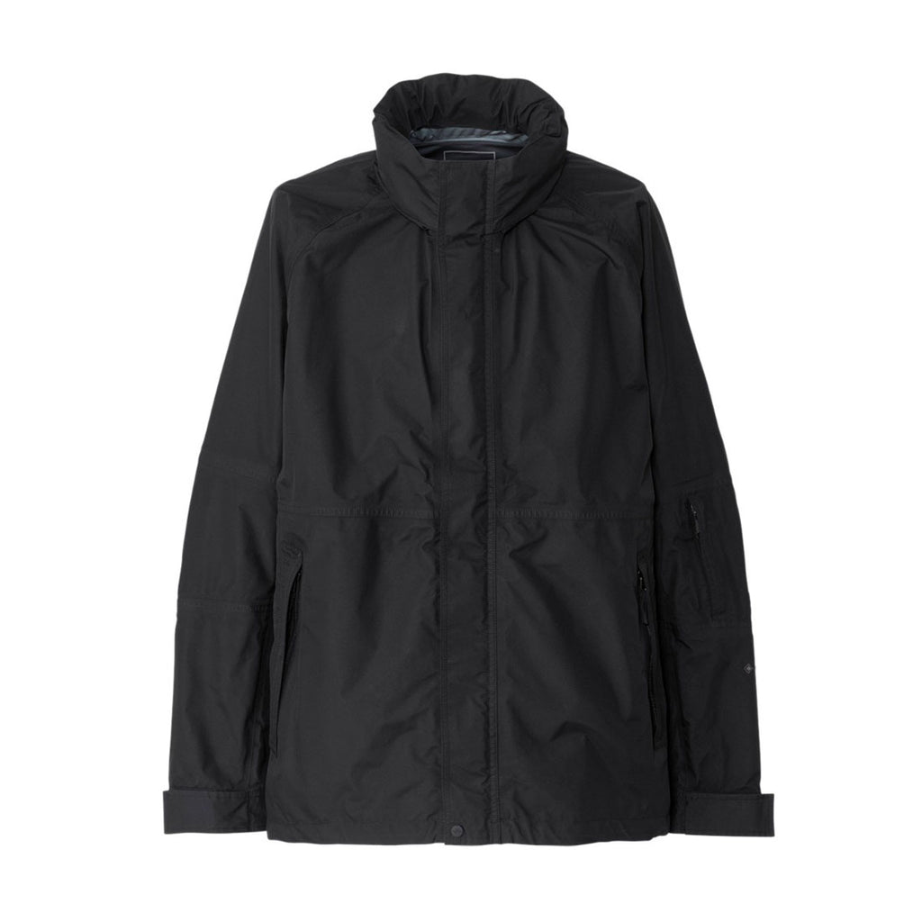 GORE-TEX PRODUCTS use a 3-layer material. The outer fabric is made of 20-denier nylon, providing a light and soft wearing experience. While applying seam tape, a sewing technique that allows for puckering has been introduced, resulting in vintage-style details despite being rainwear. The hood, shaped with a heritage feel, can be stored in the collar area. Features such as elbows with added volume from darts and cuffs that can be adjusted with a wider hook-and-loop fastener make it less likely to hinder upper body movement. Zipper pockets are placed on both sides and the left sleeve.
