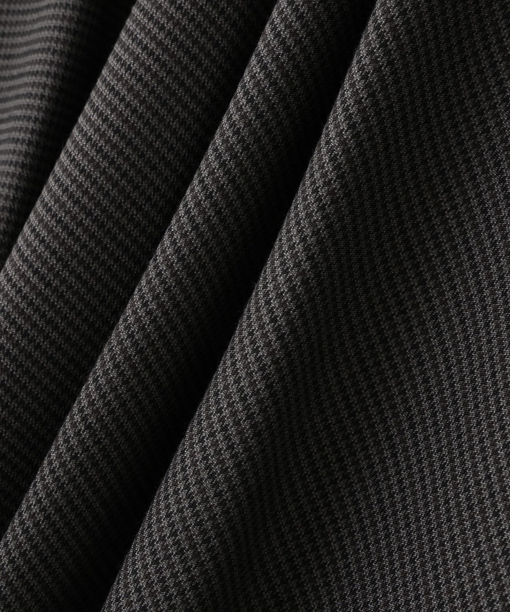 Made from a fabric with a moderate firmness and thickness in a houndstooth check pattern. It is a fabric that is difficult to pick up the body's lines.