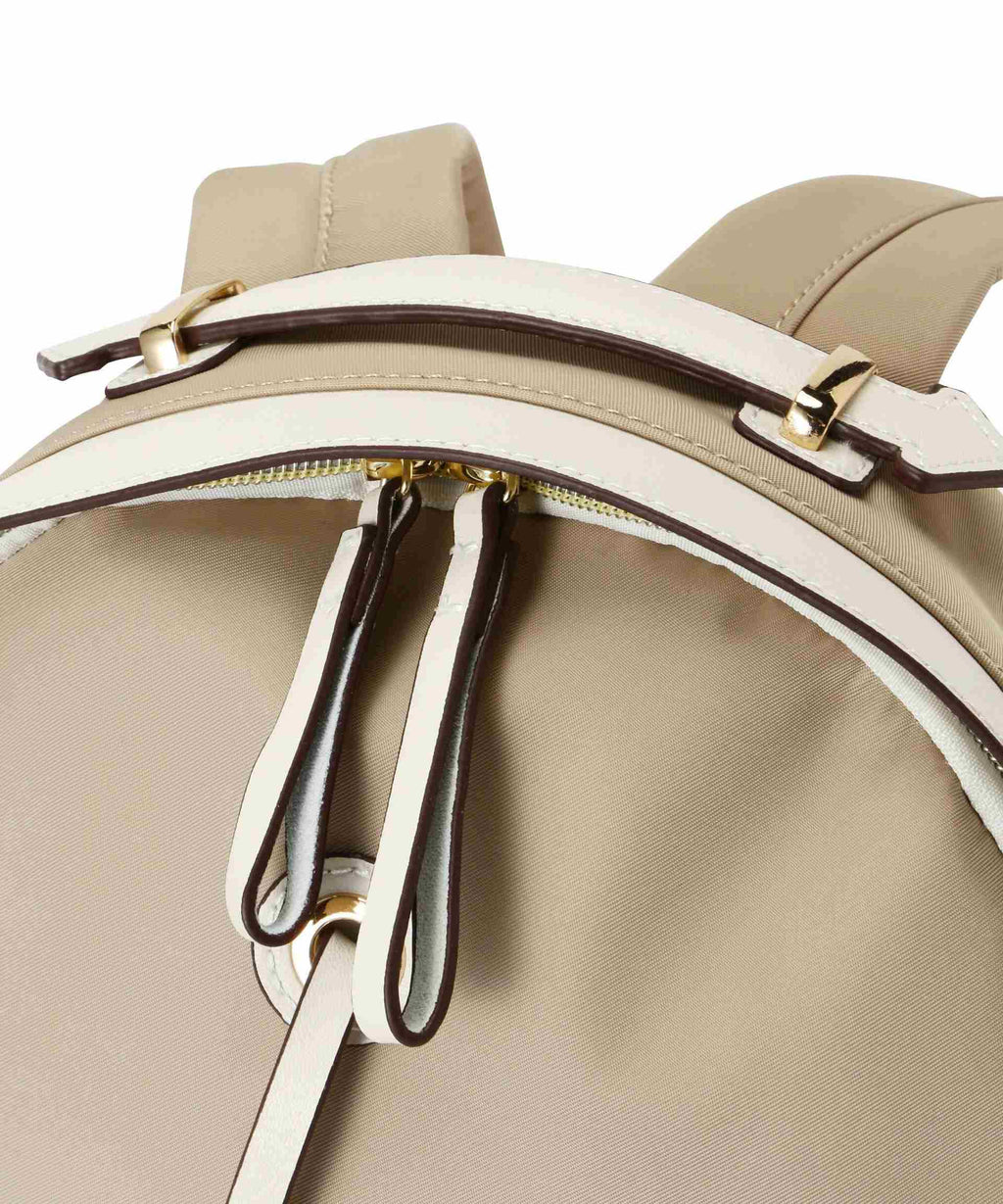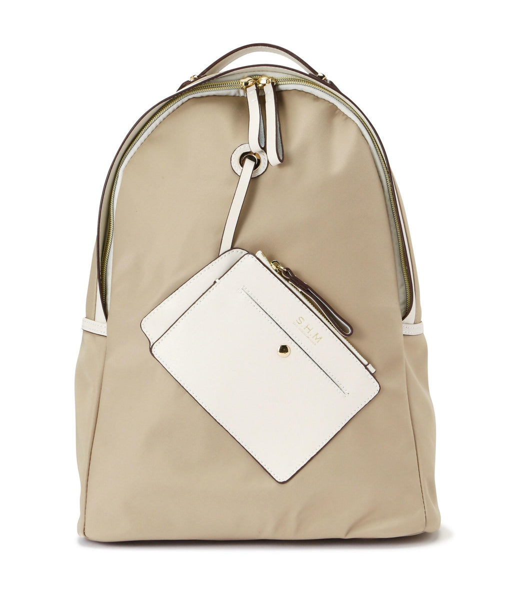 The part that touches the back and shoulder parts is bonded with padding sandwiched between the fabric, providing excellent cushioning and comfort. Although the outer pocket looks like a pouch hanging from the allure series, the inside dimensions are deep enough to securely store items like smartphones, despite its small external size. The opening and closing of the backpack use a resin coil zipper, so there's no worry about hurting your hands or fingers.