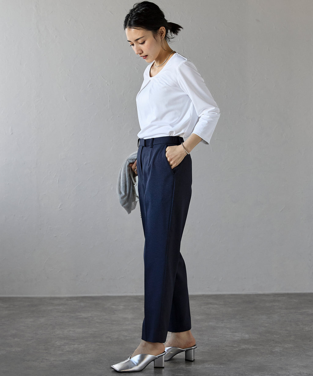 While paying attention to the appearance, such as material and design, this item is designed to be comfortable and easy to move in, catering to working women.