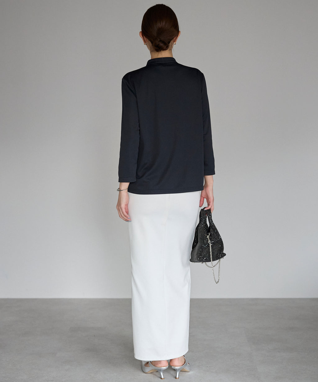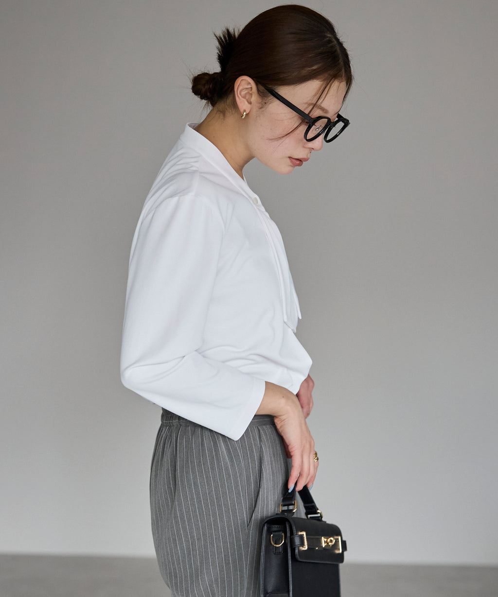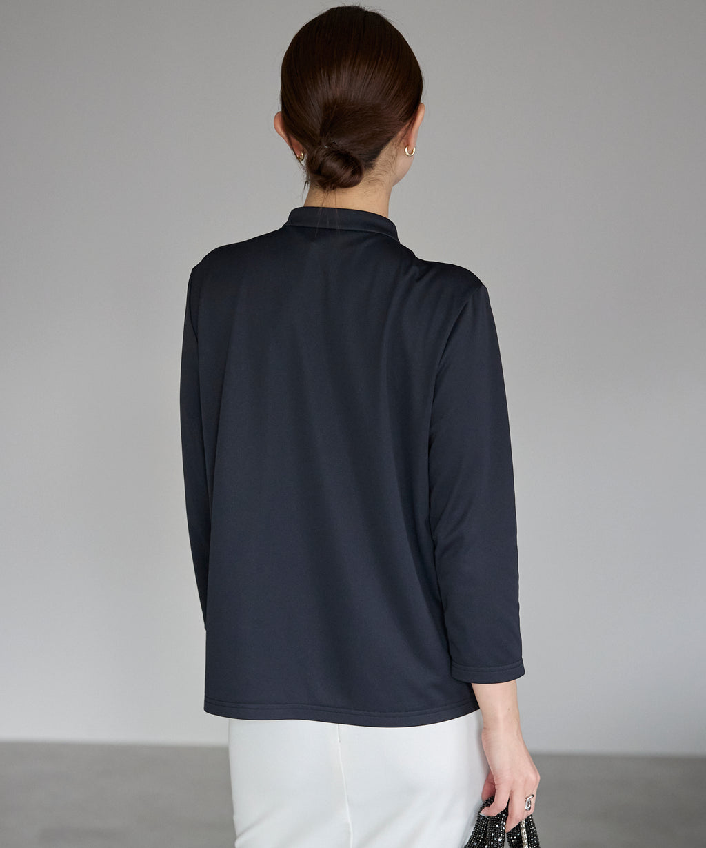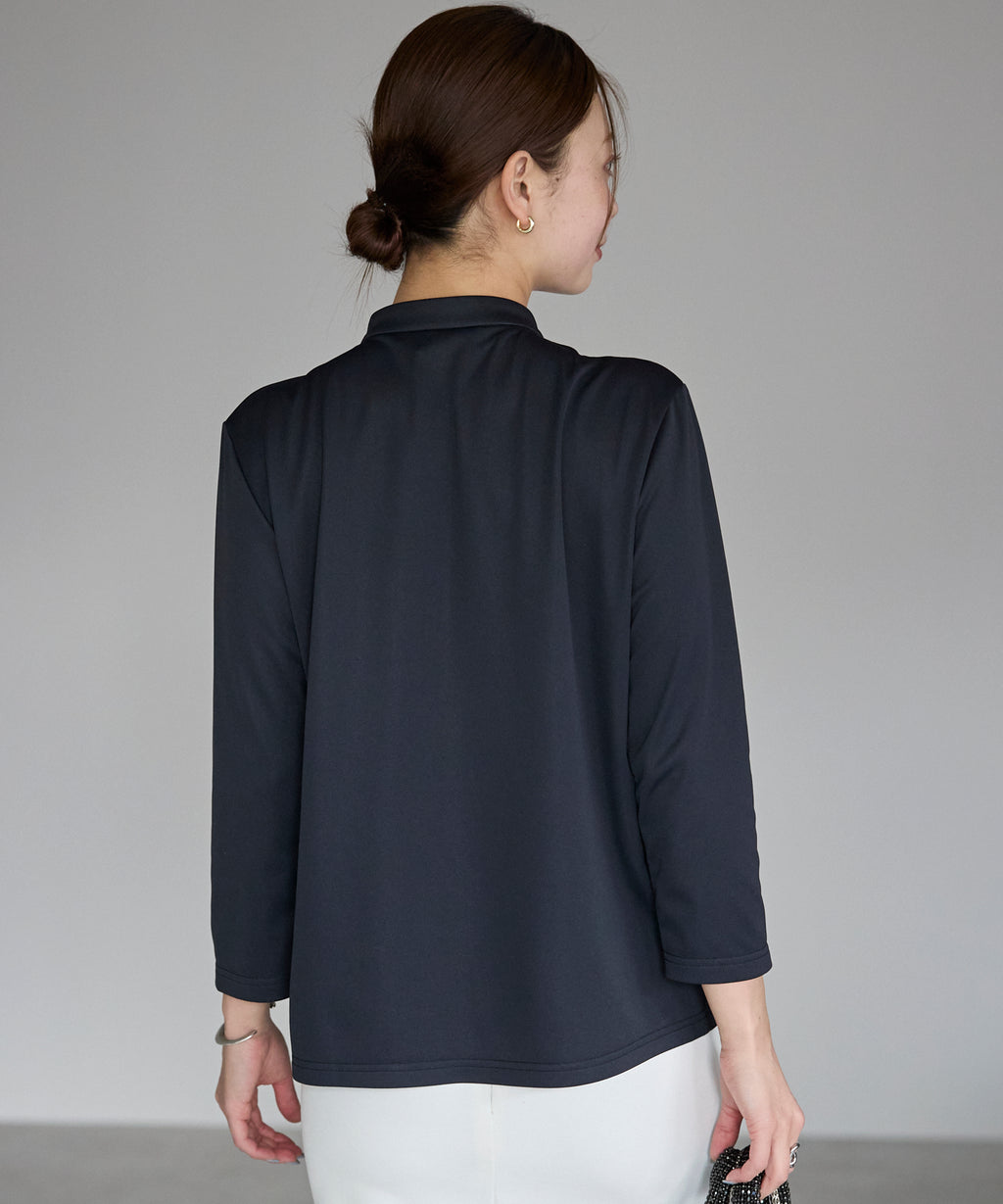 The excellent functionality of this three-quarter sleeve blouse is the key point, providing a comfortable fit even in hot summer.