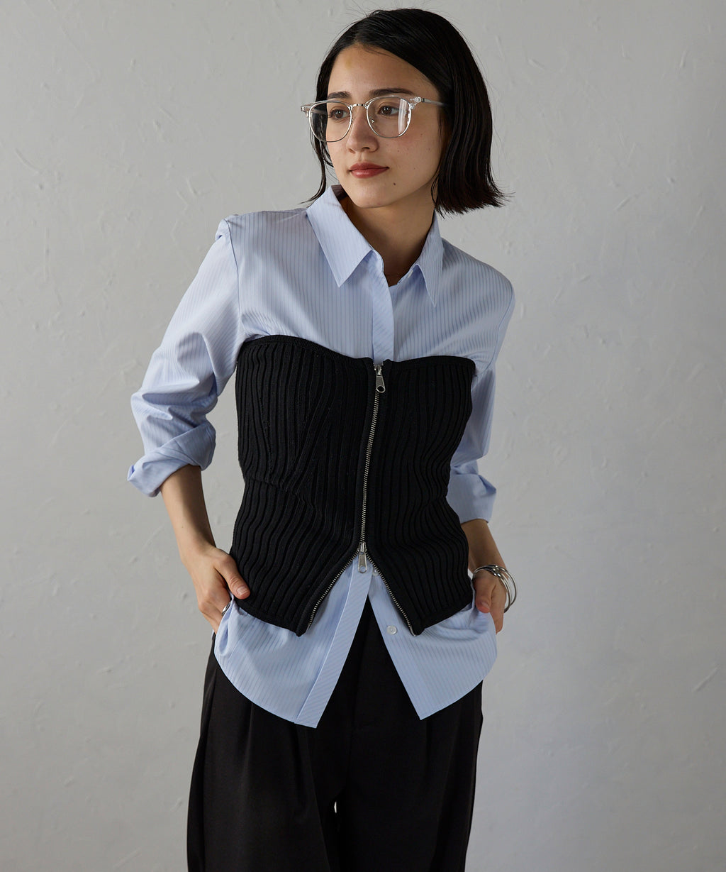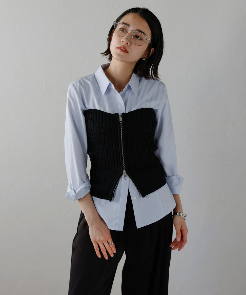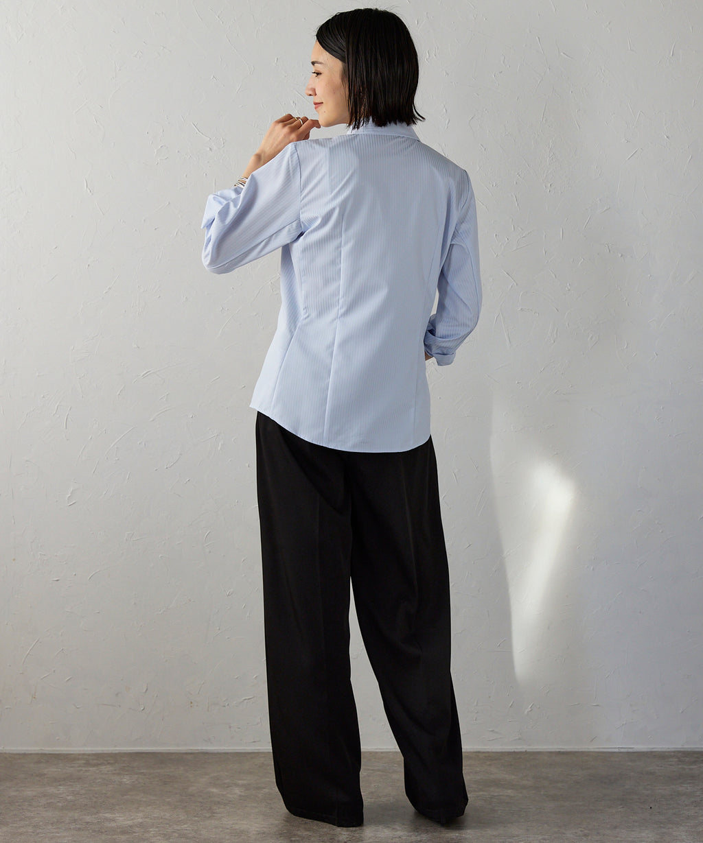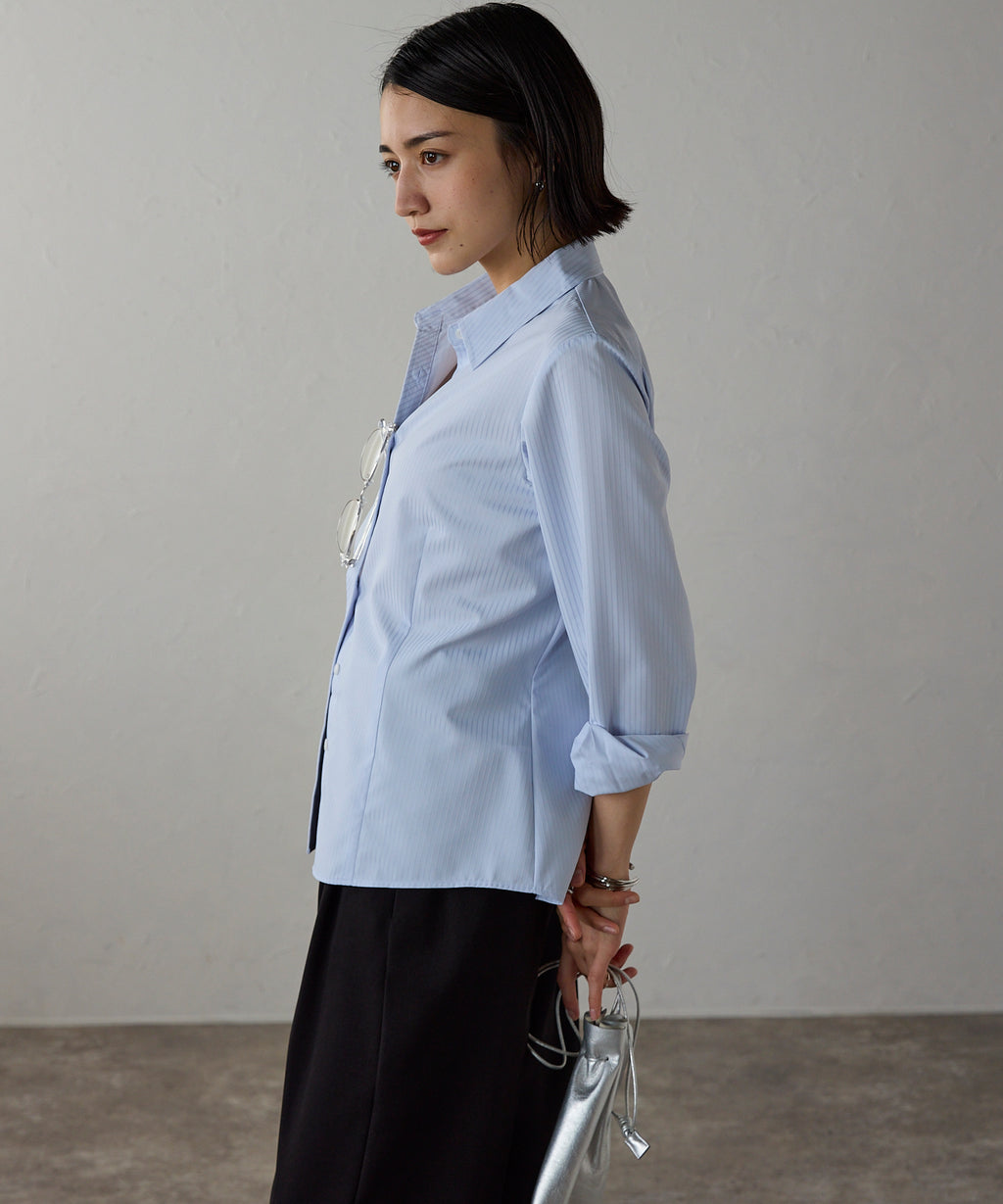 We recommend wearing it in an outstyle. It creates a well-balanced overall look compared to tucking it in. Choose slightly wide pants for a relaxed feel.