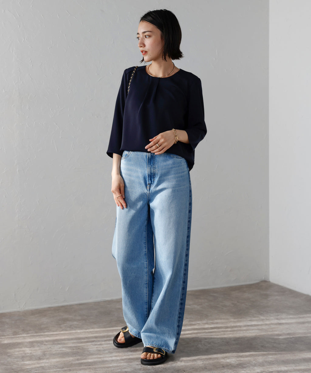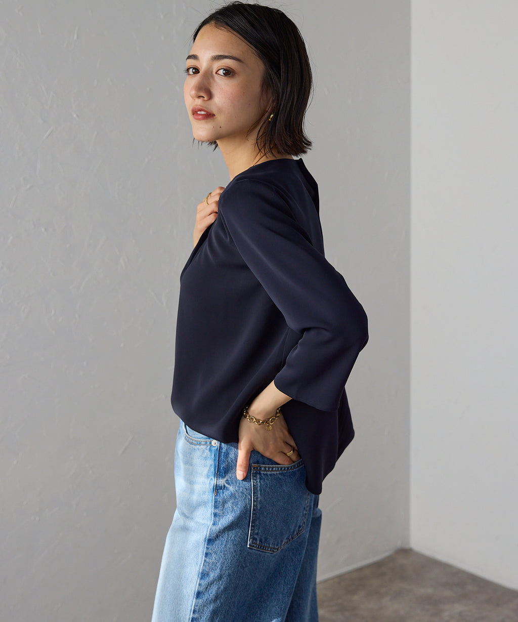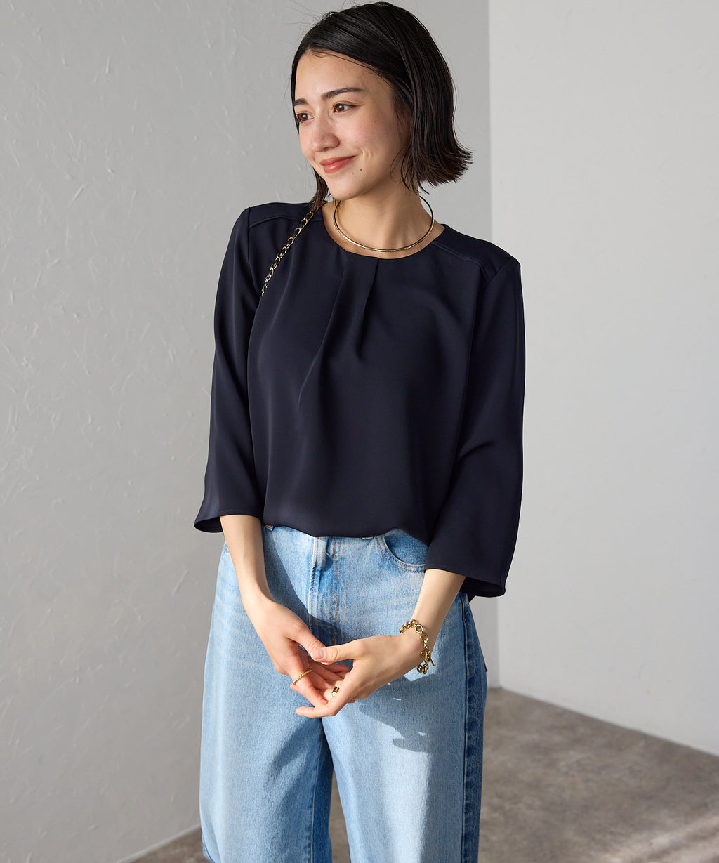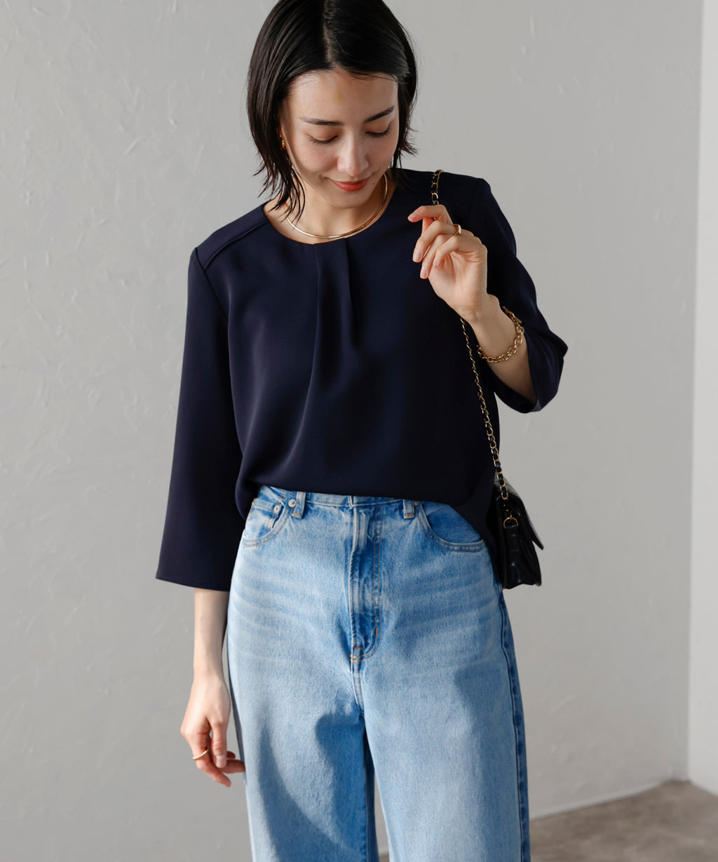 Perfect for formal occasions and everyday use◎ Looks neat and feels comfortable with a three-quarter sleeve blouse.