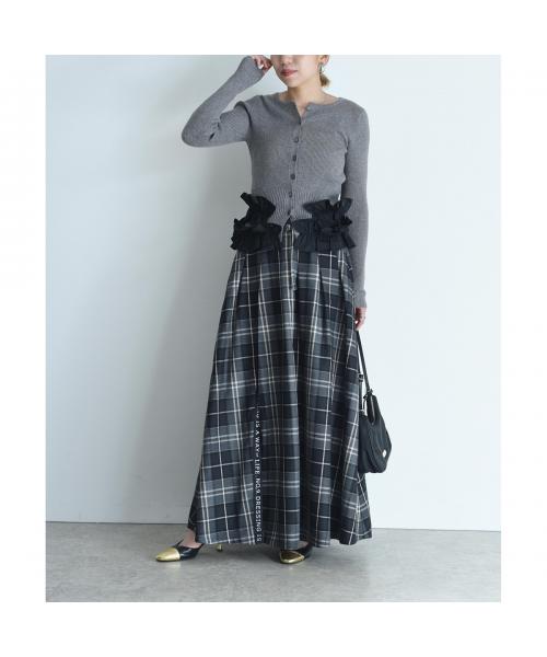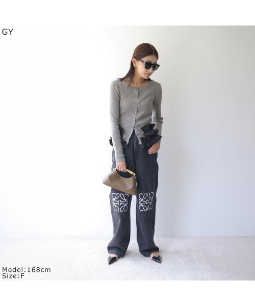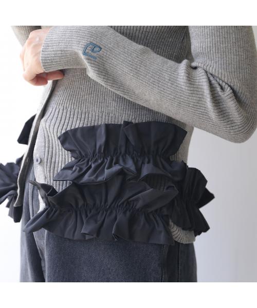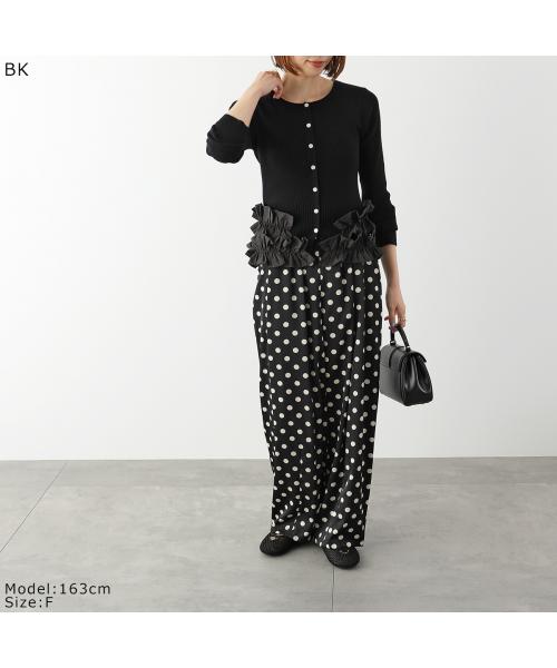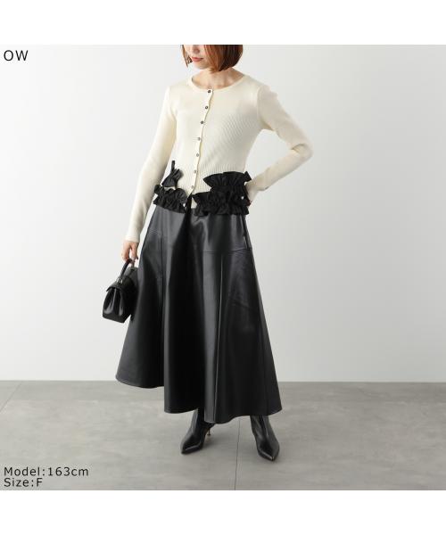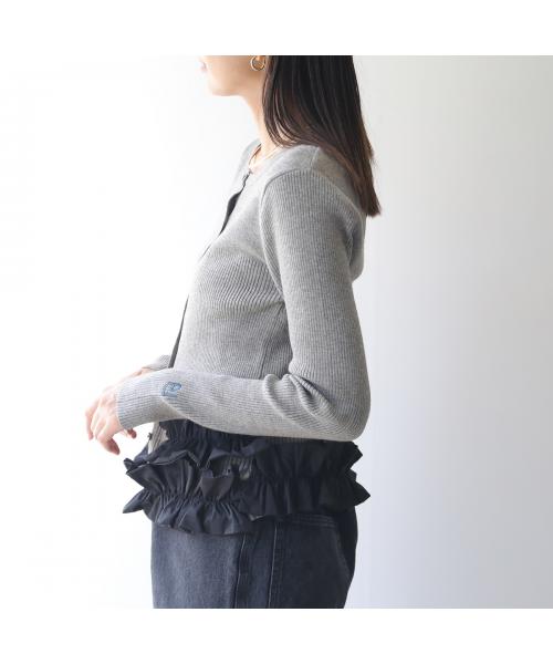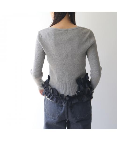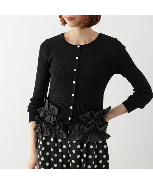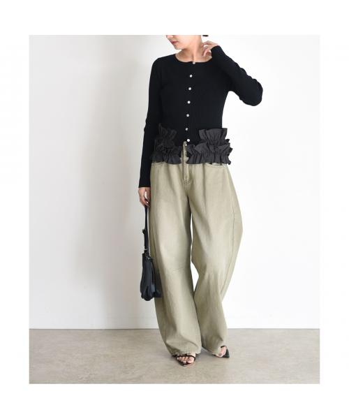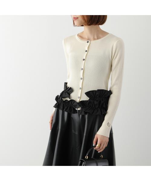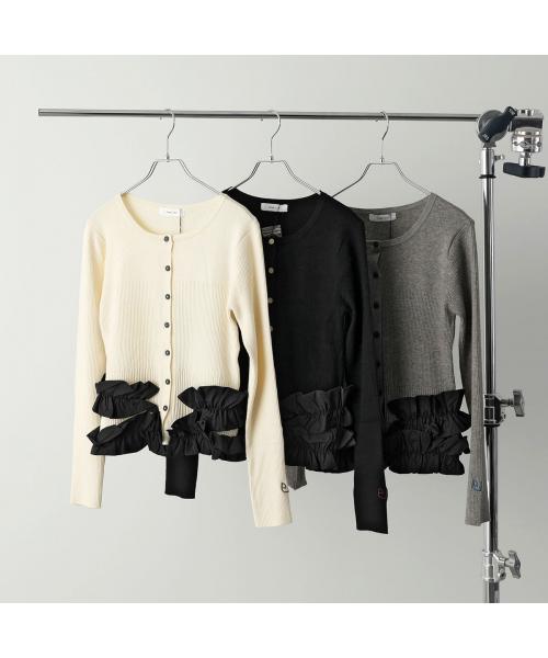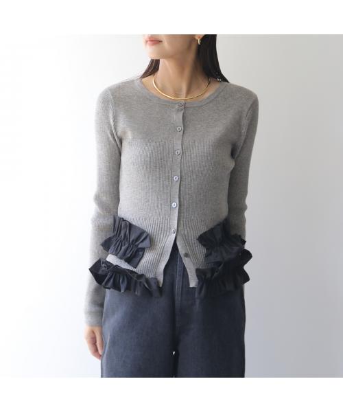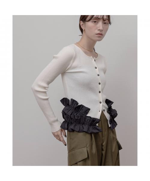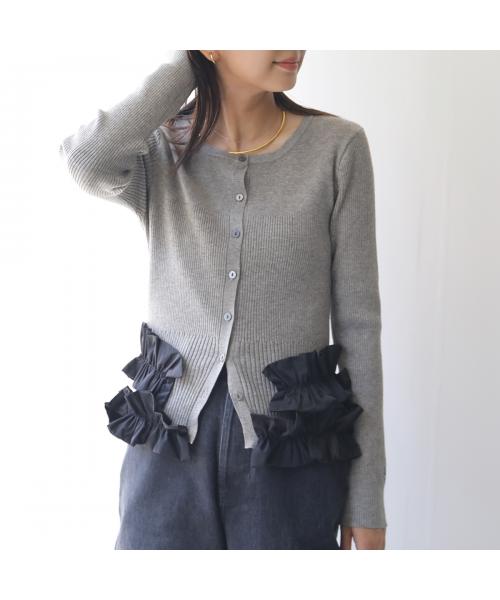 A knit cardigan with a comfortable, slightly textured feel and frill design that stands out.
