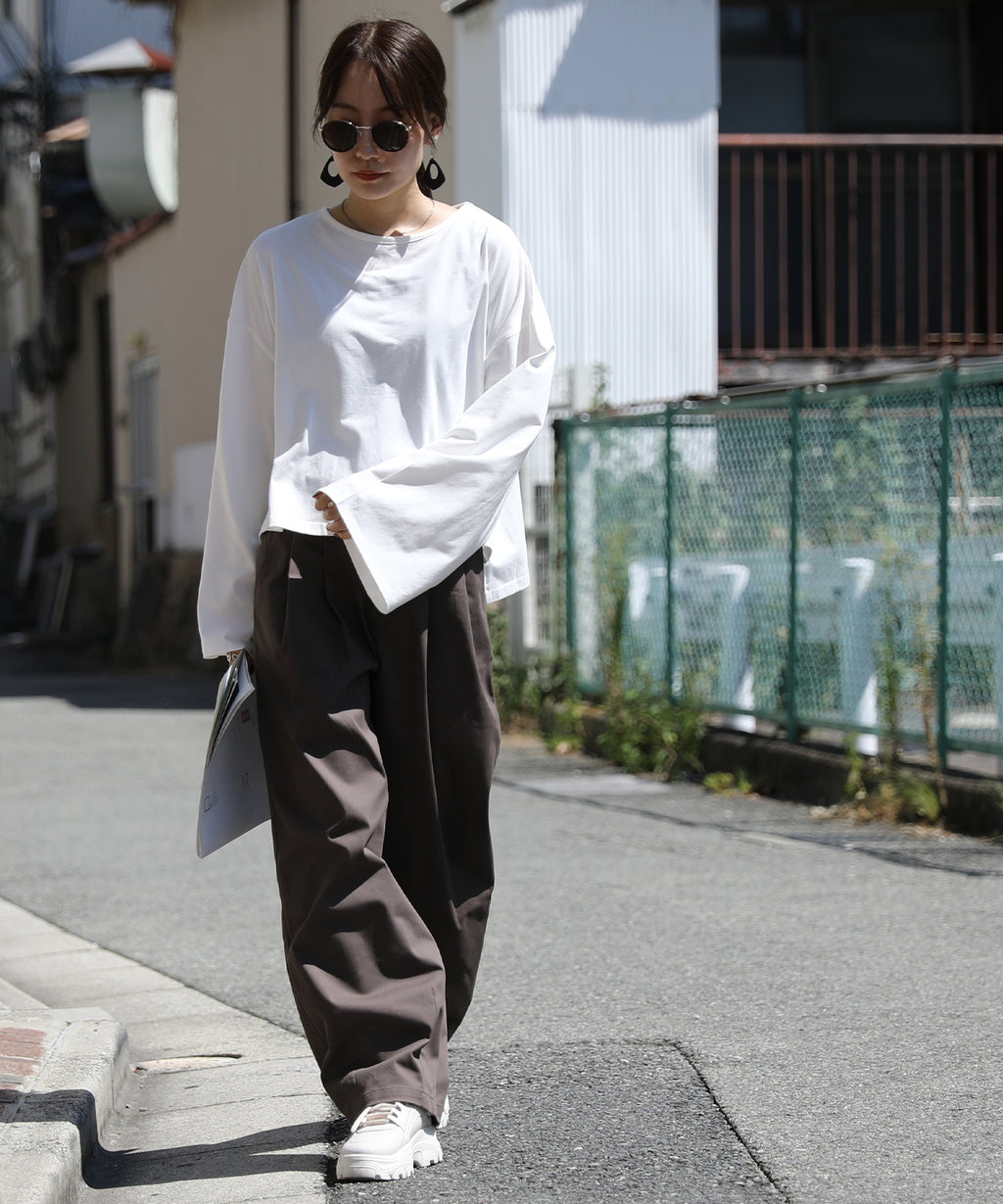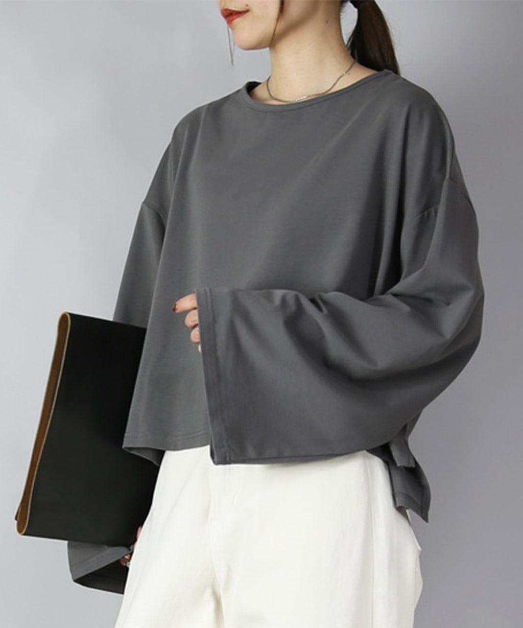 Tops for women, elegant, one piece for a polished look, relaxed, plus size, cute, fall clothing, long sleeve,ロンT, T-shirt, autumn, daily wear, versatile, simple, plain, short length, wide sleeves, white, black, charcoal, white, black, long season, all-season, spring, summer, autumn, winter, delicate, layering, layered, M, M size, M, E-mu, emu, L, L size, XL, LL, 3L, LLLandit_ and it_ andit ANDIT_ ANDIT, And Itt, And Itt, Summer, Autumn, Winter, mom clothes, casual, adult, trend, layered, adult women, adult cute, fashionable, simple, loose, chubby, body cover, cover, women's fashion, women's fashion, 20s, 30s, 40s, 50s, in their 20s, 30s, 40s, 50s