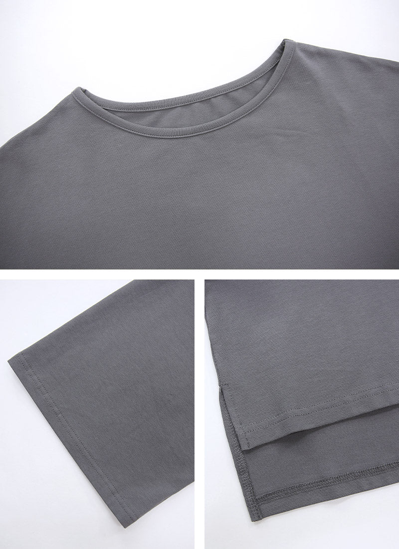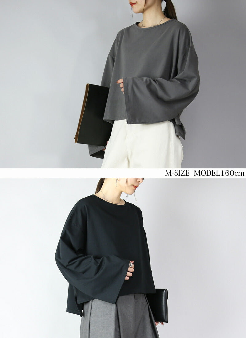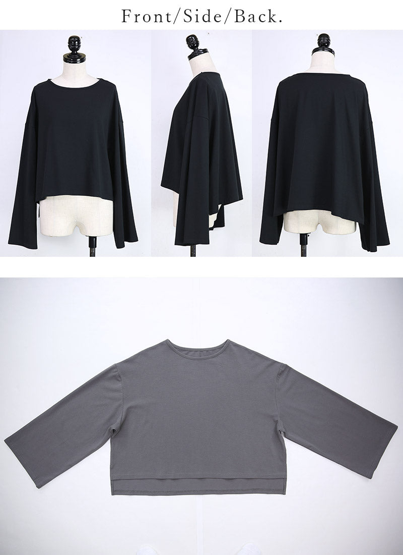 Andit and it_ cut and sew women's drop shoulder long sleeve short cut and sew short length simple solid adult casual versatile comfortable relaxed wide sleeve white black charcoal spring summer autumn