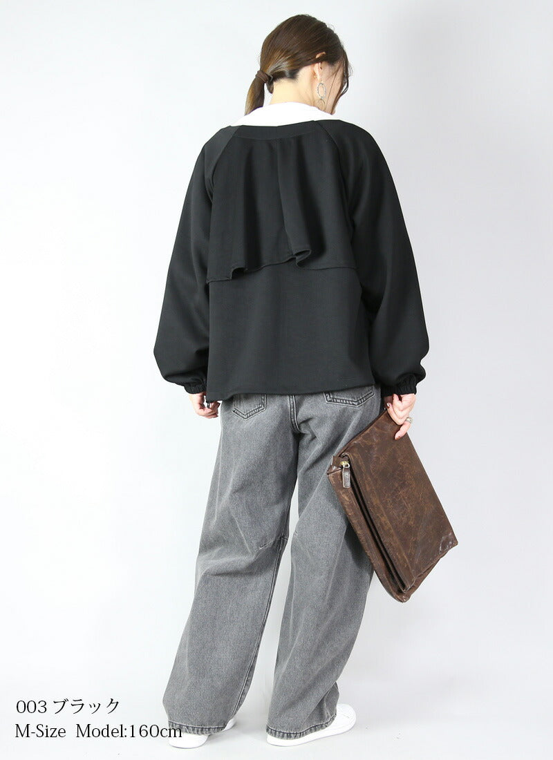 And it_ Jacket Ladies Back Frill Full Zip Jacket Outerwear Layering Balloon Sleeve Adult Cute Stylish Trend Long Sleeve No Collar Ivory Brown Heather Charcoal Black M