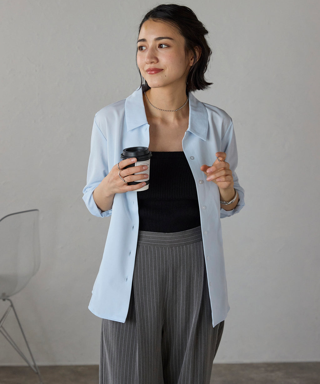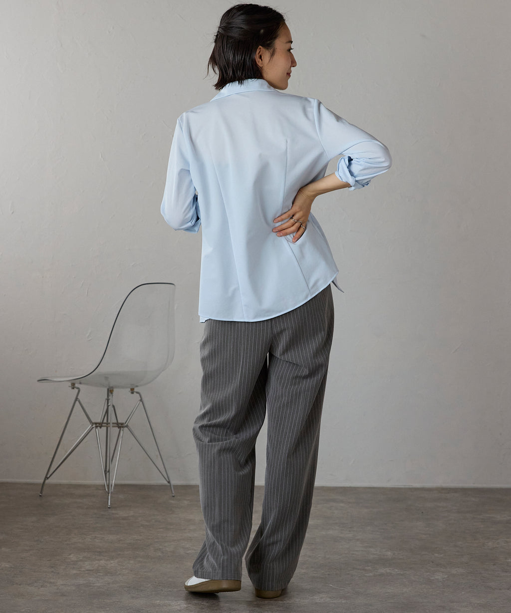 A versatile blouse that can be worn by women in their 20s to 50s, mothers, working women, and mature women.