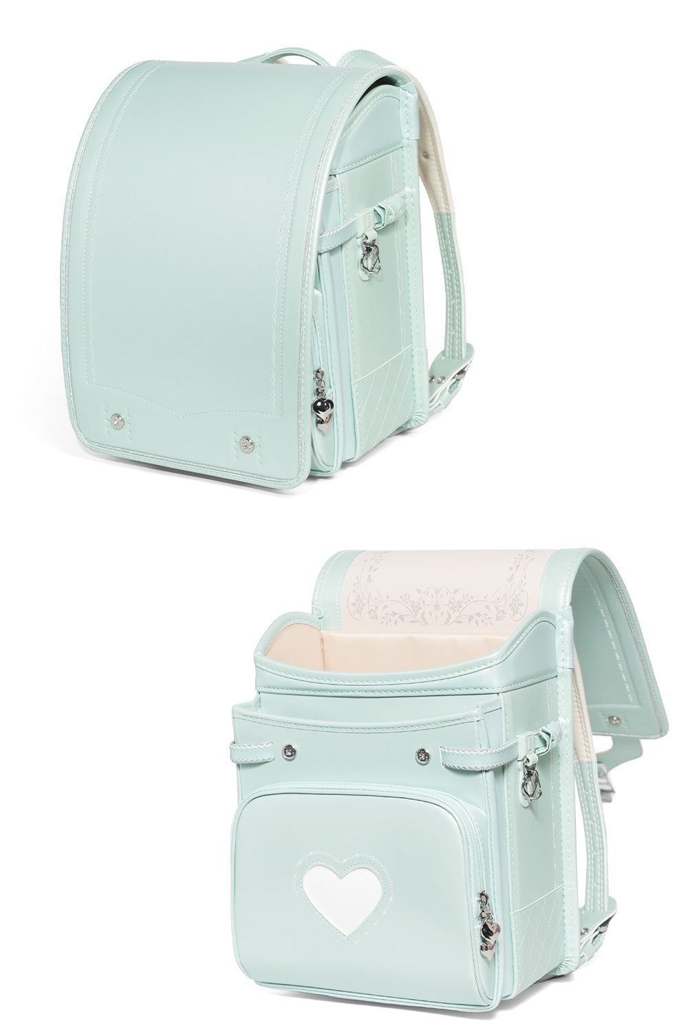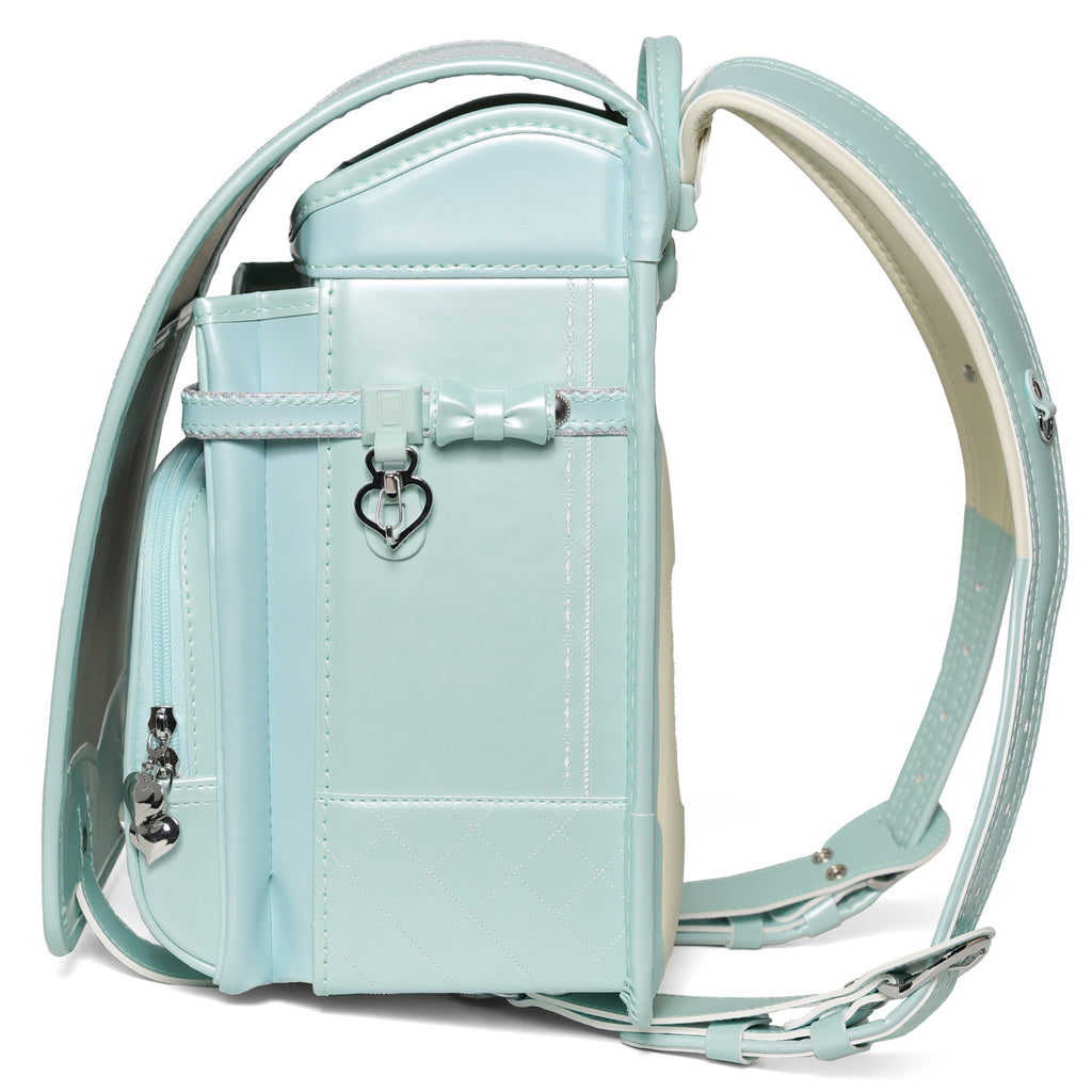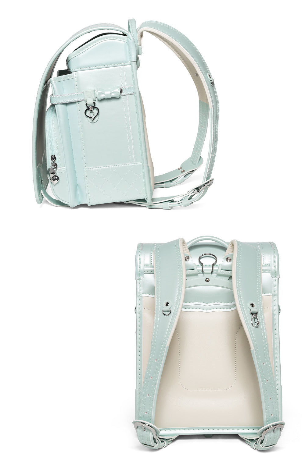 A small ribbon charm is stylish, and the pastel tone's gentle and soft color is impressive in this randoseru.