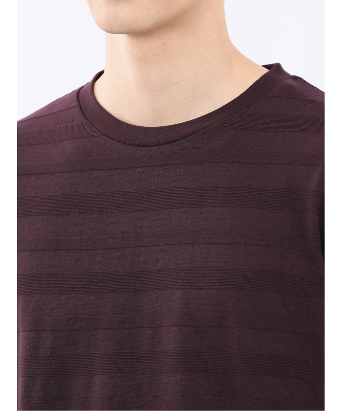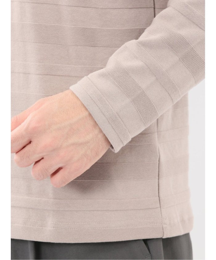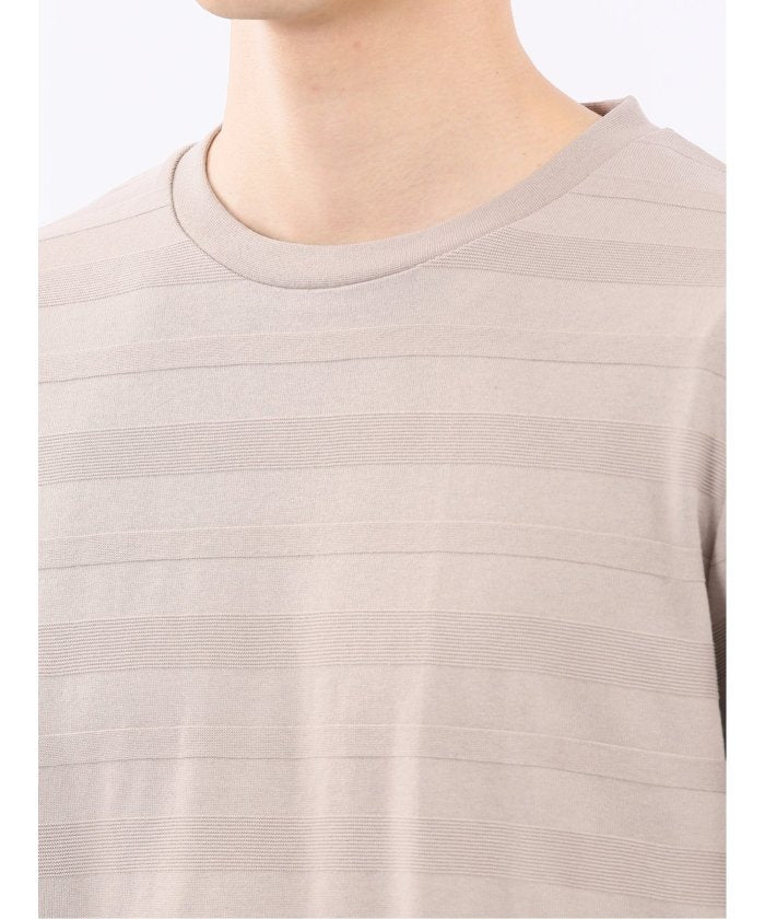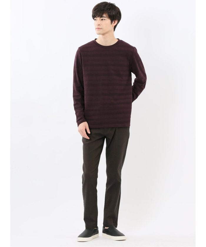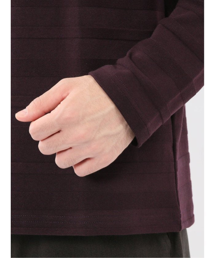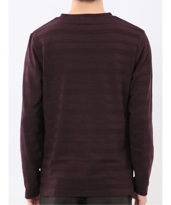 This is a crew neck long sleeve T-shirt with a presence that is not overly simple. It features a jacquard pattern with a surface texture that distinguishes it from plain fabrics, resulting in a stylish look. It is a convenient item that can be worn alone or as an inner layer under jackets, shirts, or vests.