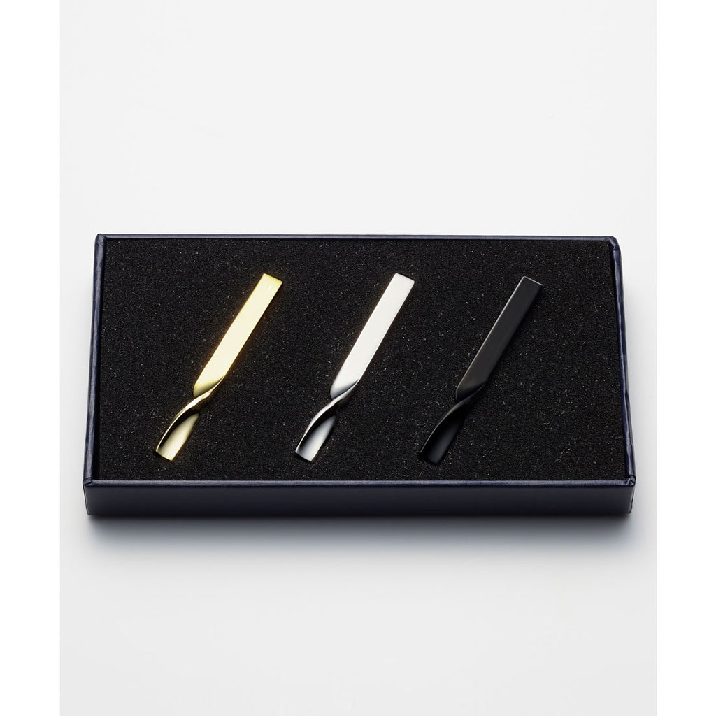 A set of three timeless patterns that easily coordinate with any tie, based on beautiful, shining stainless steel.