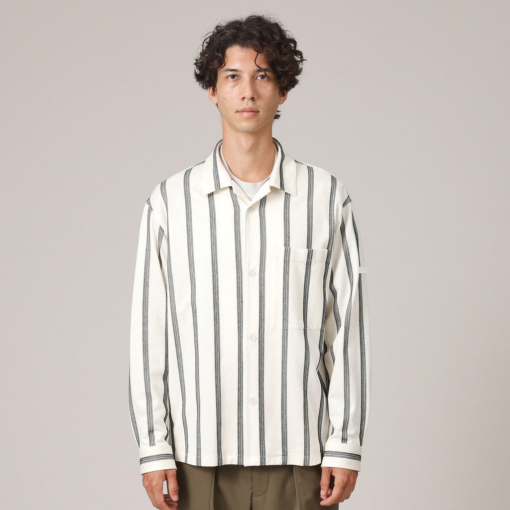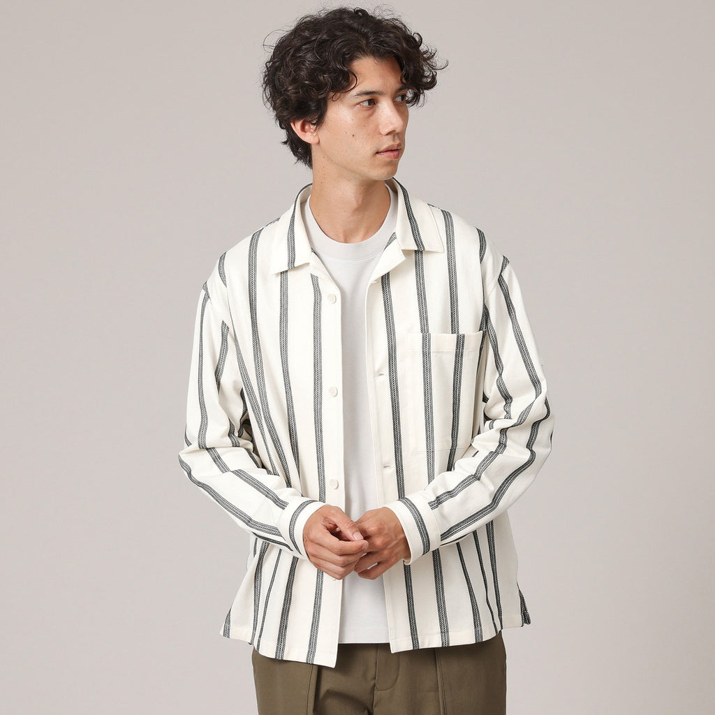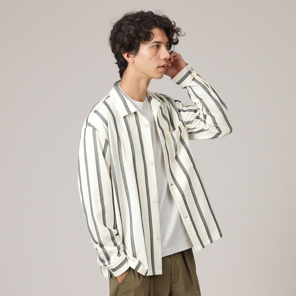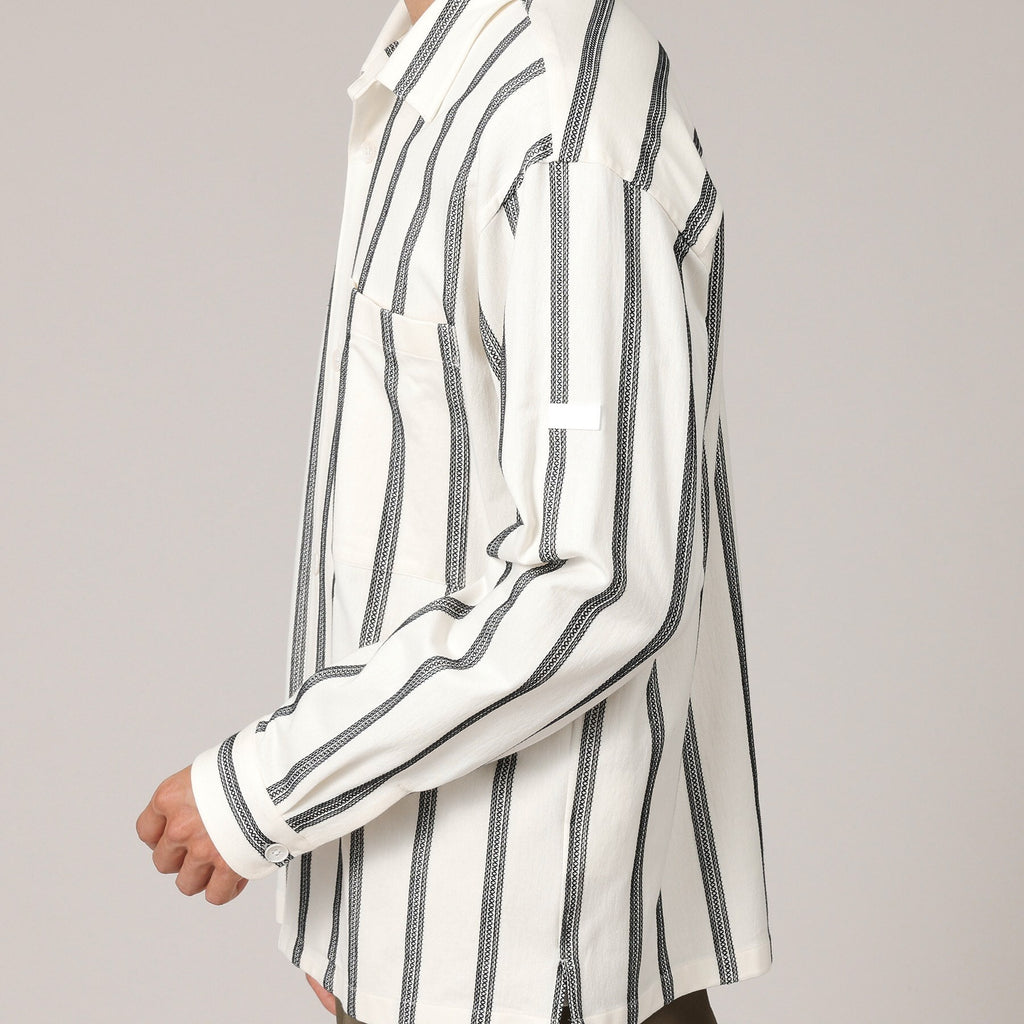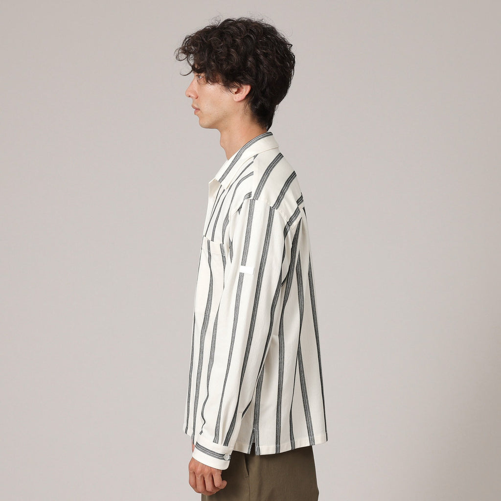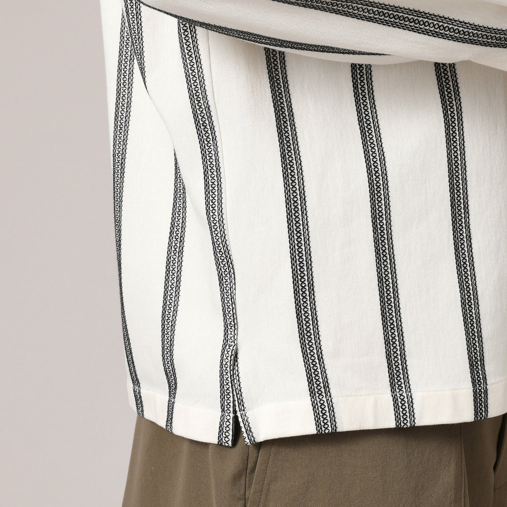 This is a striped cut-and-sew shirt with a distinctive textured fabric.
