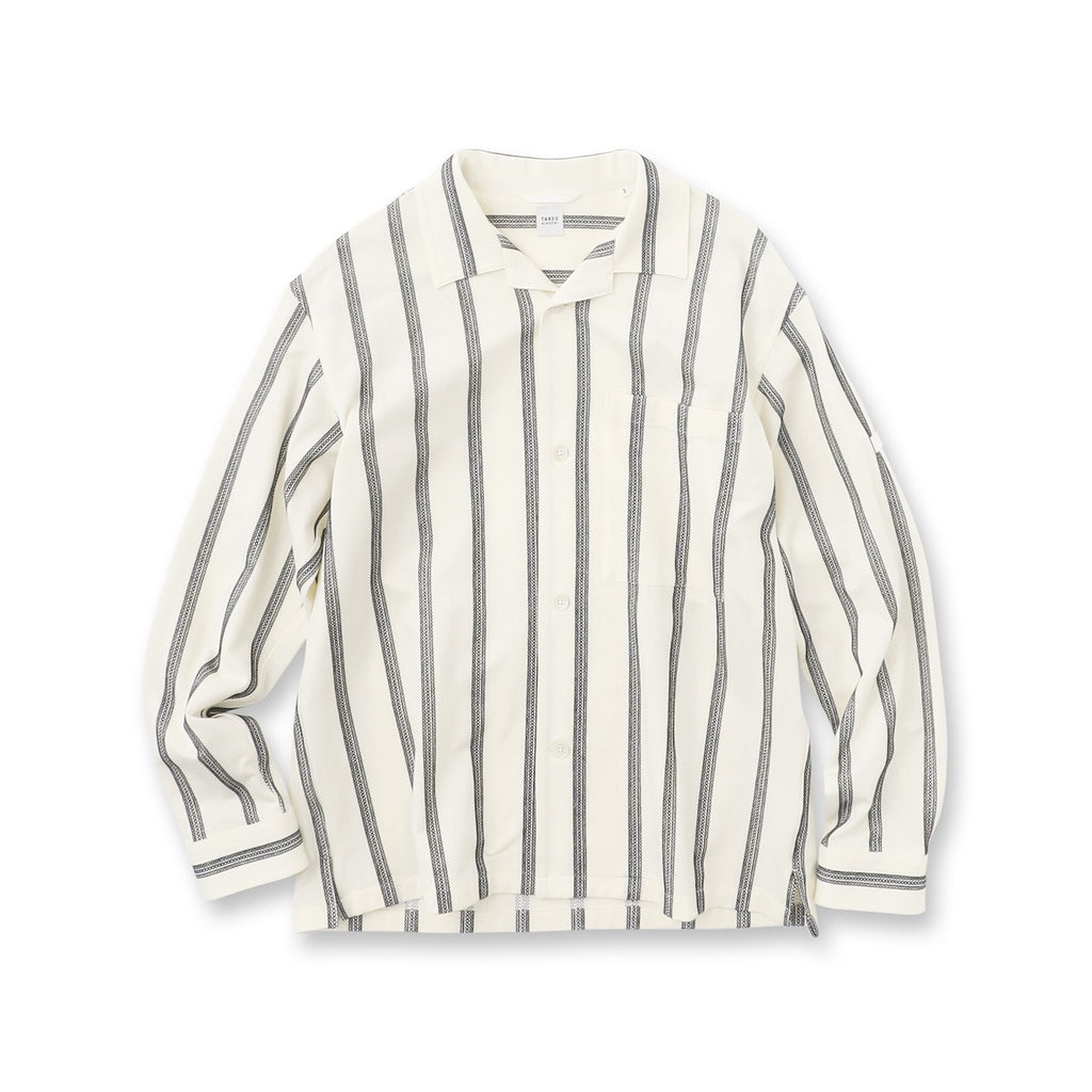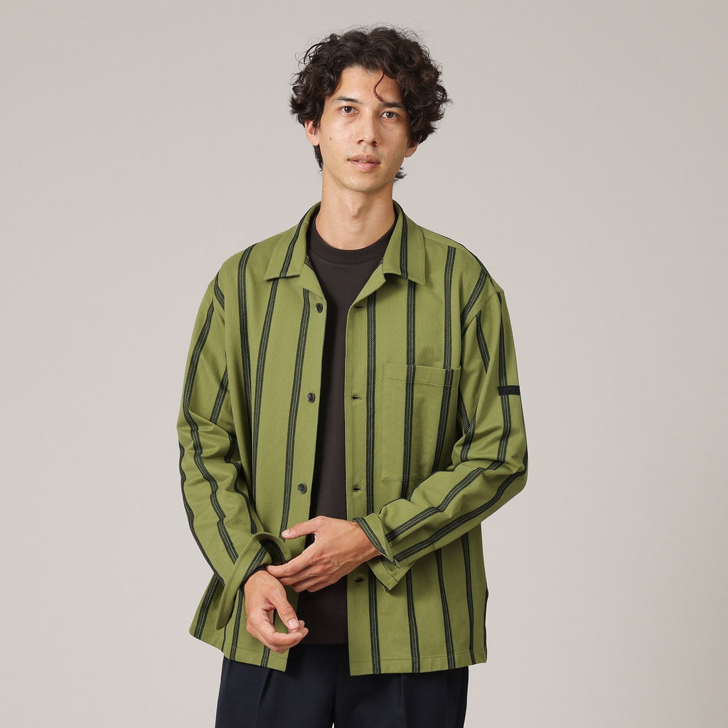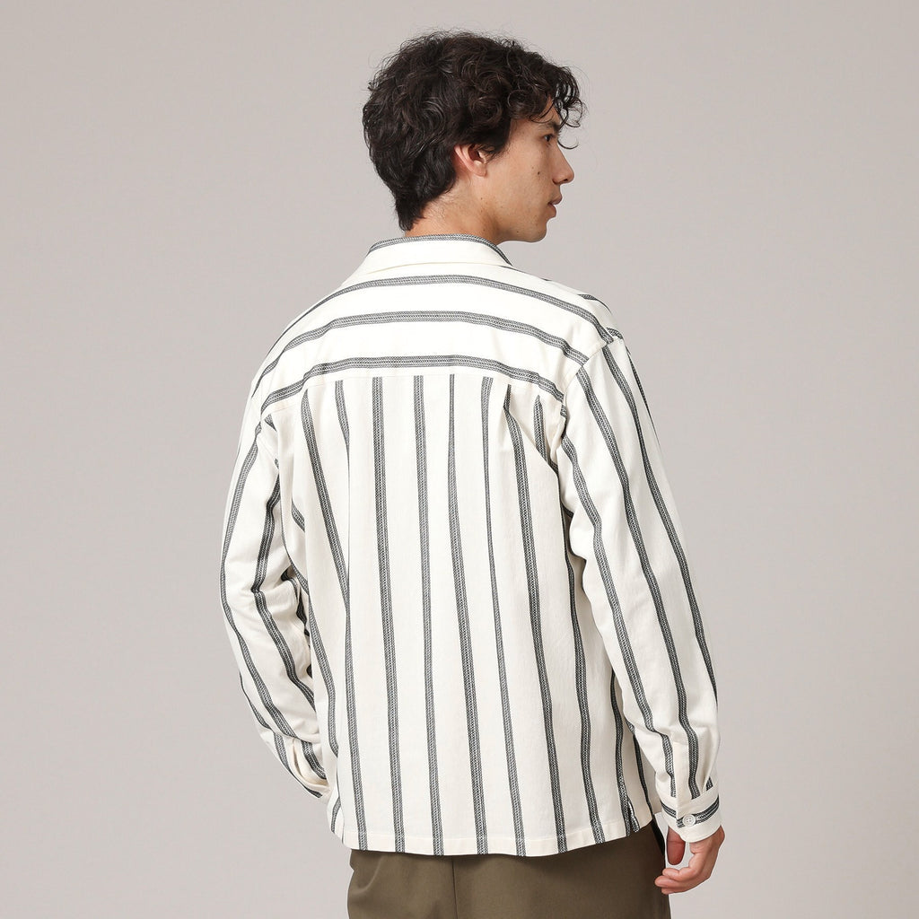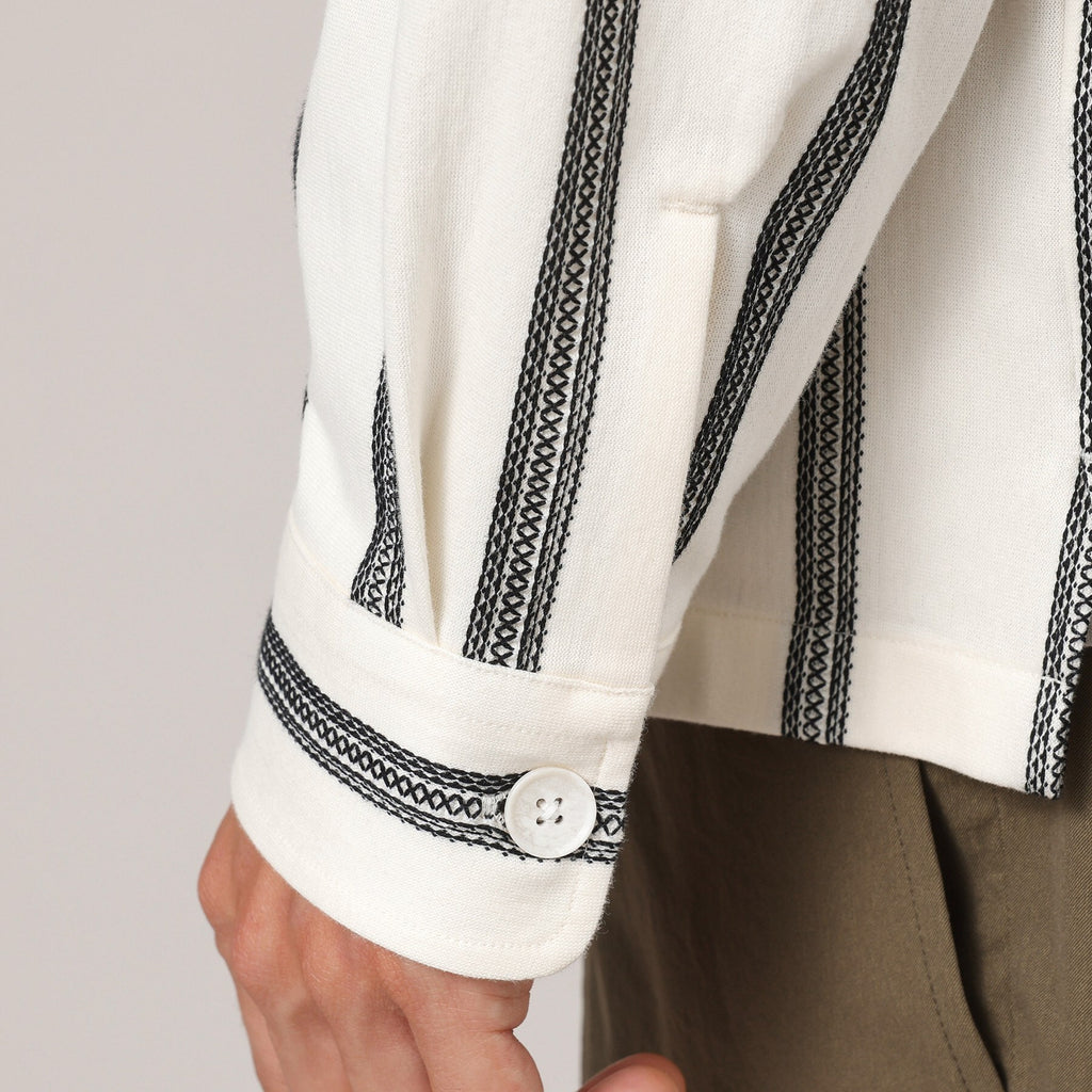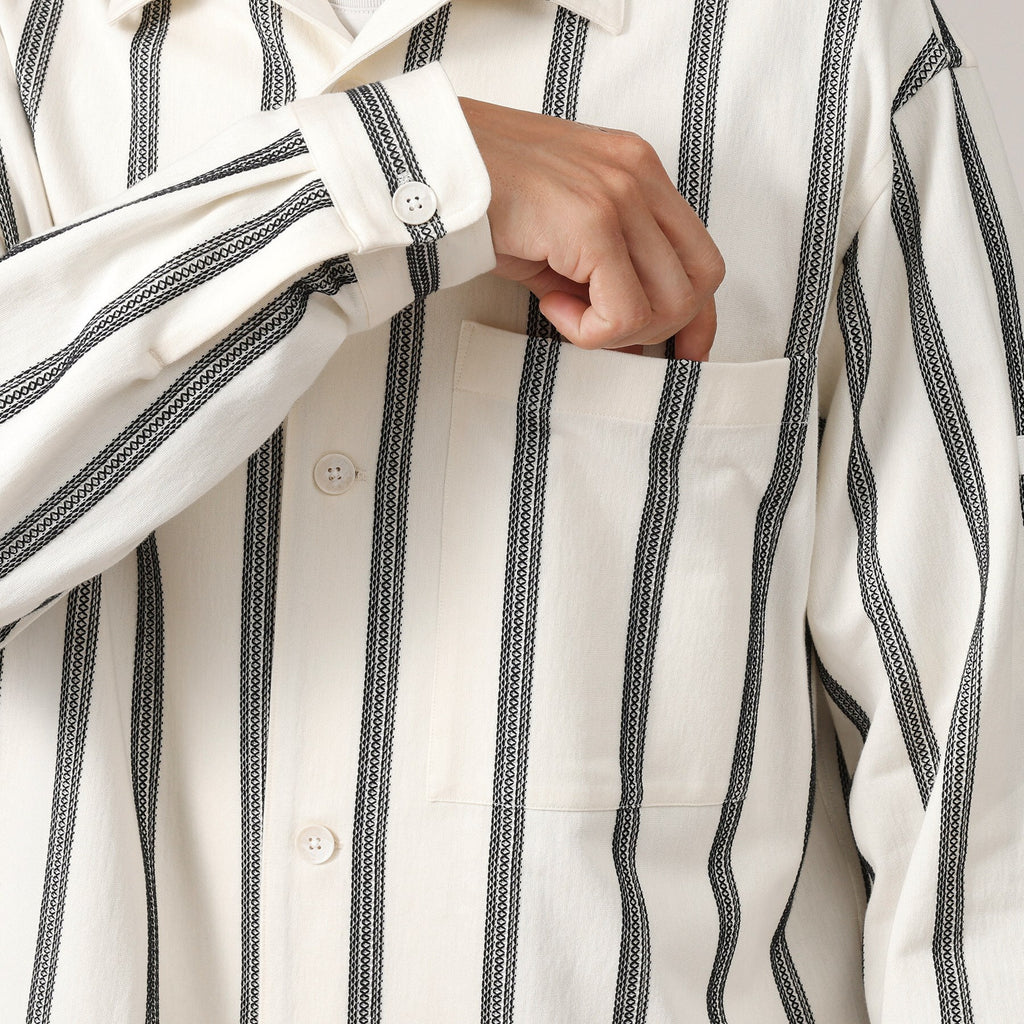 This is a striped cut-and-sew shirt with a distinctive textured fabric.