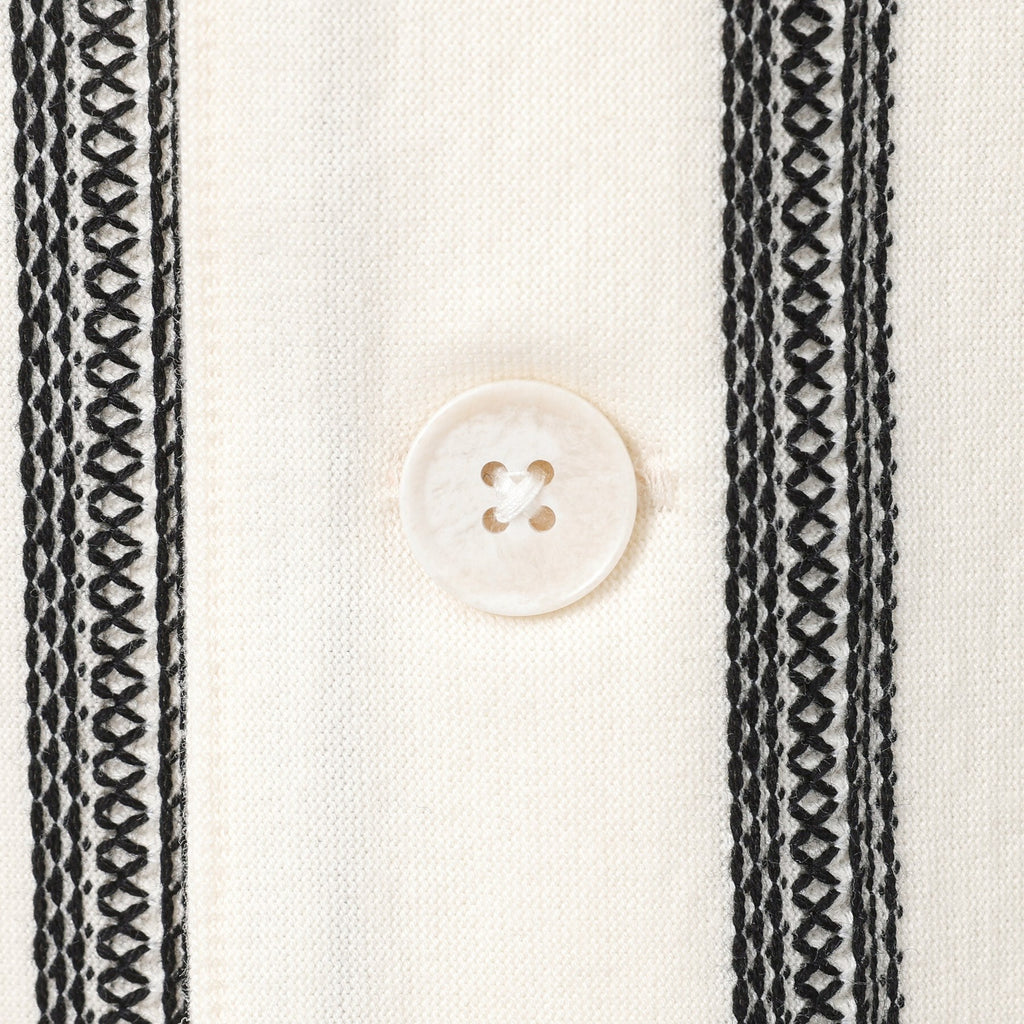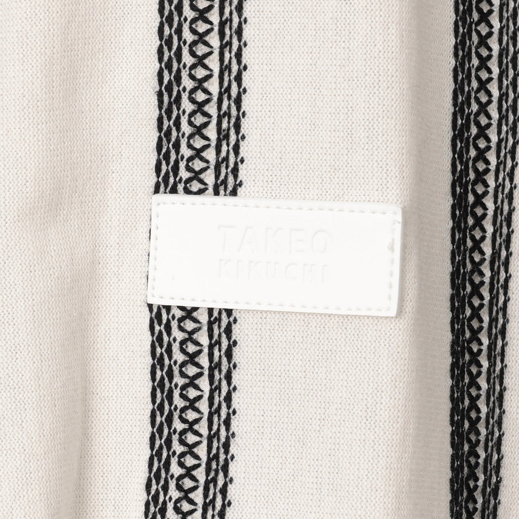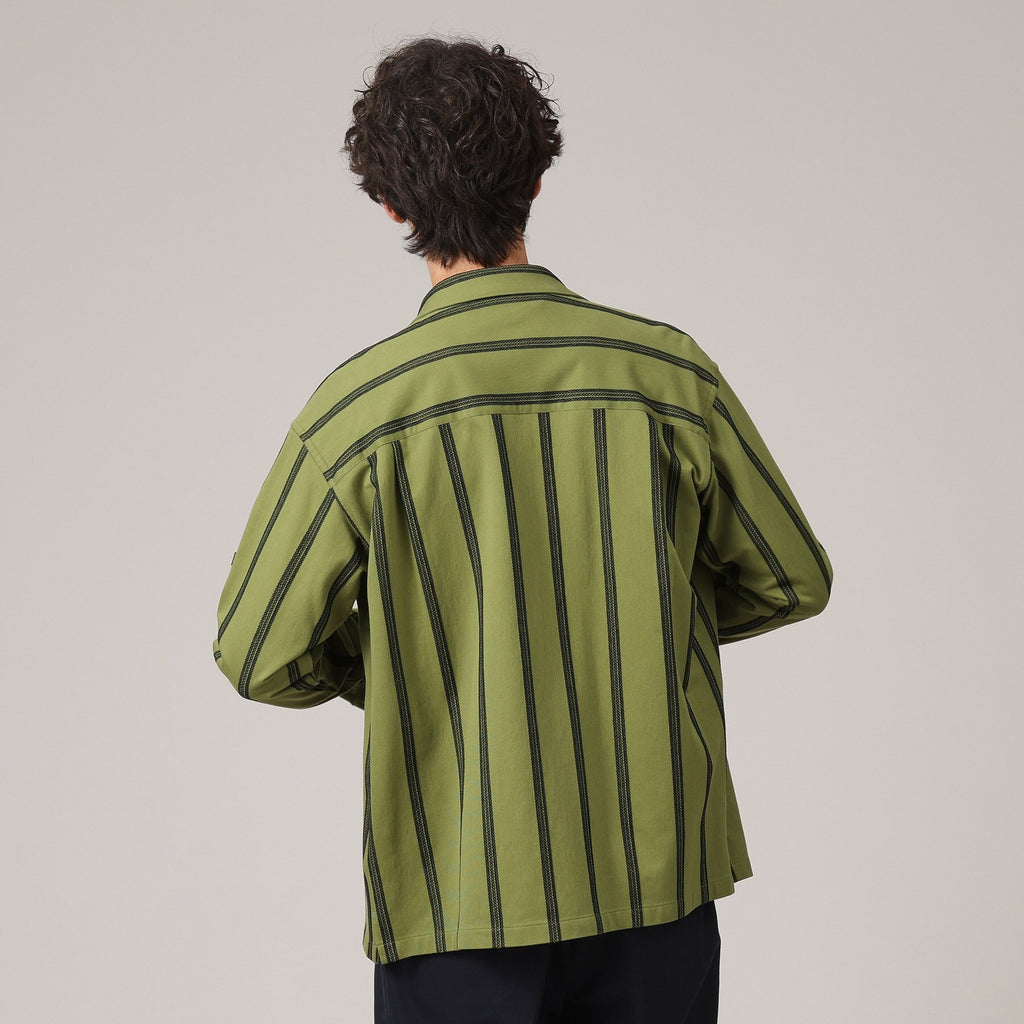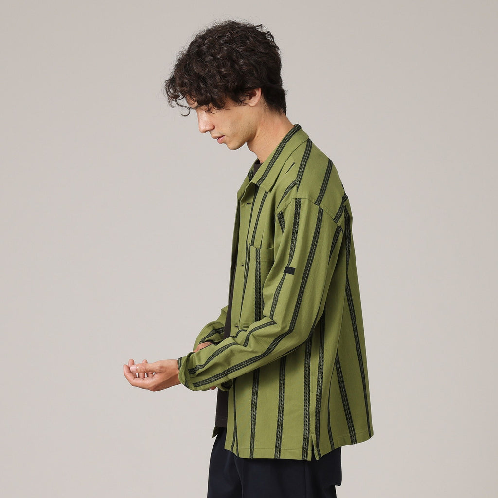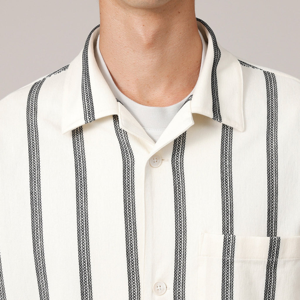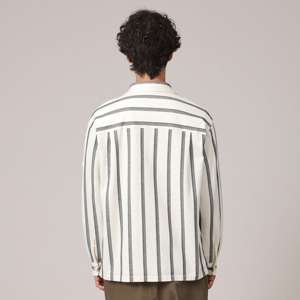This is a striped cut-and-sew shirt with a distinctive textured fabric.