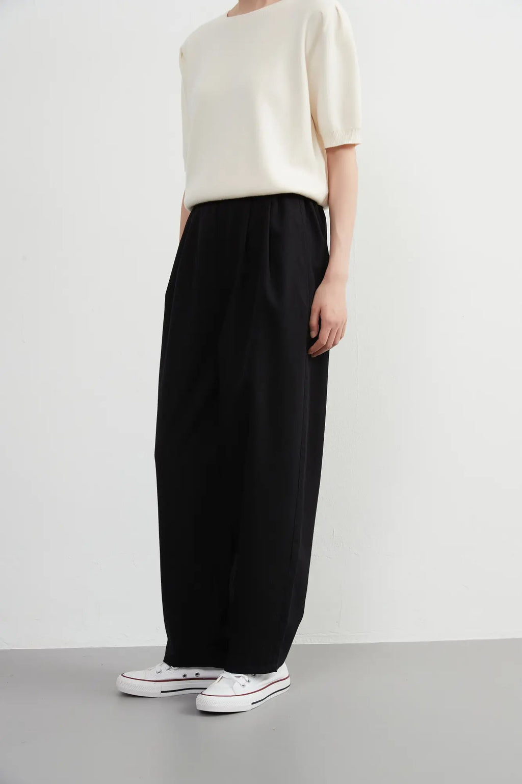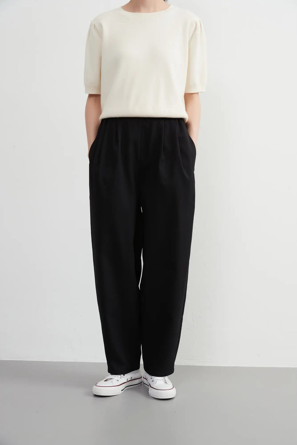 The waist has elastic, combining ease of wear and a sense of firmness.